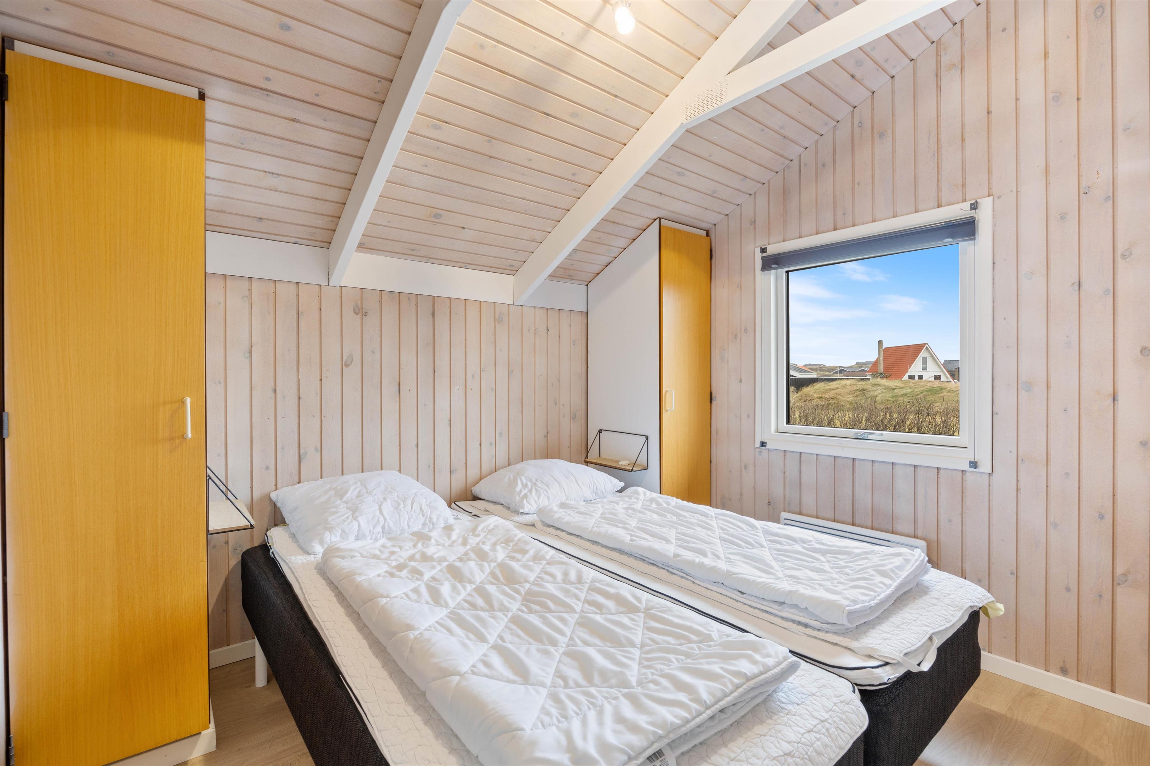 Ferieboligen på Karen Brands Vej 141 oser af klassisk sommerhusidyl med sit træbeklædte ydre og beliggenheden midt i det vestjyske klitlandskab. Denne stemning bliver fulgt op indenfor, hvor I bliver mødt af lyse og indbydende omgivelser, der har gennemgået en renovering i 2021. Loftet er åbent til kip, og synlige træbjælker tilfører ekstra charme – sammen med brændeovnen, som hele året rundt sørger for god varme og en hyggelig atmosfære på jeres ferie.