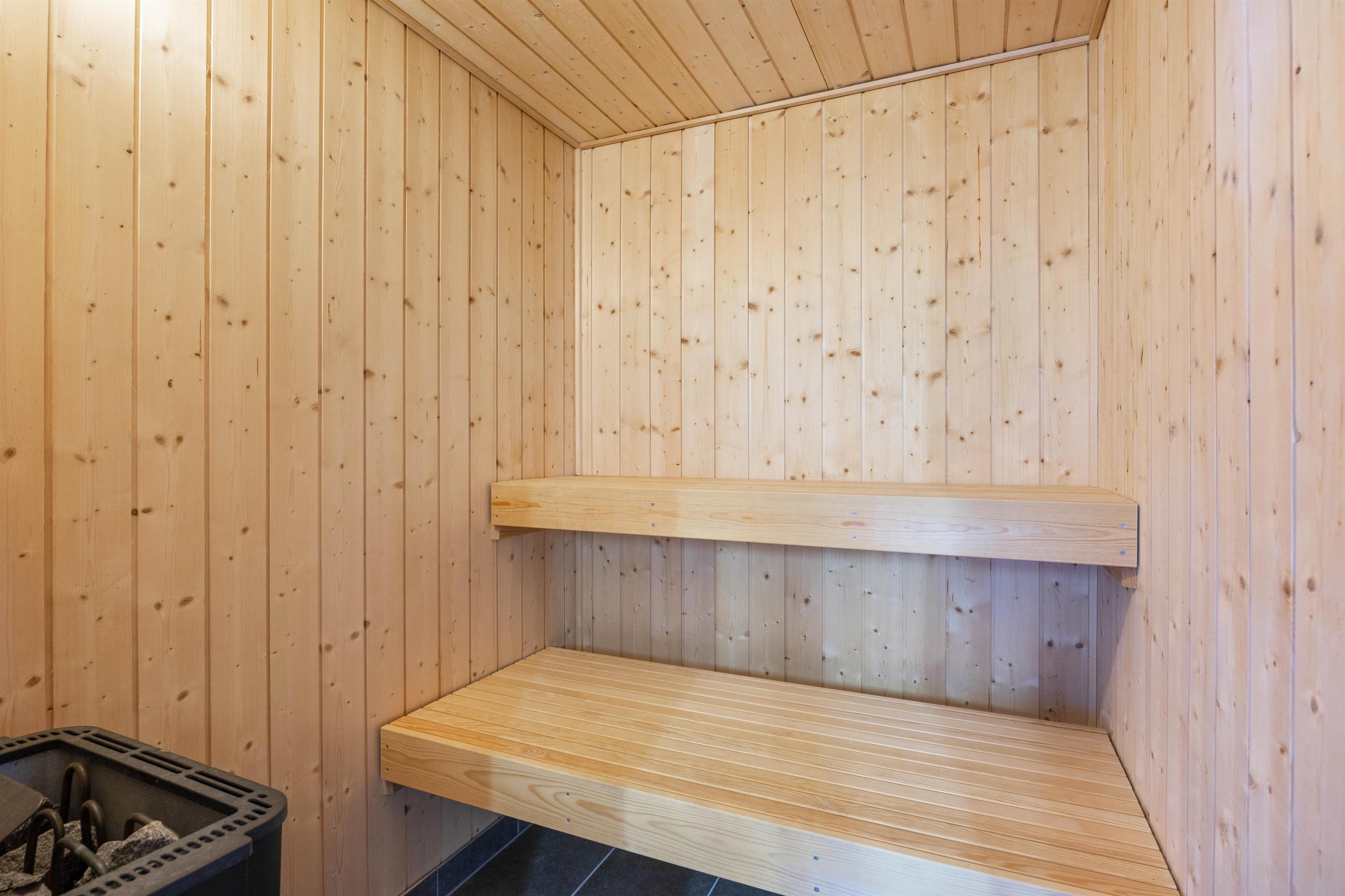 Derudover råder huset over 2 badeværelser, hvoraf det ene er udstyret med et spabad til to personer og en sauna. Her kan I nyde afslappende wellnessoplevelser og koble helt fra.