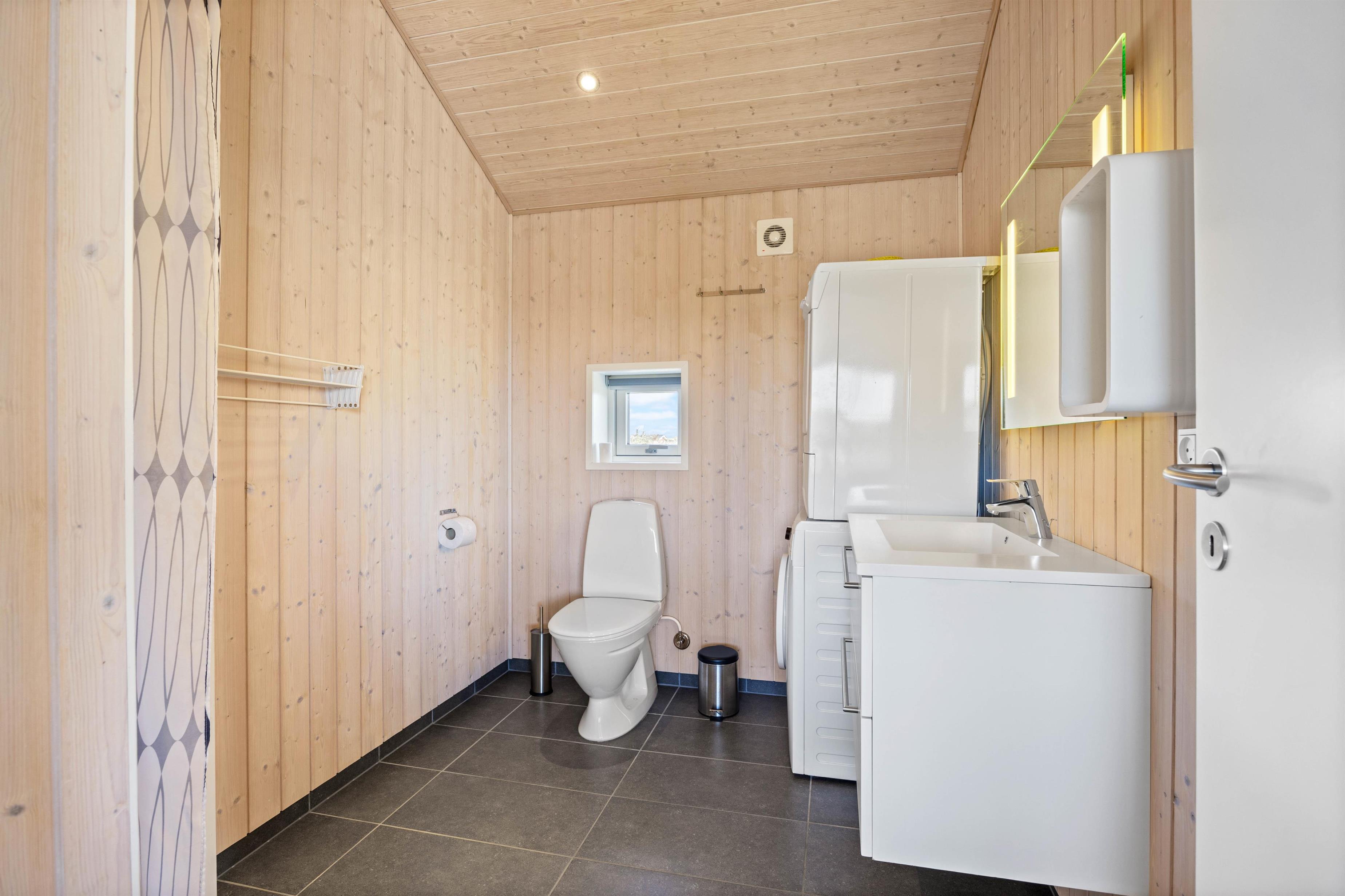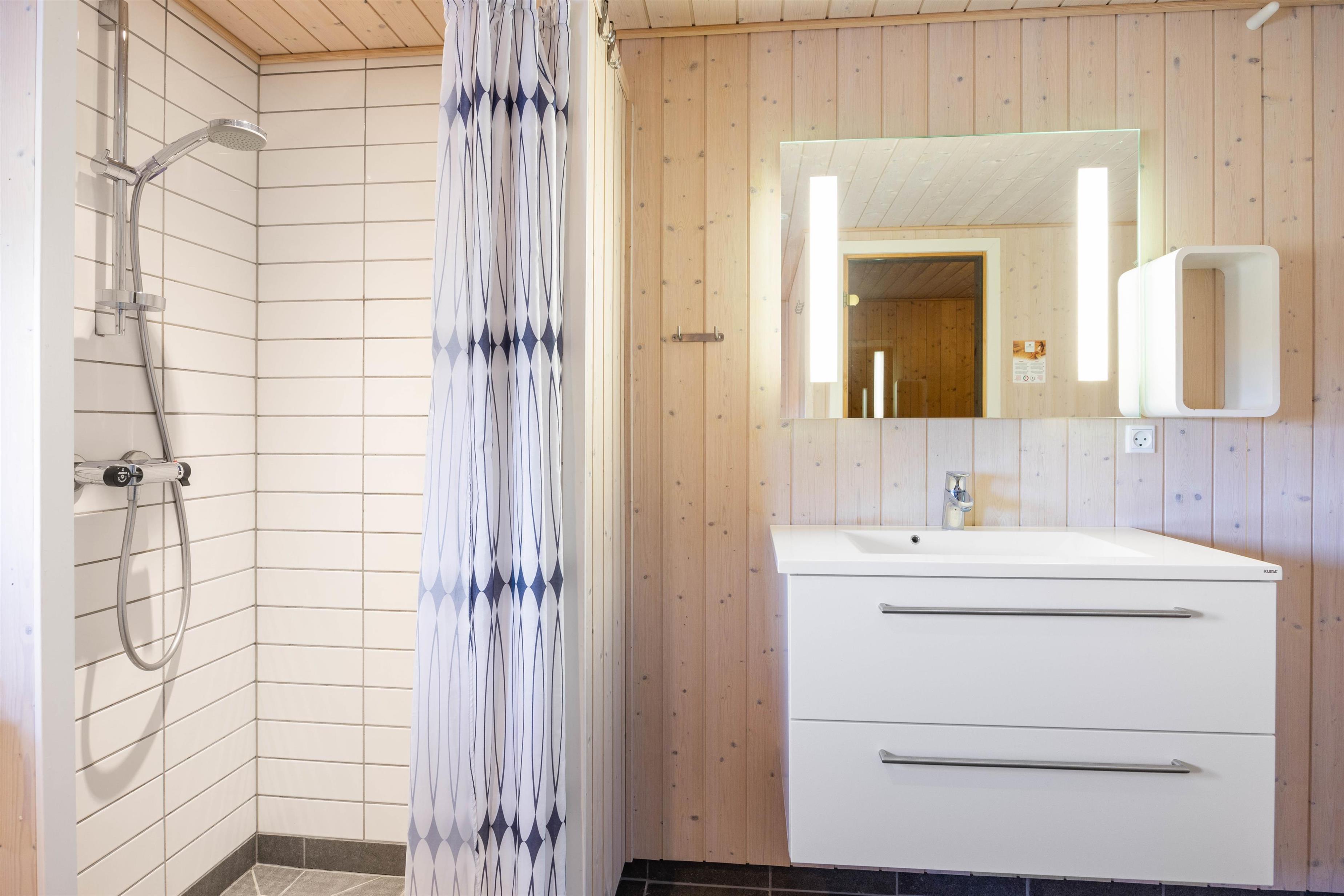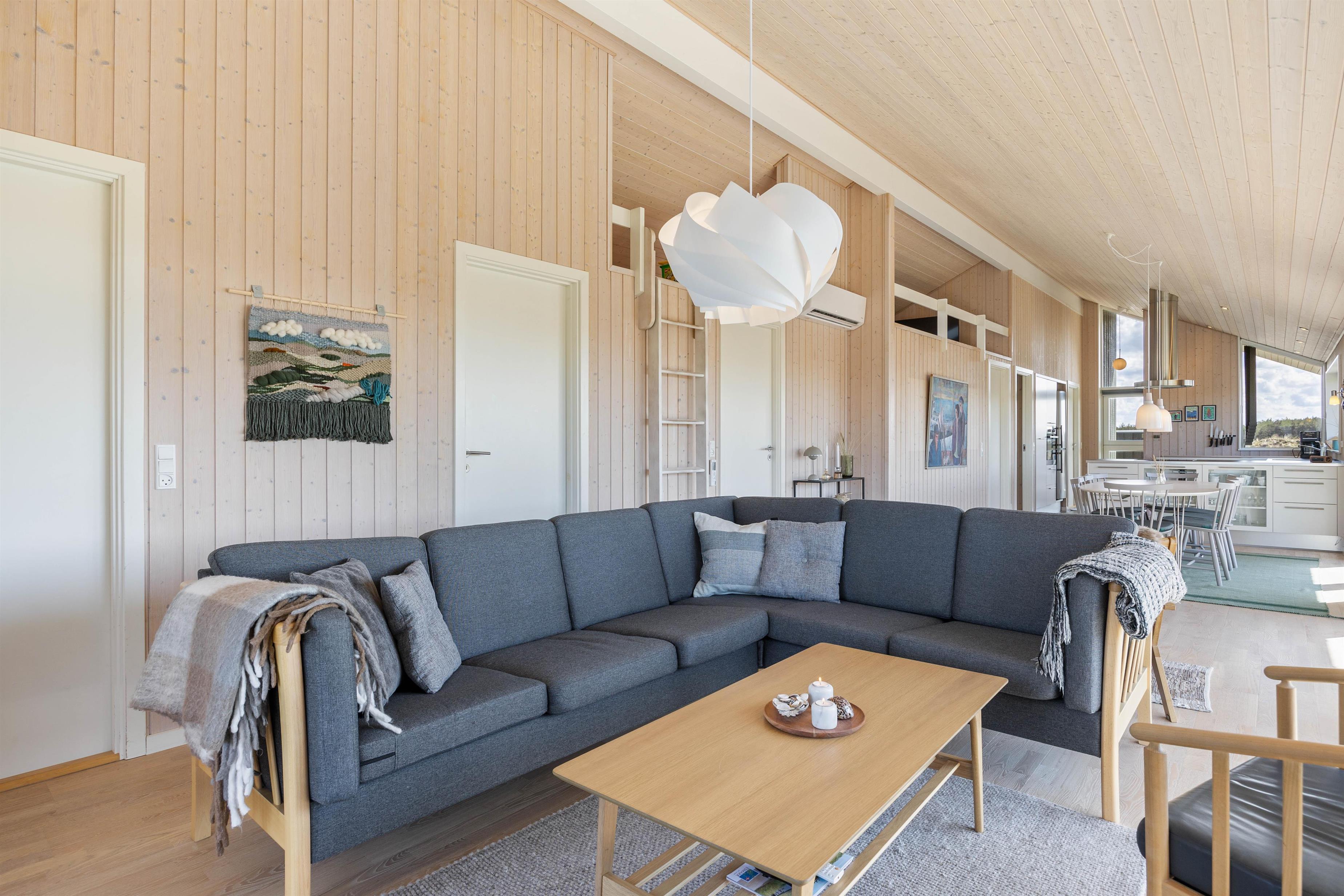 Sommerhuset er omgivet af en lækker, delvist overdækket og afskærmet træterrasse langs tre af siderne. Find et dejligt sted i læ og tænd op i husets gasgrill, så I kan nyde et lækkert måltid og samles hele familien. Mens I venter på maden, er der på den 2600 kvm store naturgrund, masser af plads for børnene at gå på opdagelse i – især gyngen og sandkassen er et hit.