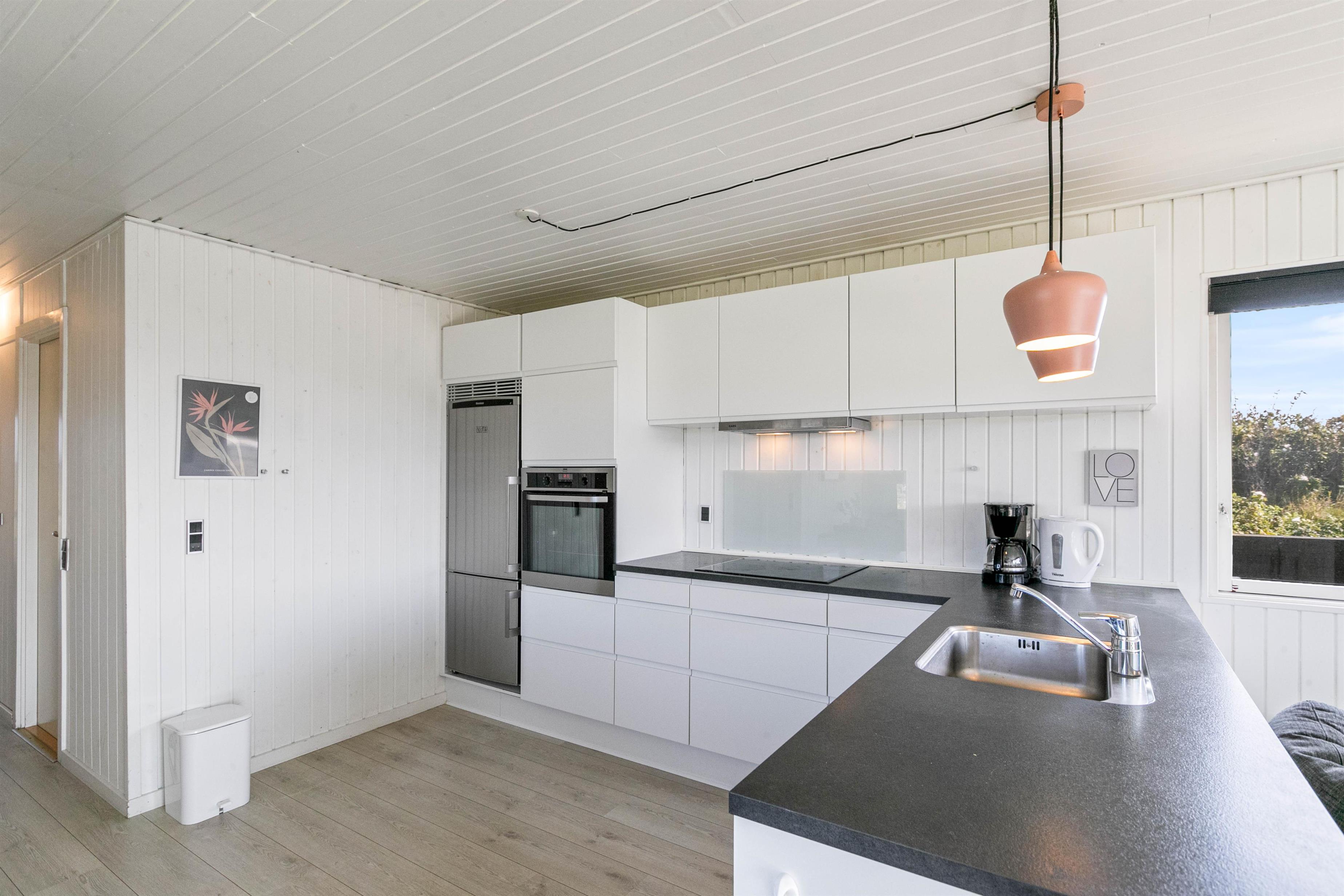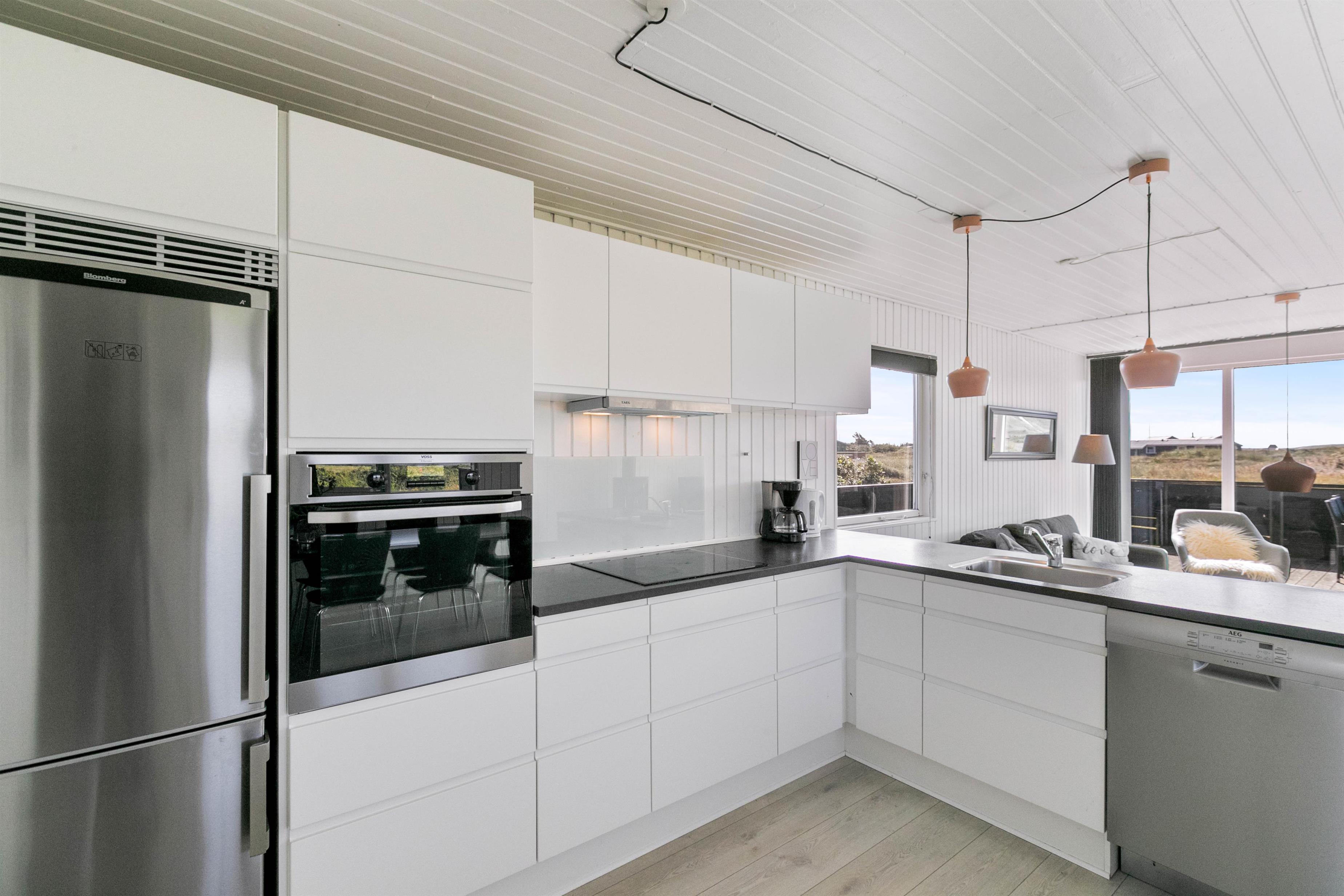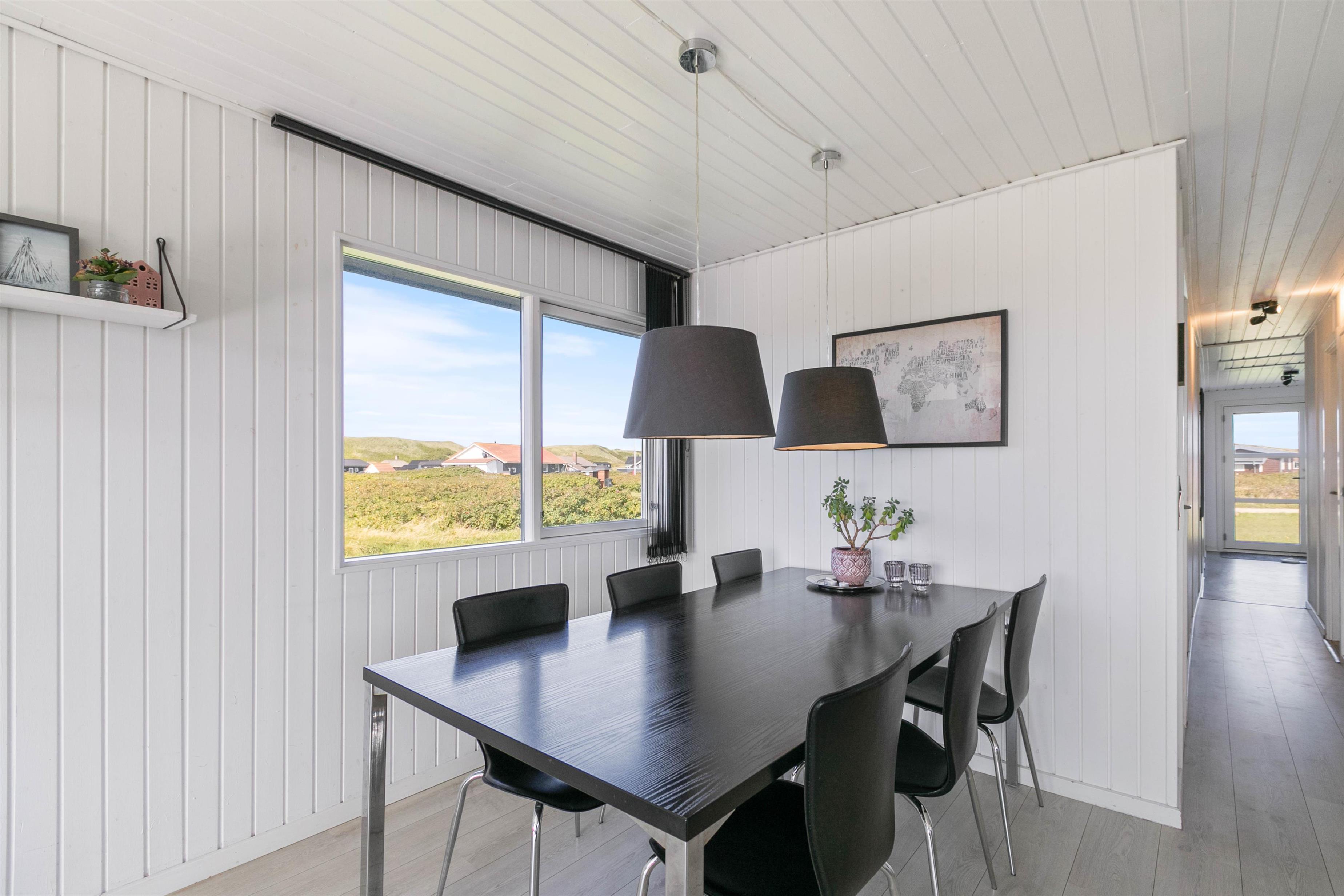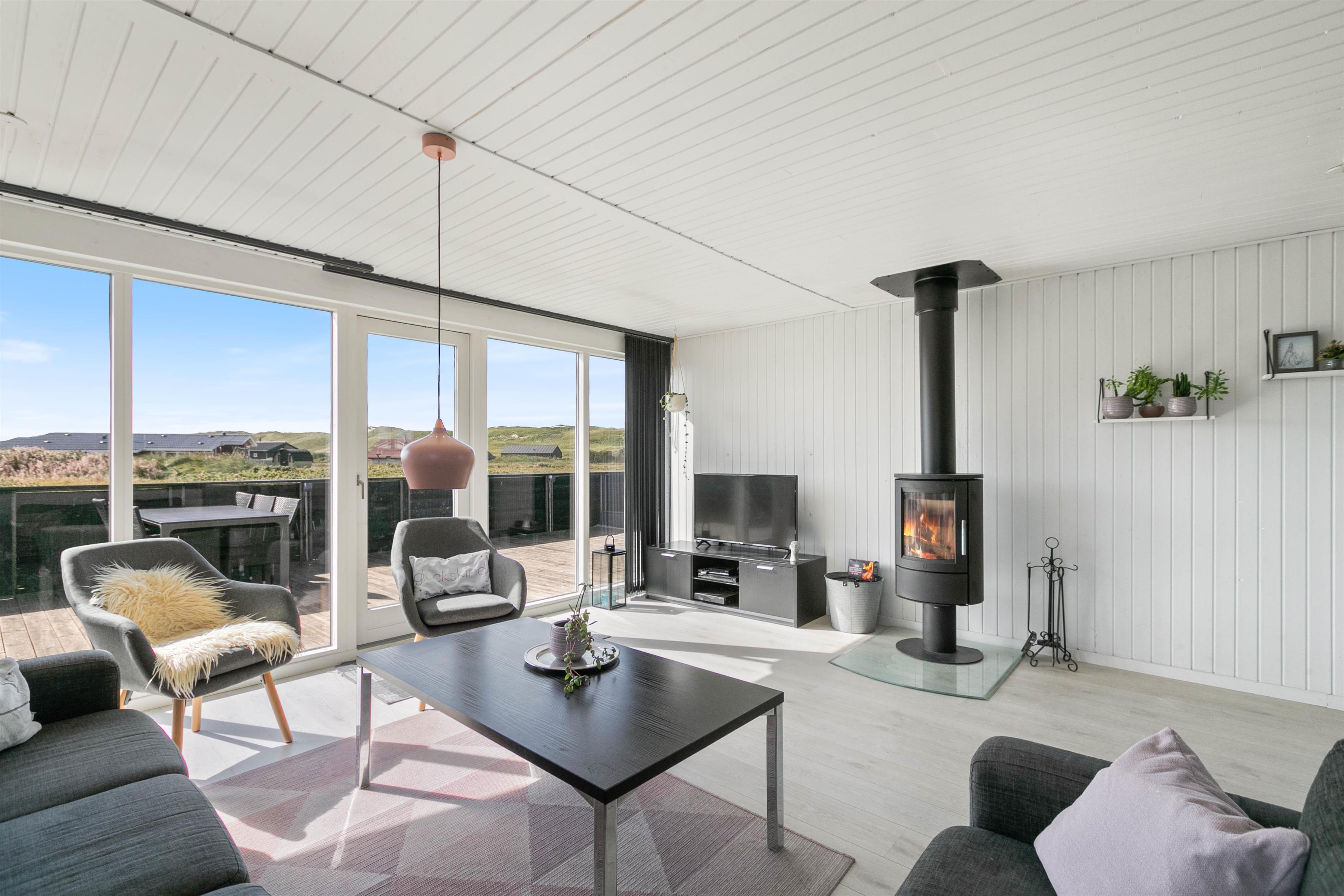 Lækker, stor terrasse, som er lukket. Fra terrassen har du en dejlig udsigt over det flotte klitlandskab. Til børnefamilien har udearealet meget at byde på. Til huset hører nemlig en dejlig, stor græsplæne, der er helt perfekt til leg og boldspil. Derudover er der både sandkasse og gynge til familiens mindste. Ønsker I at tage på tur, så ligger Hvide Sande bare nogle få kilometer fra huset. Her er der spændende og sjove aktiviteter for hele familien.