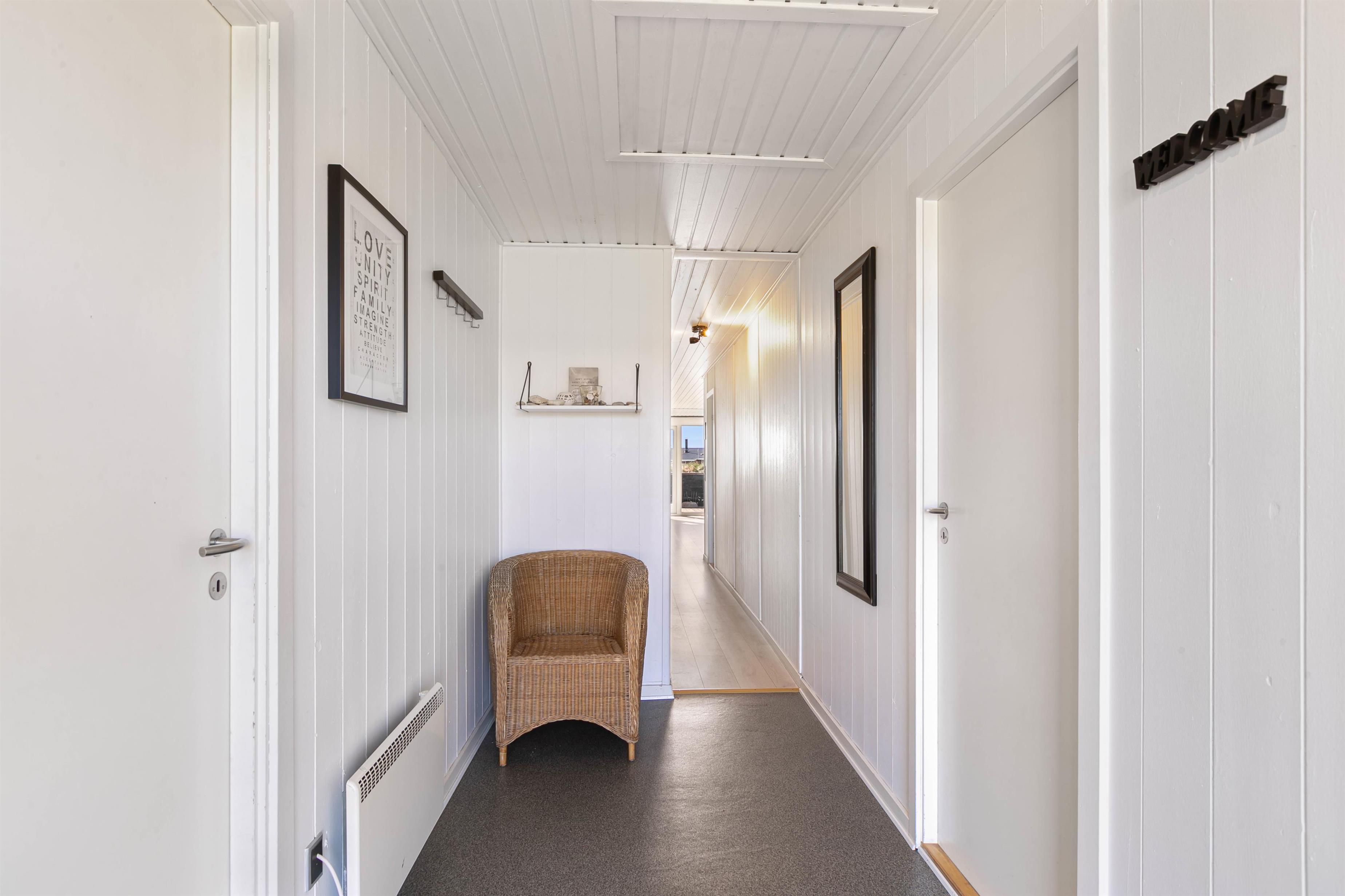 Sommerhuset blev bygget i 1972. Den sortmalede facade og de hvide vinduer oser af klassisk sommerhusstemning. Men når du træder ind i huset, så er det tydeligt, at huset har gennemgået omfattende renovering og vedligehold. Lofter, vægge og gulve er holdt i lyse nuancer for at lukke så meget lys ind i indretningen som muligt. Samtidig er møbler og inventar med til at skabe kontrast og atmosfære i rummene. Indretningen er moderne og stringent men emmer samtidig af sommerhusstemning og hygge. I sommerhuset er der fire soverum med plads til 6 personer. Husets hovedbadeværelse har desuden wellnessafdeling med både spabad og sauna. Med dette sommerhus får I et rigtigt godt sommerhus med i en høj standard og med stor komfort.