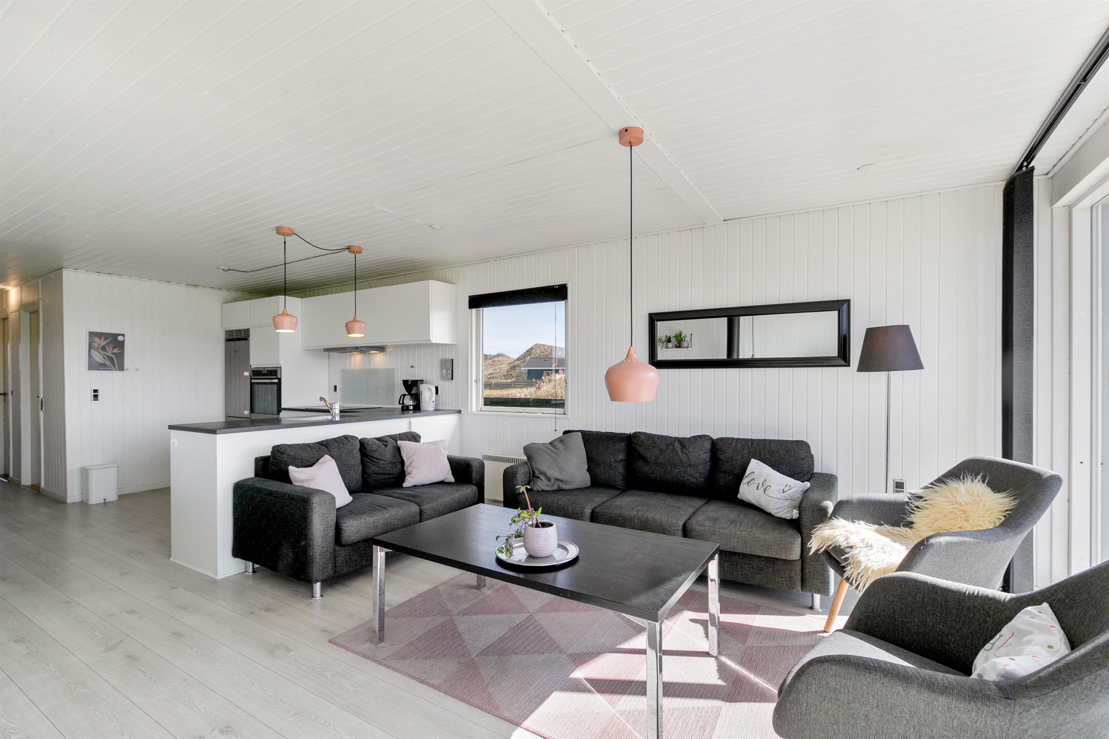 Dette fantastisk, dejlige og gennemrenoverede feriehus ligger på Tingodden i Årgab. Huset har en lys og indbydende indretning, og fra stuen og den store, lukkede terrasse er der en skøn udsigt til de smukke klitter.