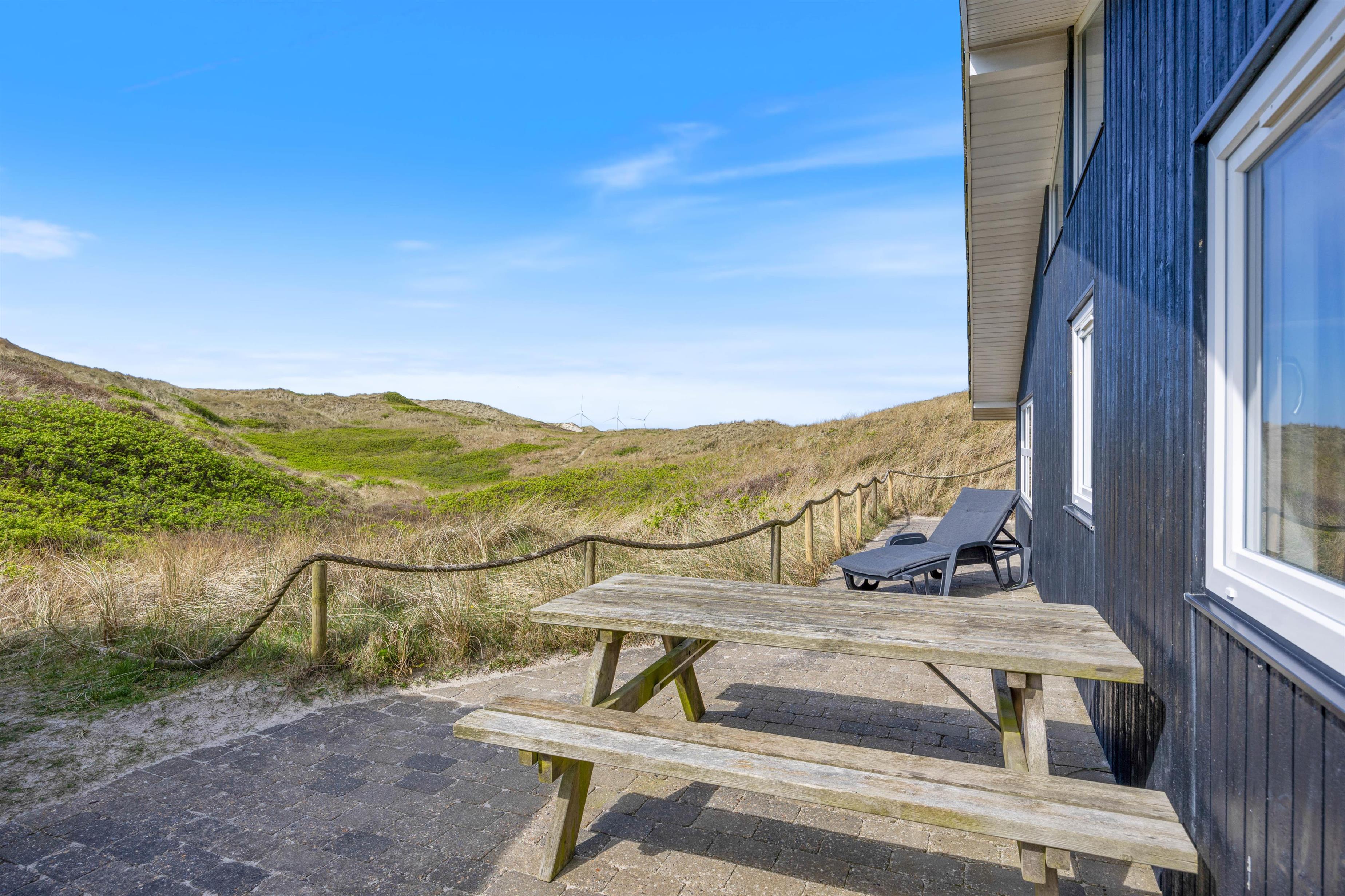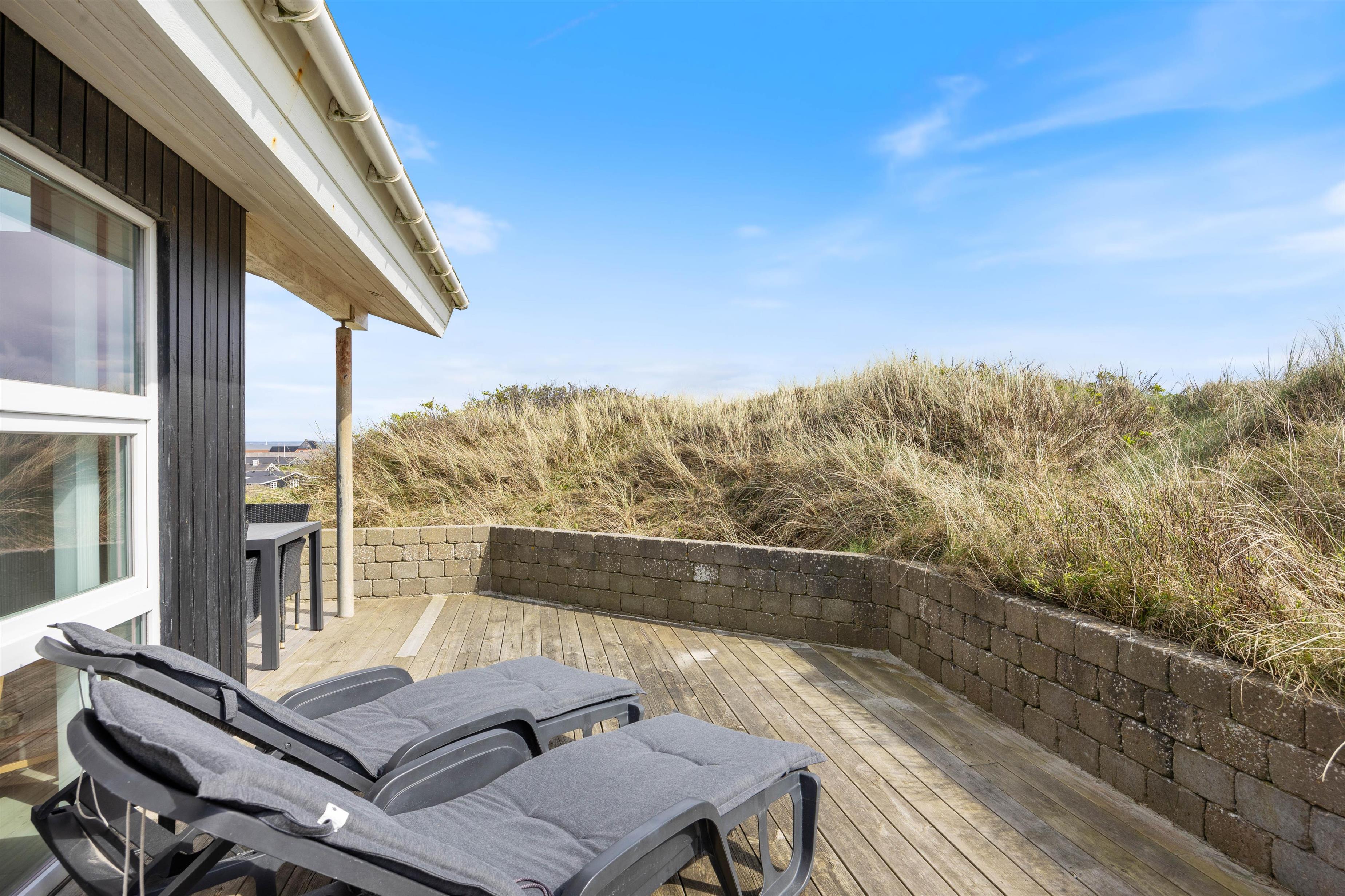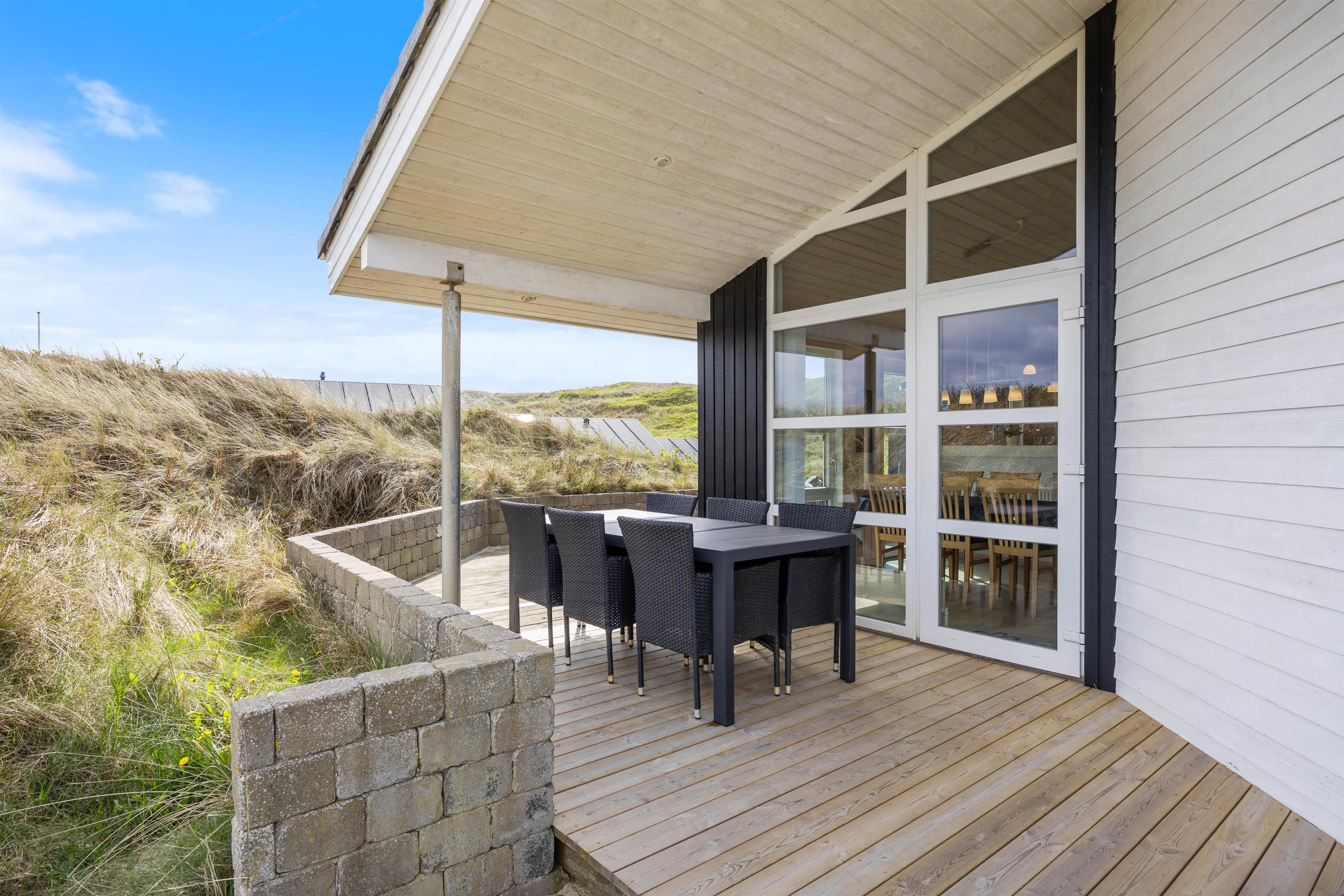 Udenfor finder I en skøn terrasse, som er delvist overdækket. På terrassen kan I sidde og nyde den skønne udsigt over Ringkøbing Fjord, imens I kan høre den brusende lyd fra Vesterhavet, som kun ligger 100 meter væk fra sommerhuset - ved Vesterhavet kan I gå lange ture langs kysten.