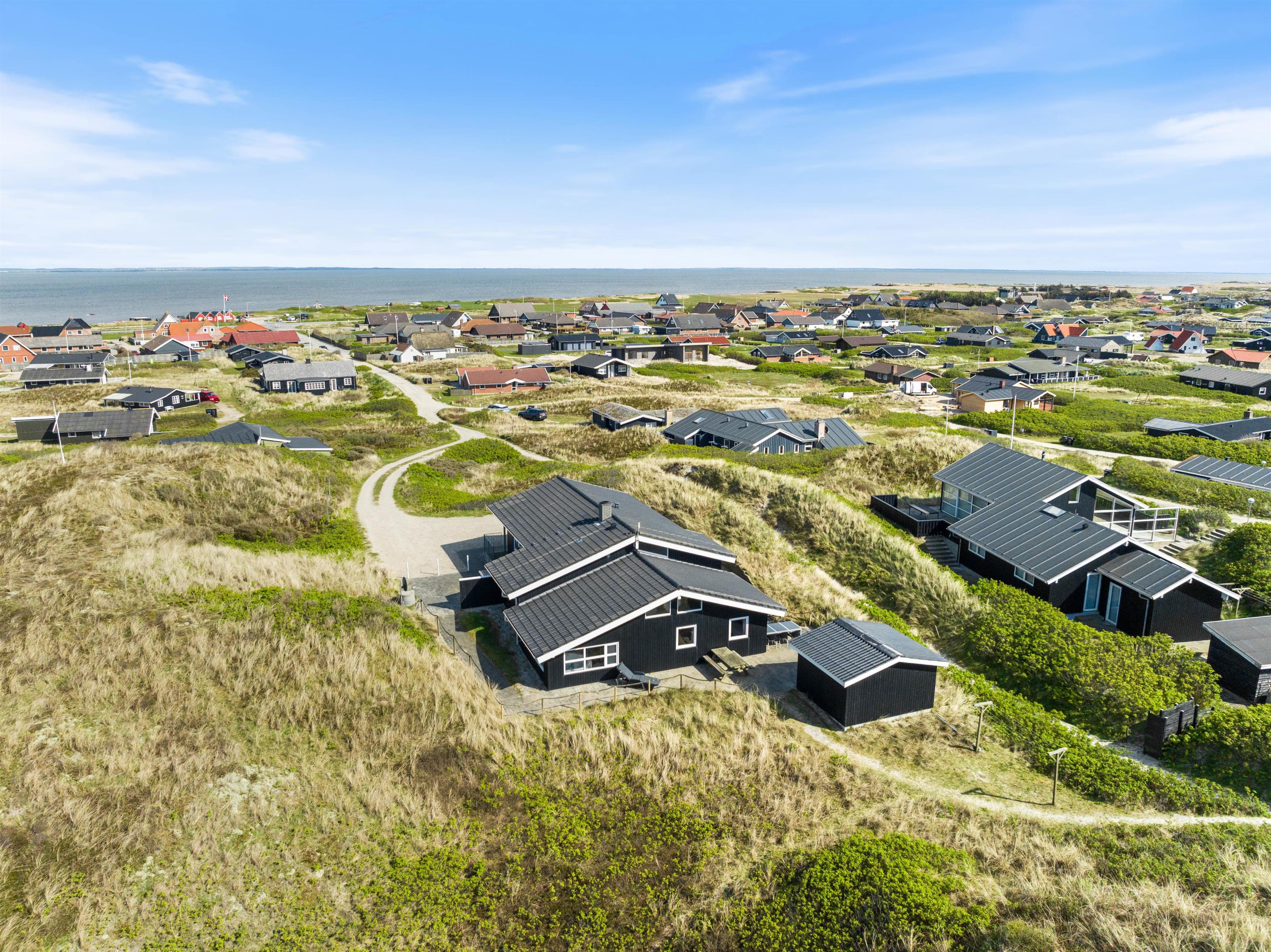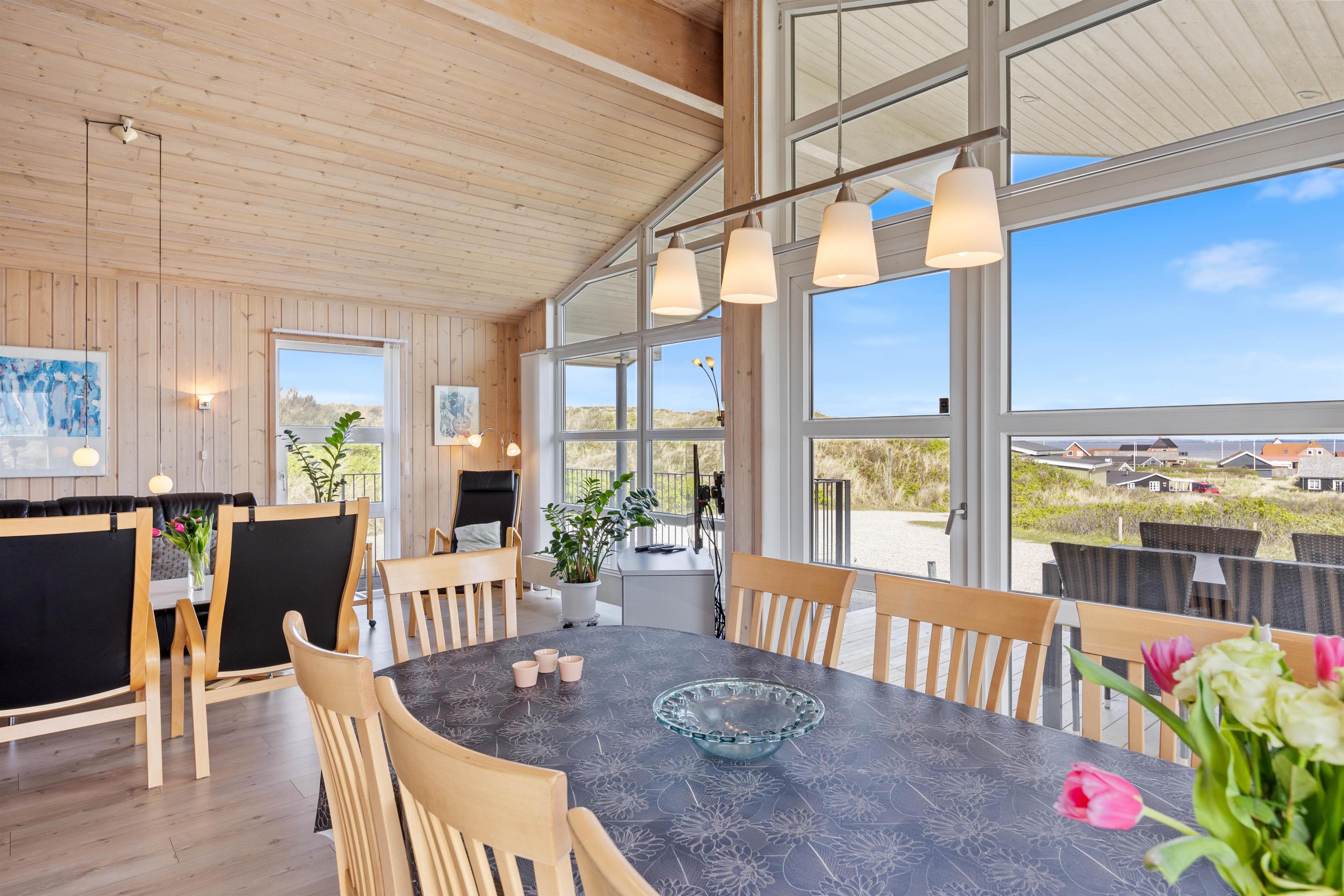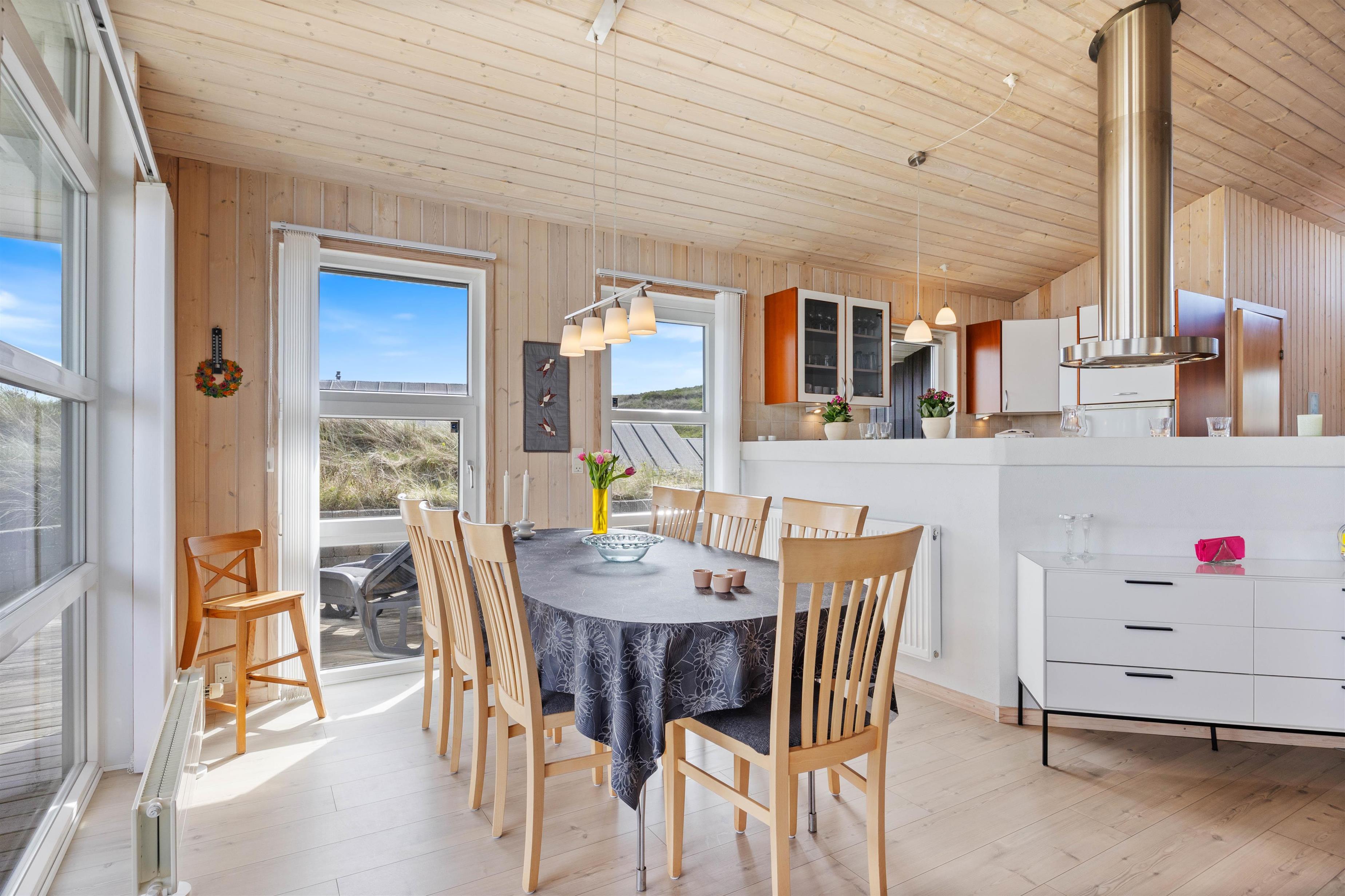 Udenfor finder I en skøn terrasse, som er delvist overdækket. På terrassen kan I sidde og nyde den skønne udsigt over Ringkøbing Fjord, imens I kan høre den brusende lyd fra Vesterhavet, som kun ligger 100 meter væk fra sommerhuset - ved Vesterhavet kan I gå lange ture langs kysten.