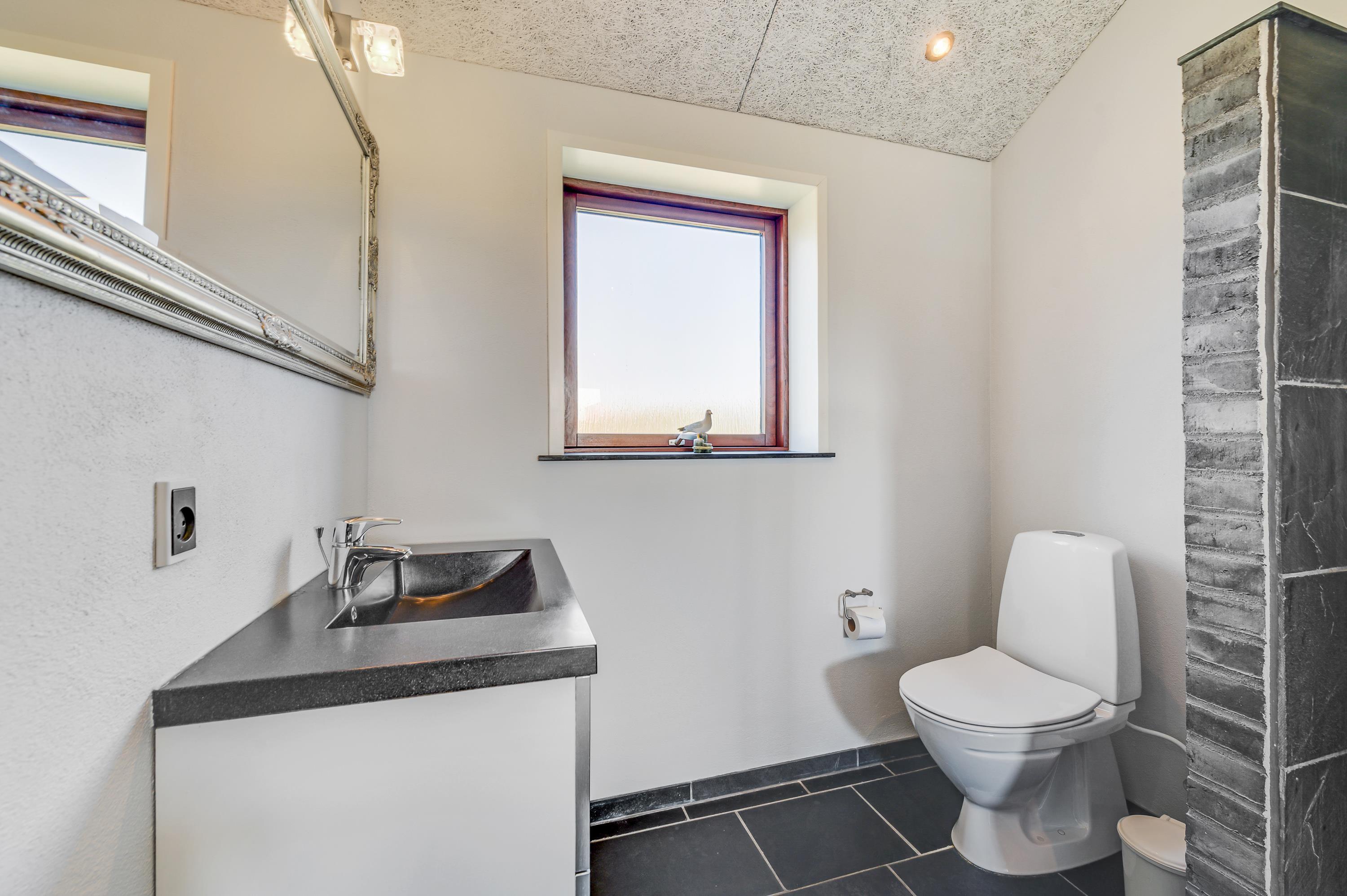 De to badeværelser i sommerhuset er udstyret med gulvvarme, hvilket sikrer, at alle kan blive mødt af den dejlige gulvvarme på de kolde morgener. På det ene af de to badeværelser findes et badekar, hvor man kan smide sig i det varme vand.
