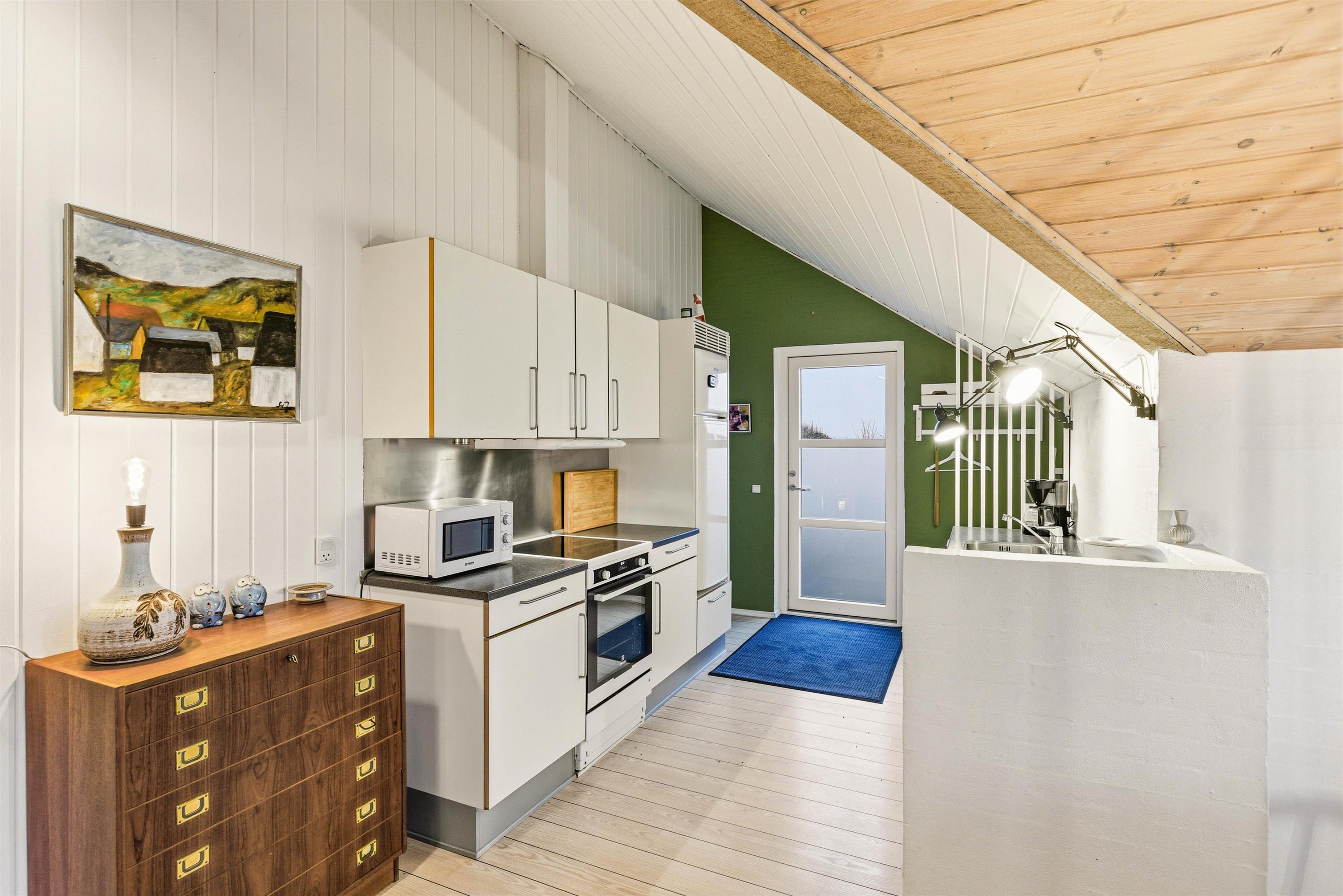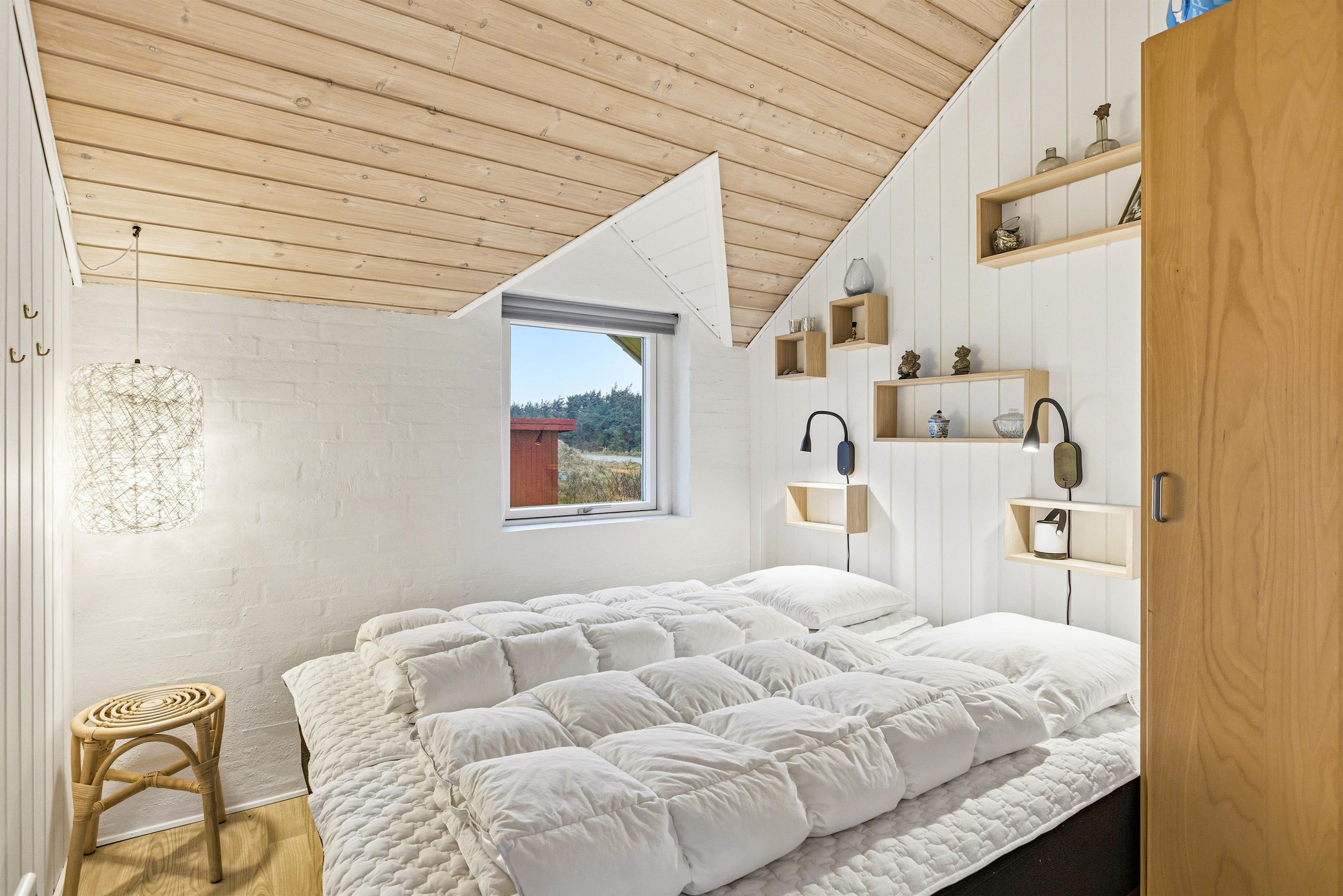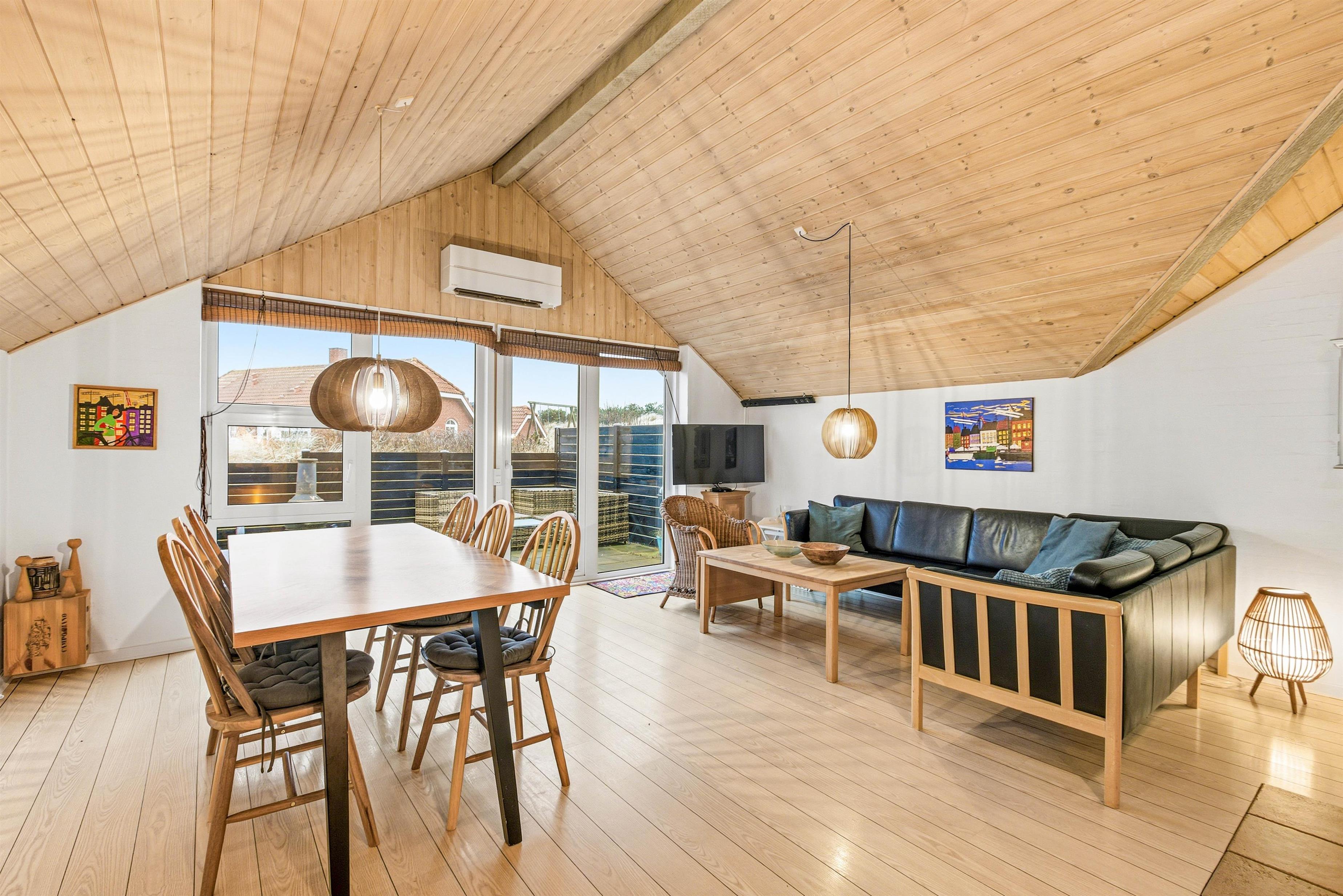 Feriehusets indretning er præget af lyse materialer, højt til loftet og enkelt interiør, som skaber en indbydende atmosfære og lægger op til en klassisk sommerhusferie, hvor samvær og afslapning er i højsædet.