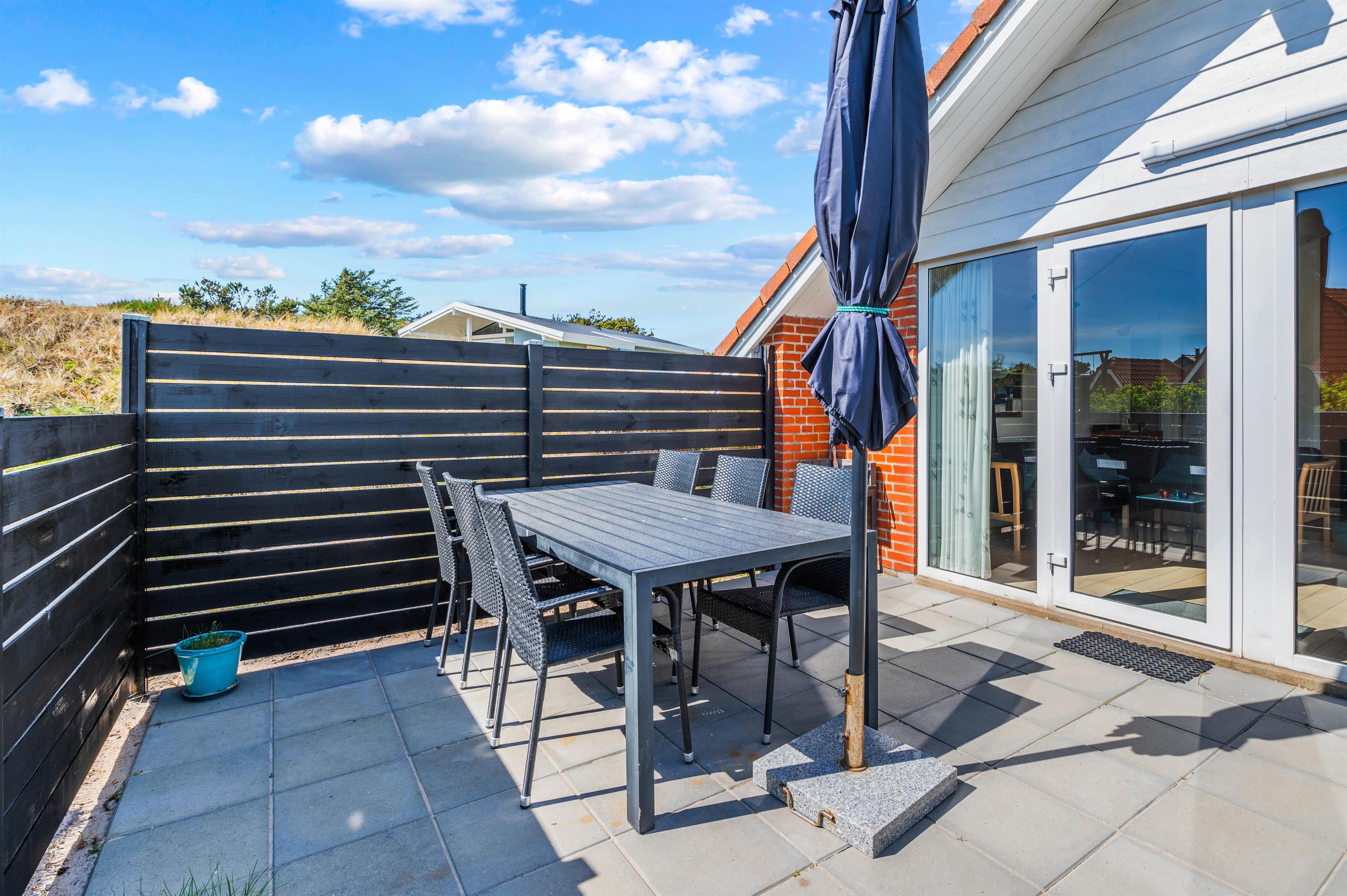 Sommerhusets udeareal byder på flere skønne siddekroge både mod øst og mod syd, så I dagen lang kan nyde solens stråler og den friske havluft. Terrassen mod syd er desuden helt lukket, så I uden betænkeligheder kan lufte hundene.