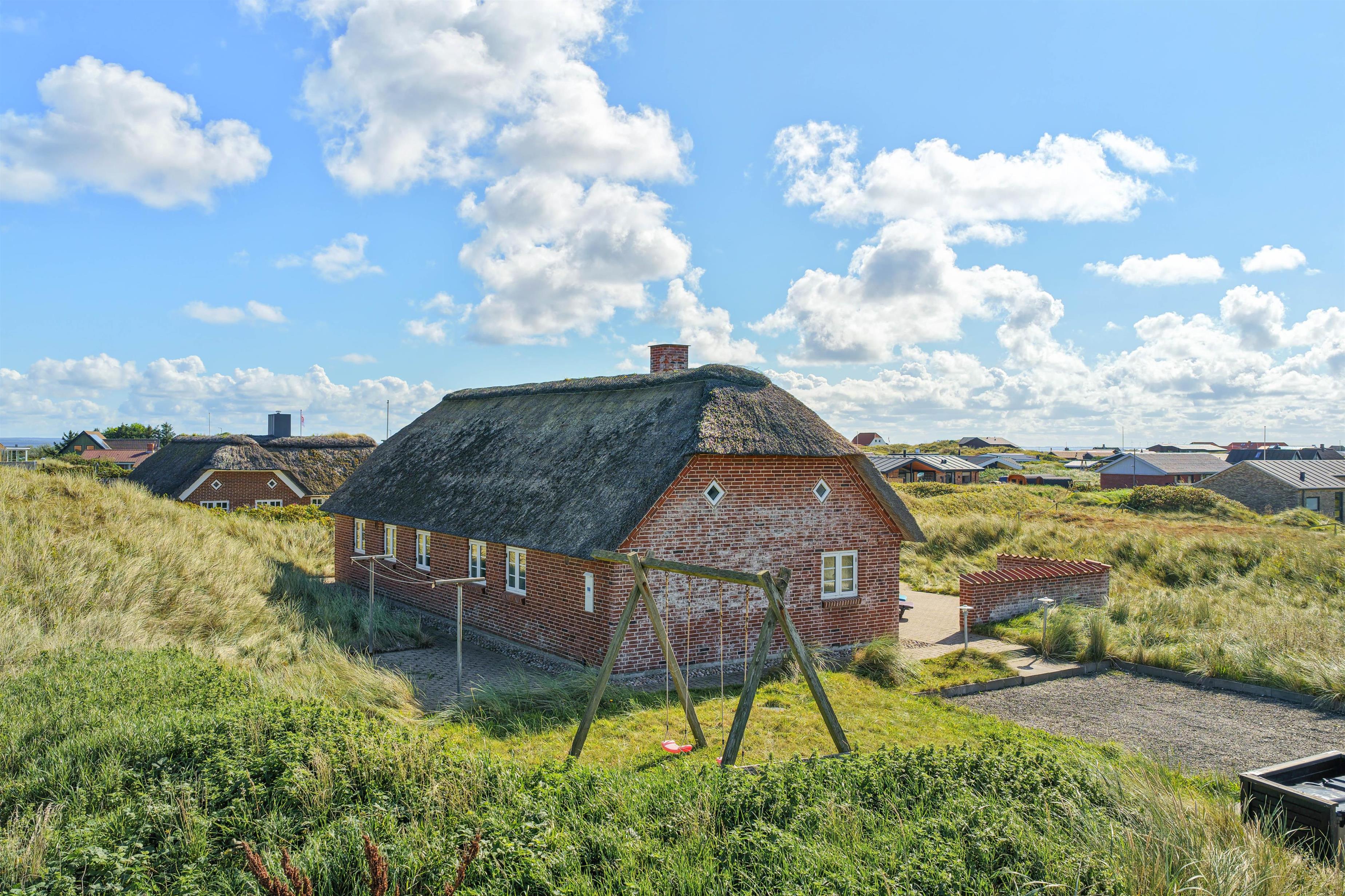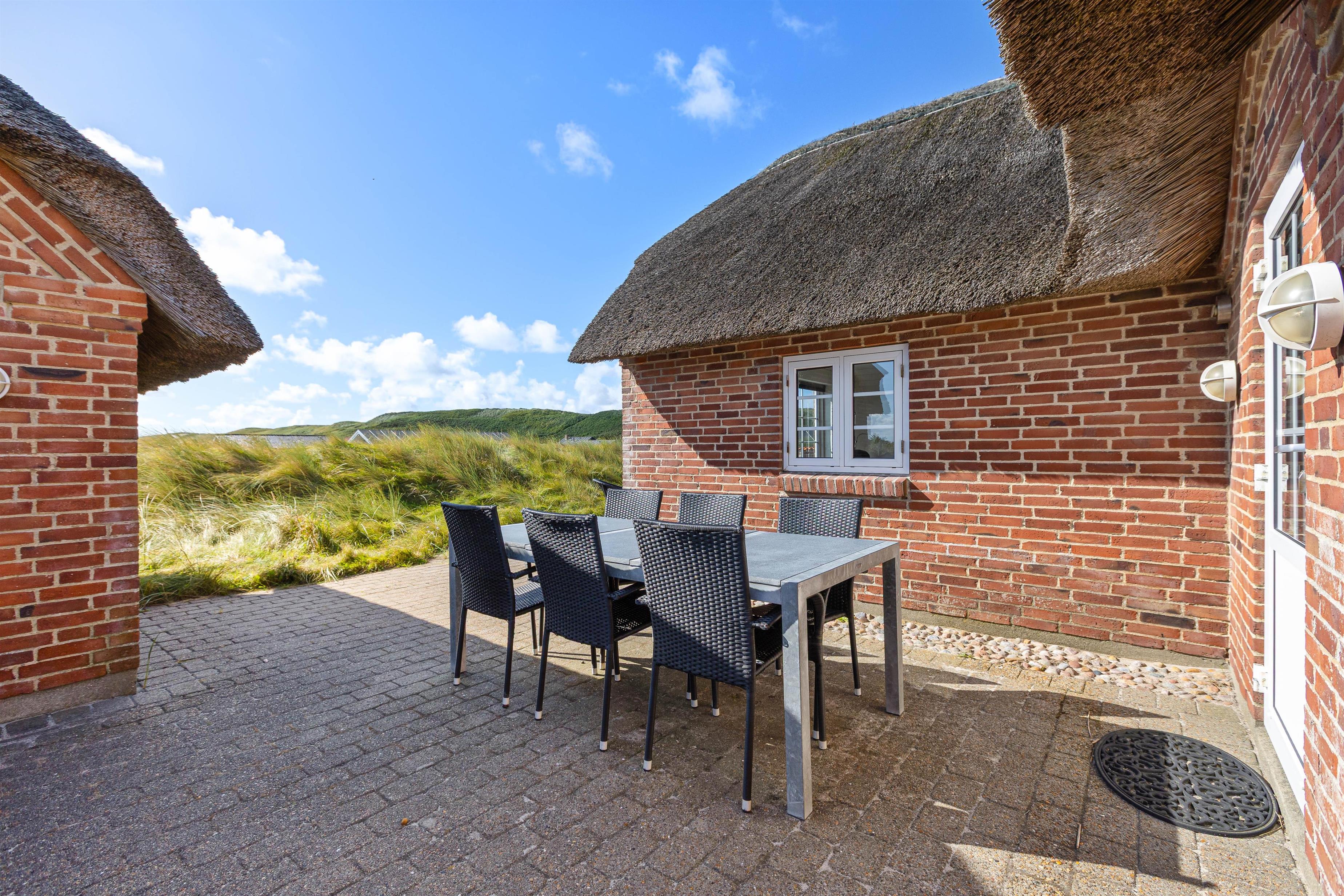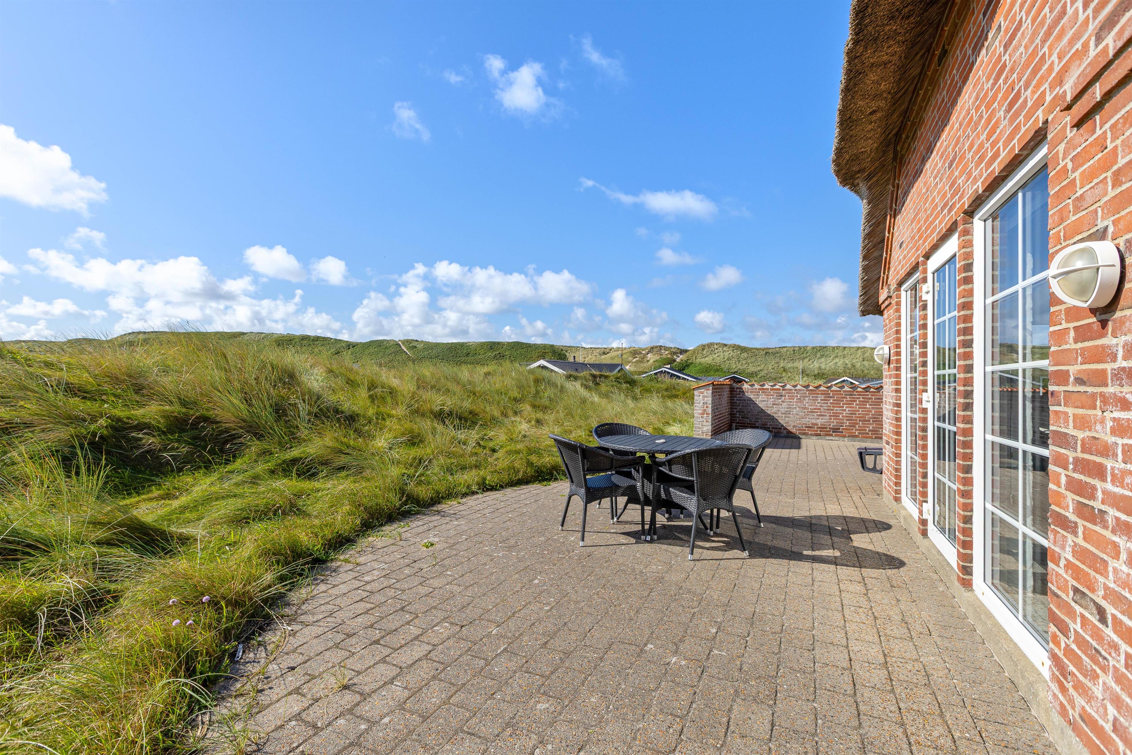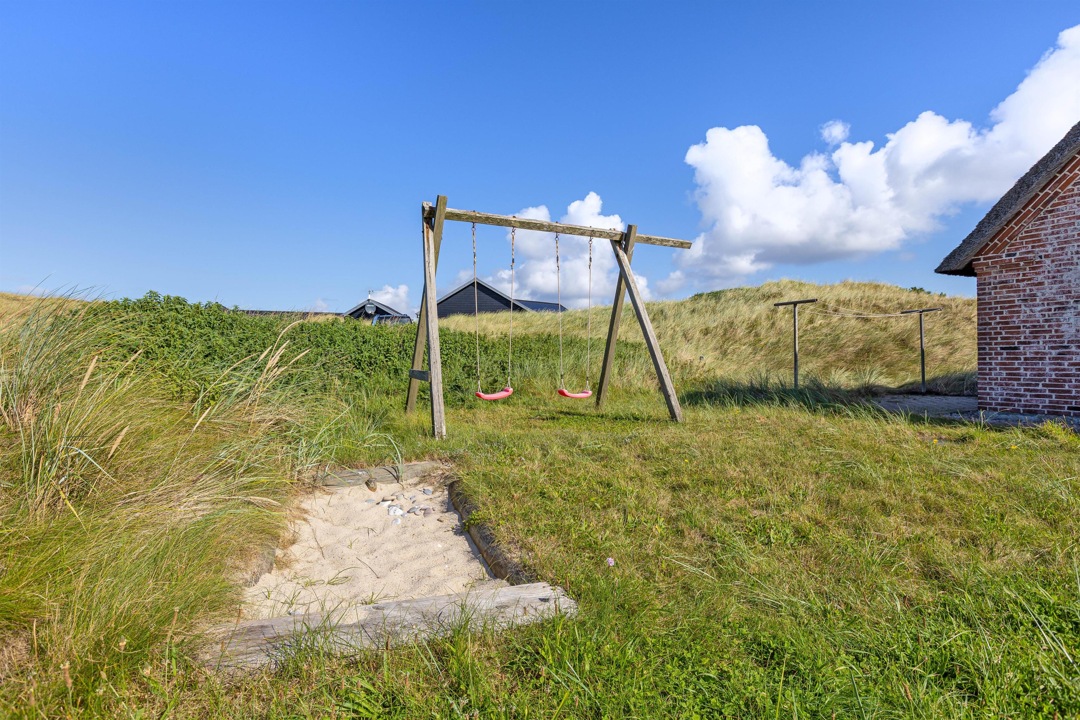 Rundt om huset har I en dejlig terrasse, der er perfekt til solbadning, grillaftner og leg. Her er alt det, man kunne tænke sig for at nyde vejret samt en sandkasse og gynger til fri afbenyttelse. Beliggenheden på Strandkrogvejen, gør det især attraktivt for børnefamilier. Vejen ligger godt og isoleret bag Karen Brands Vej og har derfor ikke trafik eller støj i nærområdet. Derimod er det et dejligt, roligt område med gode stier og flot natur, der kan udforskes på cykel eller til fods. Med kun 150 m til stranden, har I nærmest Vesterhavet brusende bølger i baghaven. Skønne Hvide Sande ligger også kun 2 kilometer væk. Her findes et bredt udvalg af hyggelige caféer, restauranter, mens her også er så hyggeligt at spise en god is og kigge i butikker på havnen. Et sand ferieparadis året rundt.