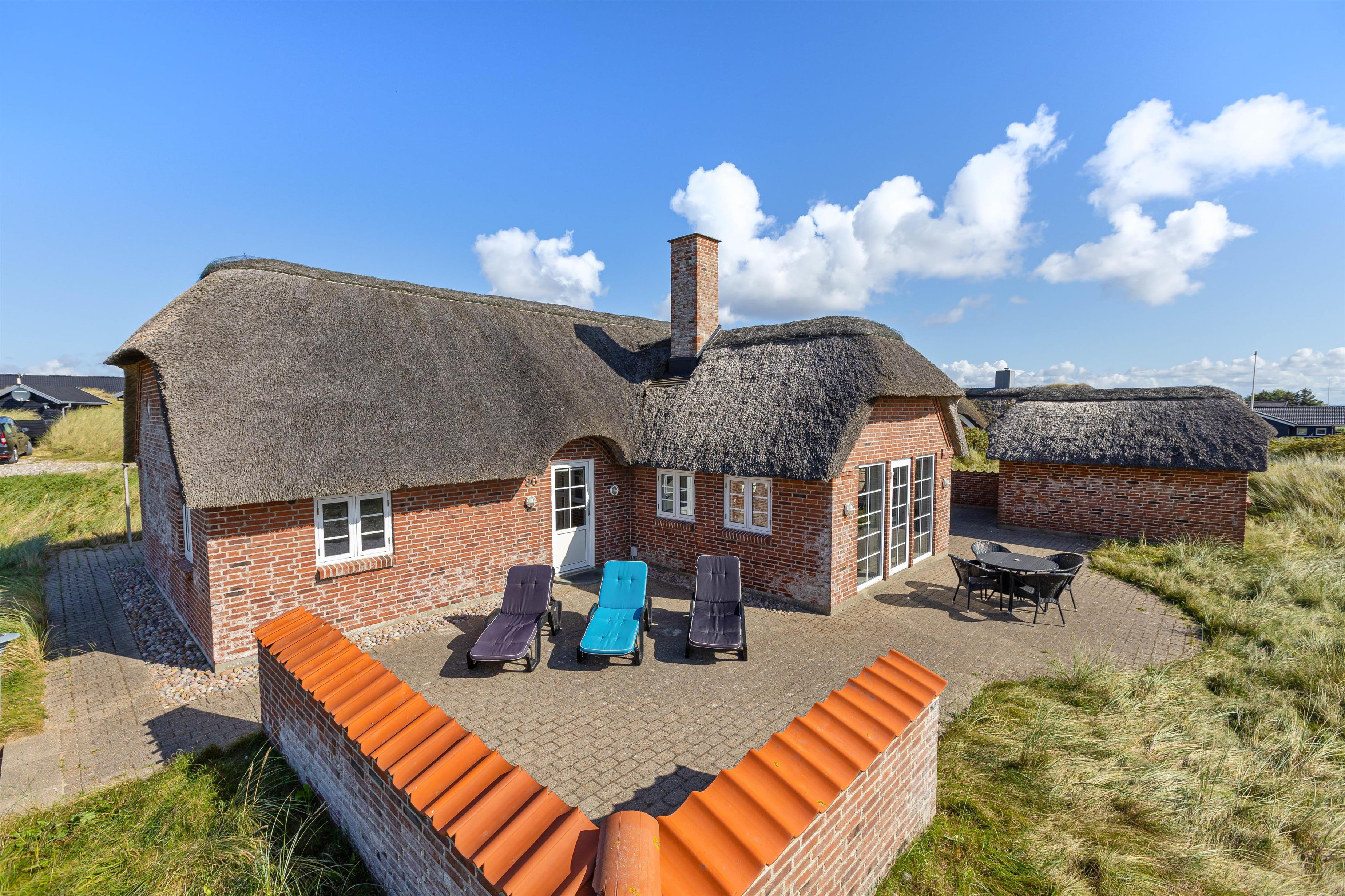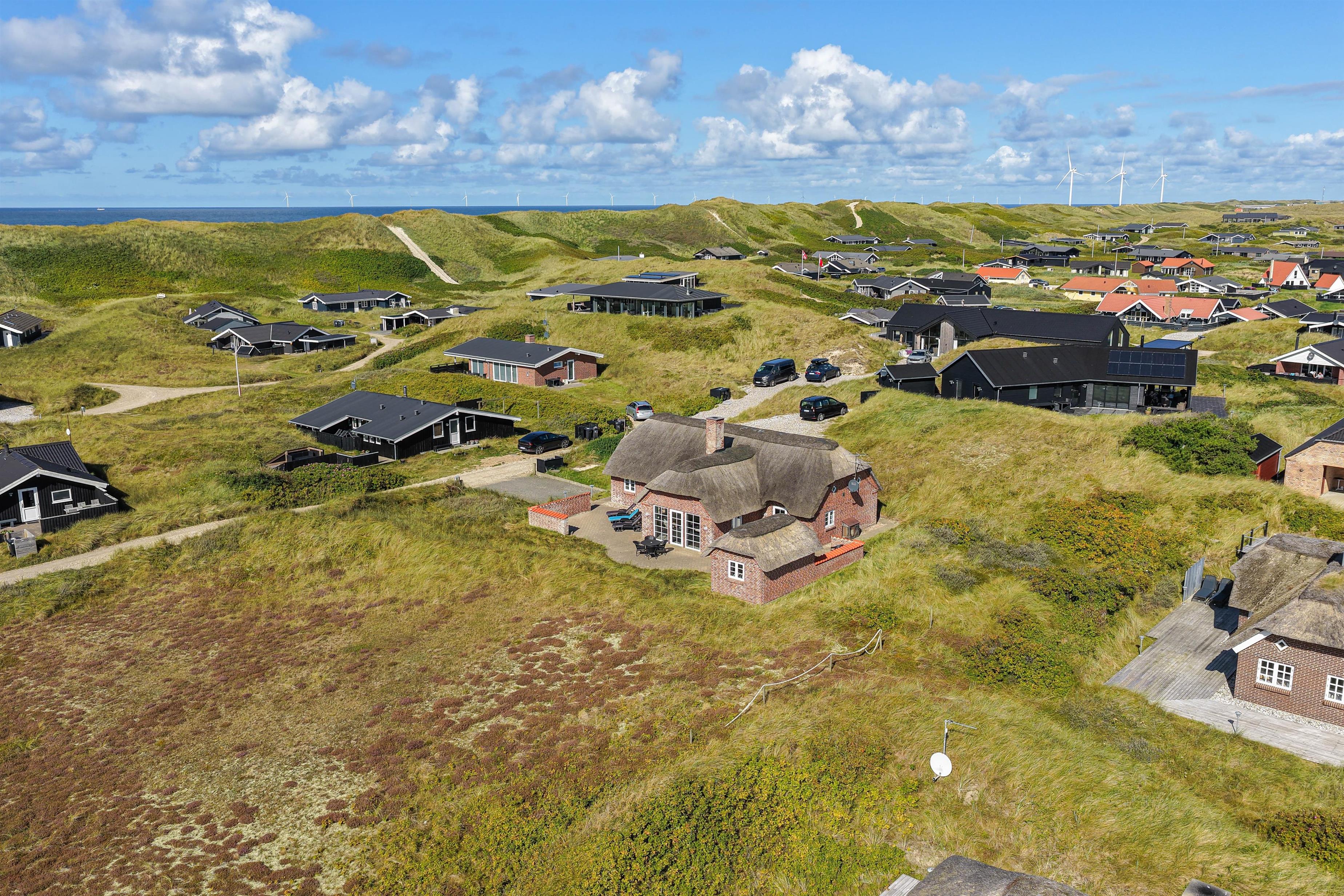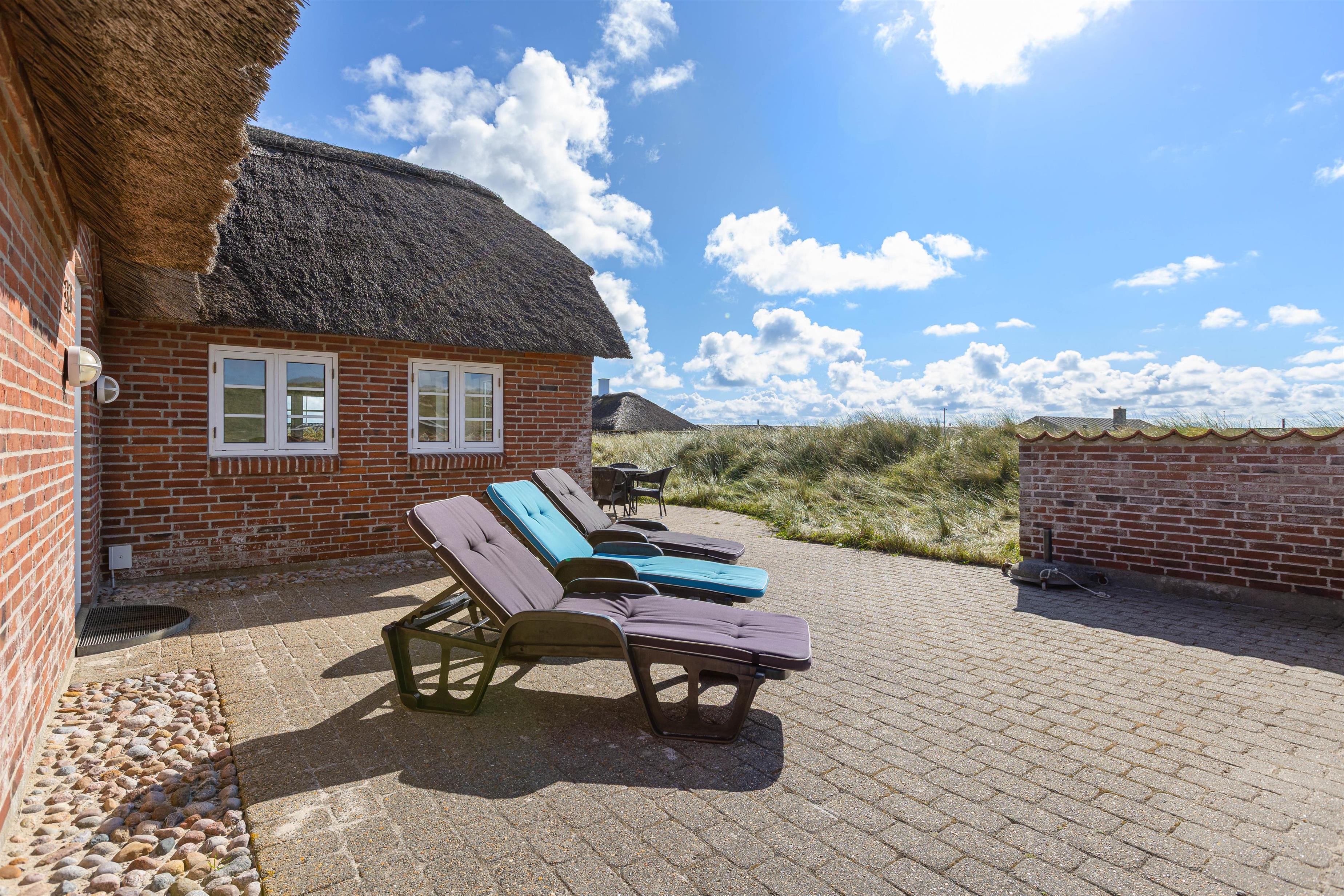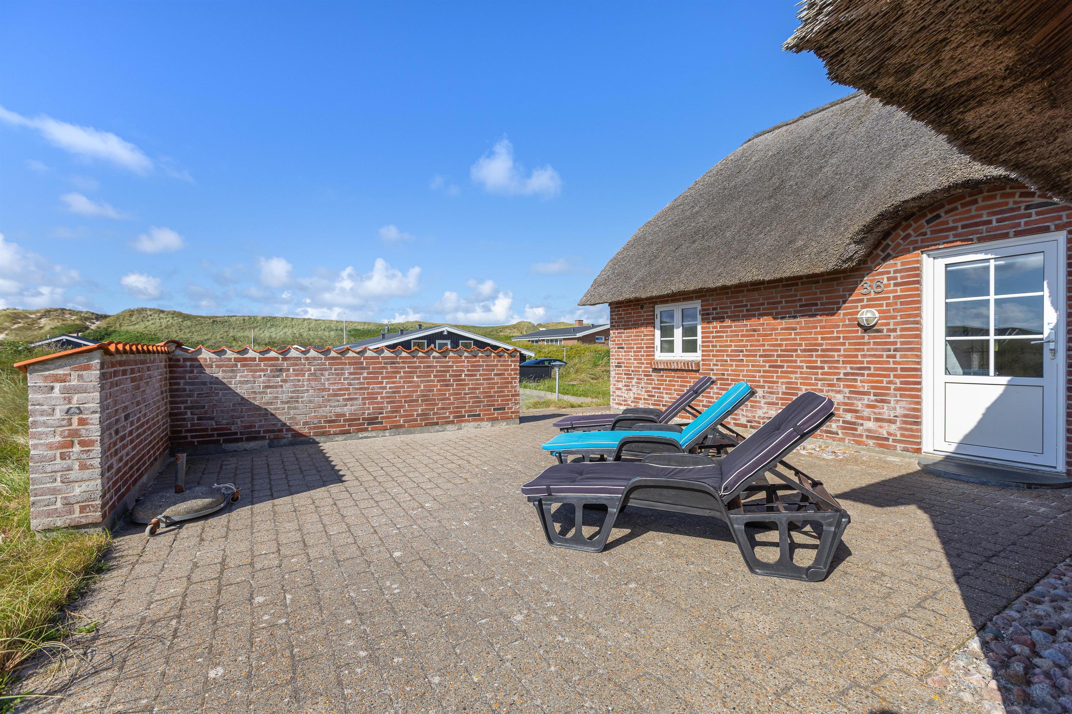 Rundt om huset har I en dejlig terrasse, der er perfekt til solbadning, grillaftner og leg. Her er alt det, man kunne tænke sig for at nyde vejret samt en sandkasse og gynger til fri afbenyttelse. Beliggenheden på Strandkrogvejen, gør det især attraktivt for børnefamilier. Vejen ligger godt og isoleret bag Karen Brands Vej og har derfor ikke trafik eller støj i nærområdet. Derimod er det et dejligt, roligt område med gode stier og flot natur, der kan udforskes på cykel eller til fods. Med kun 150 m til stranden, har I nærmest Vesterhavet brusende bølger i baghaven. Skønne Hvide Sande ligger også kun 2 kilometer væk. Her findes et bredt udvalg af hyggelige caféer, restauranter, mens her også er så hyggeligt at spise en god is og kigge i butikker på havnen. Et sand ferieparadis året rundt.
