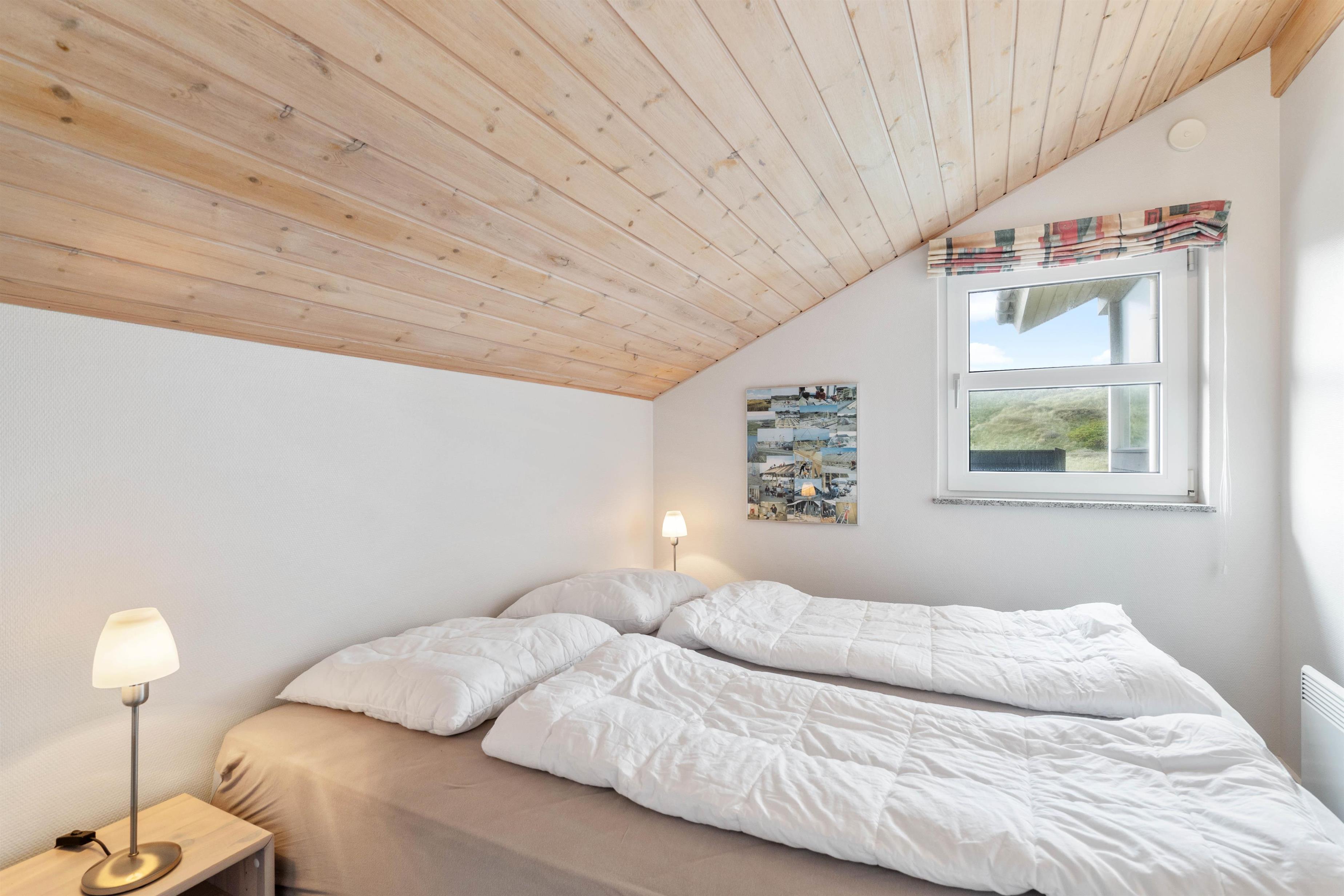 Sommerhusets 6 sovepladser fordeler sig på 3 gode værelser, som alle er indrettet med dobbeltsenge. Her kan I tanke ny energi til morgendagens ferieaktiviteter. Derudover finder I et badeværelse samt et gæstetoilet, begge med gulvvarme.