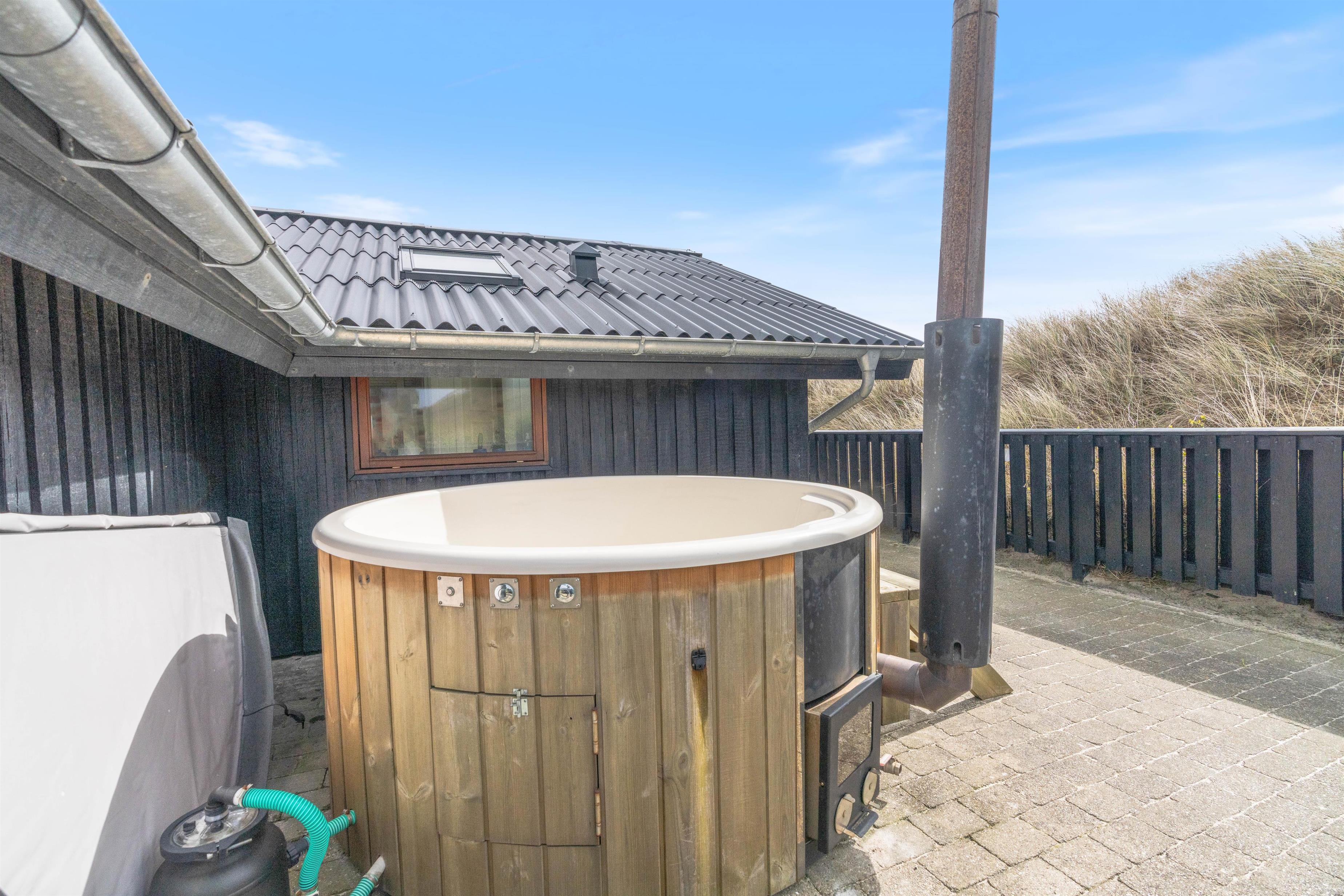 Husets rummelige, delvist afskærmede og overdækkede terrasse er lavet til forholdene tæt på Vesterhavet, så I altid kan finde et læfyldt sted og nyde den friske havluft. En lille ekstra bonus er den lille terrasse på sydsiden af huset, hvor man kan nyde en stille stund med sin morgenkaffe.