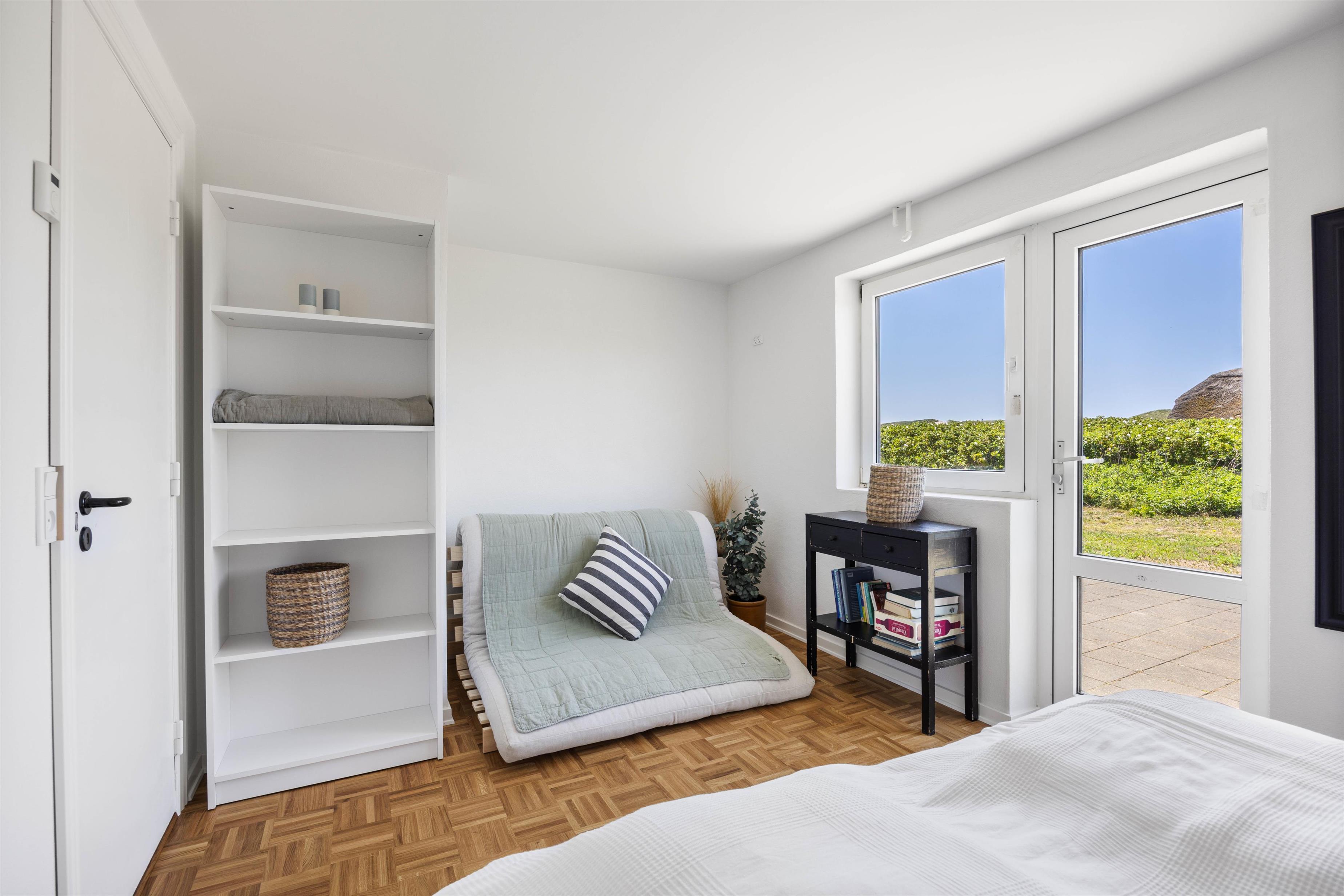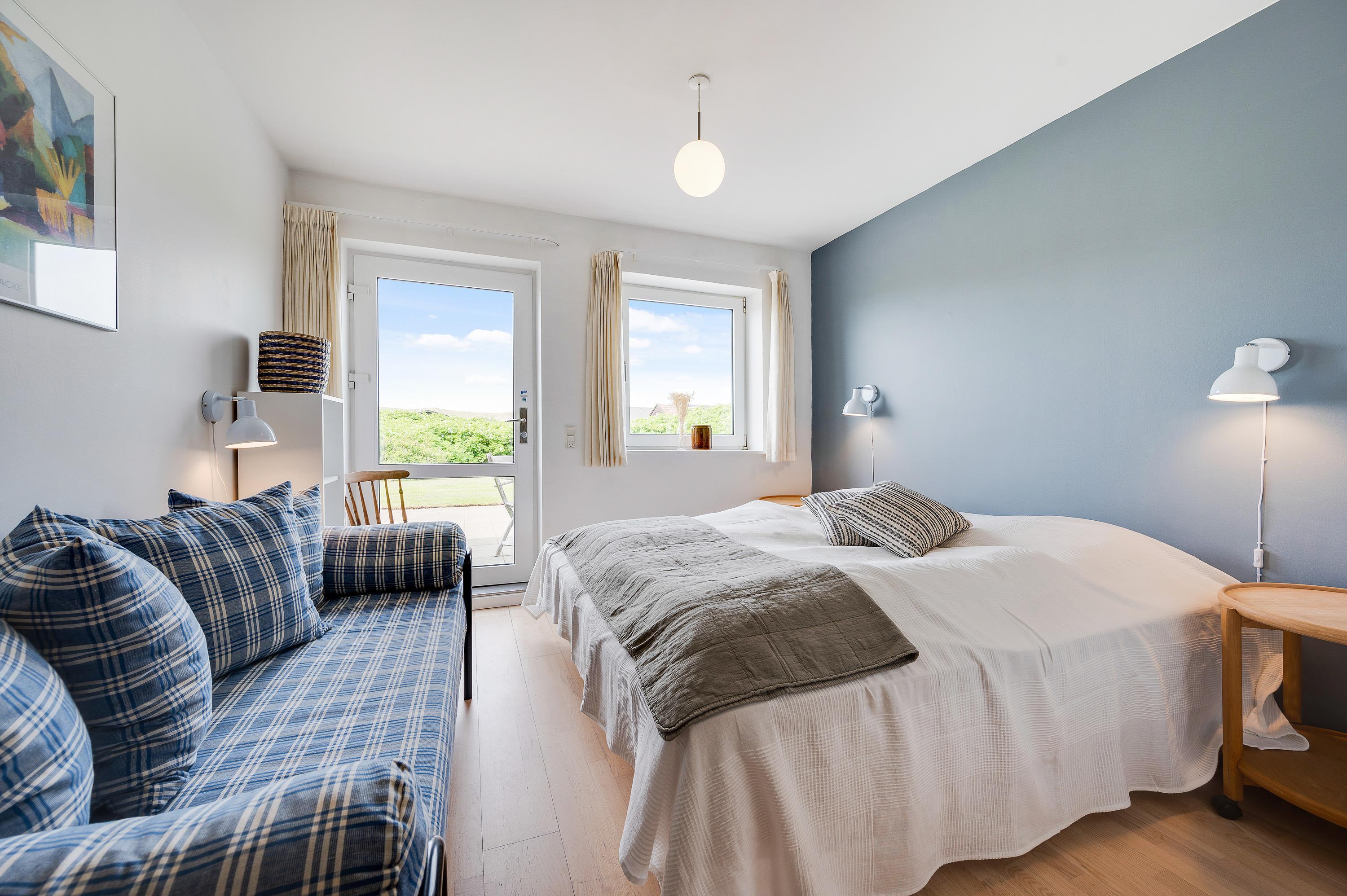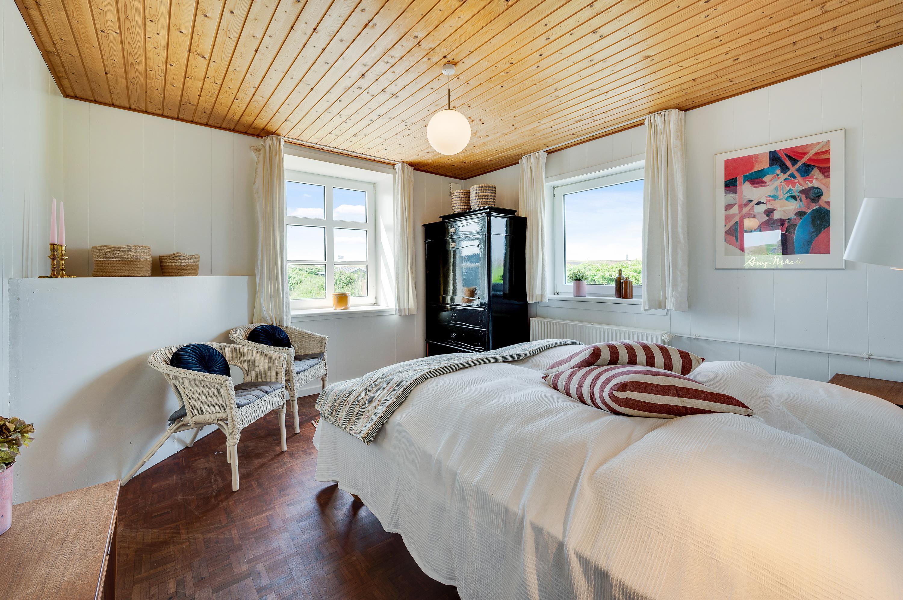 Præstegården på Sønder Klitvej 30 er oplagt til at samle hele familien eller en stor gruppe venner, til en skøn og nærværende ferie ved Vesterhavet. Gården består af i alt 16 soveværelser – 14 dobbeltsenge, 9 enkeltsenge og 1 sovesofa til 1 person.