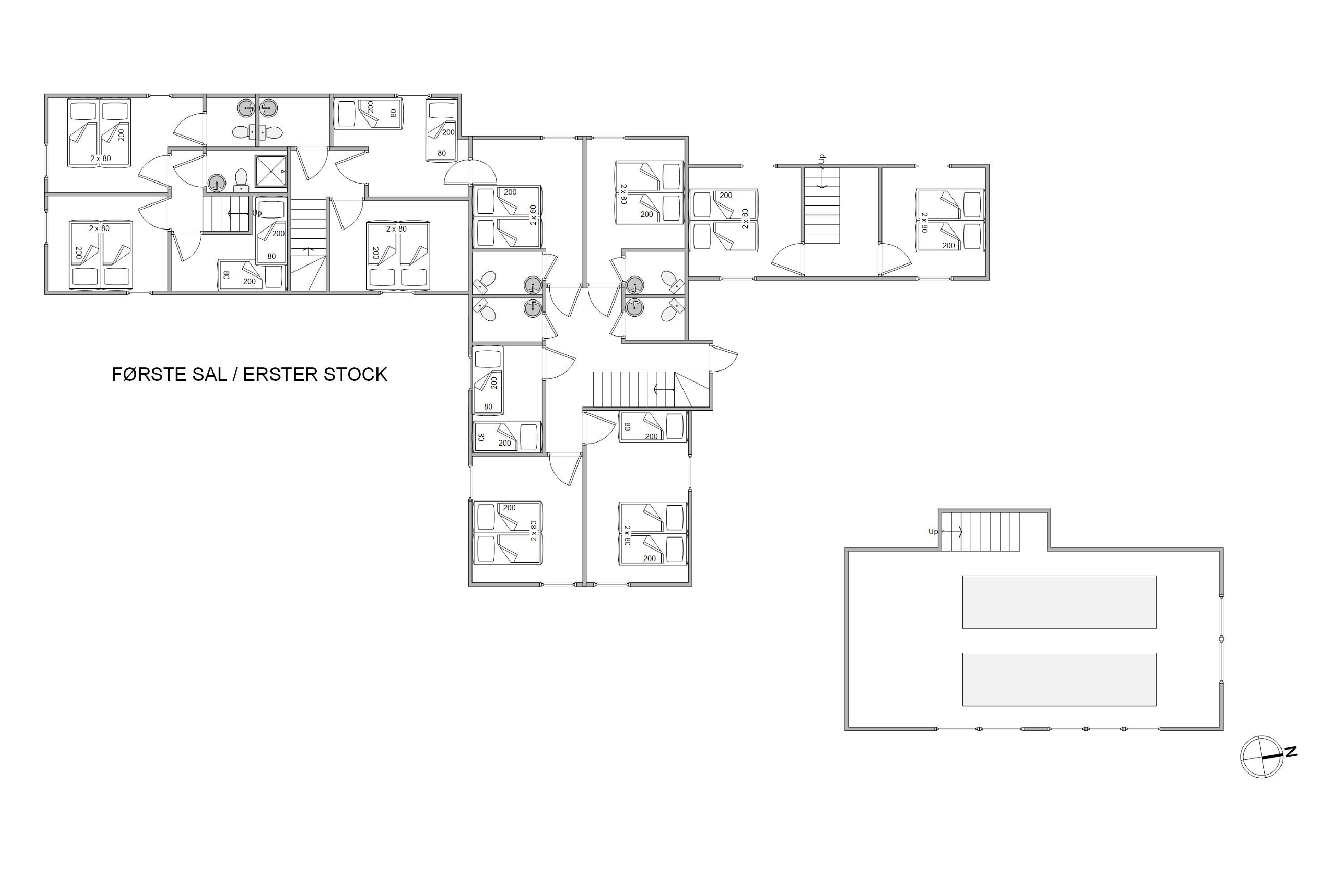 1. soverum/sengestørrelser13 værelser: 2x80x200