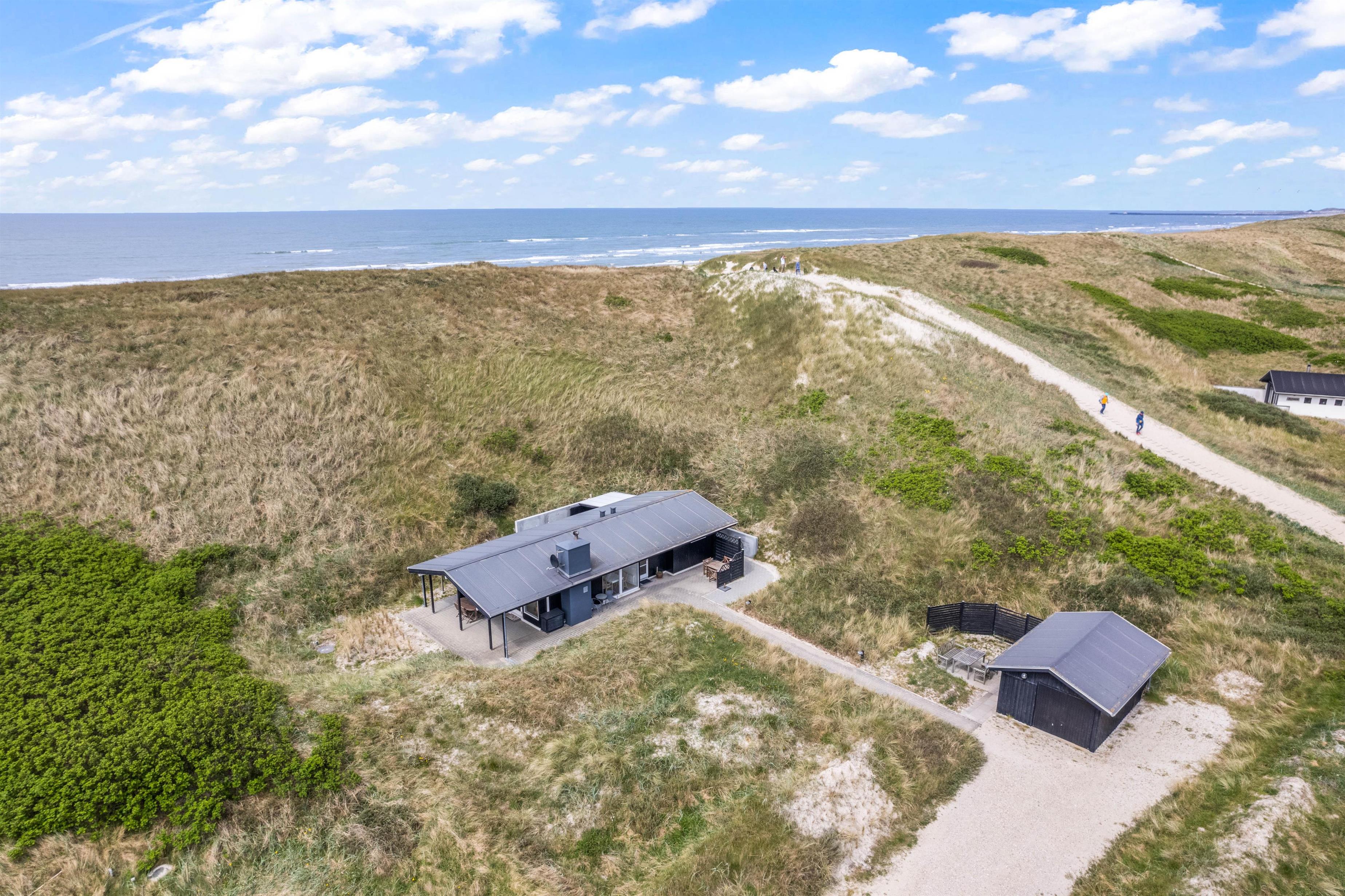Den vestjyske natur er intet mindre end fantastisk, og i dette sommerhus kommer I til at bo midt i smukke og naturskønne omgivelser. Feriehuset ligger midt i klitterne og med en afstand på blot 70 meter til det skønne Vesterhav. En tur i det forfriskende vand er få minutter væk, og fra sommerhusets tre terrasser kan I nyde den afslappende lyd af bølgernes brusen.