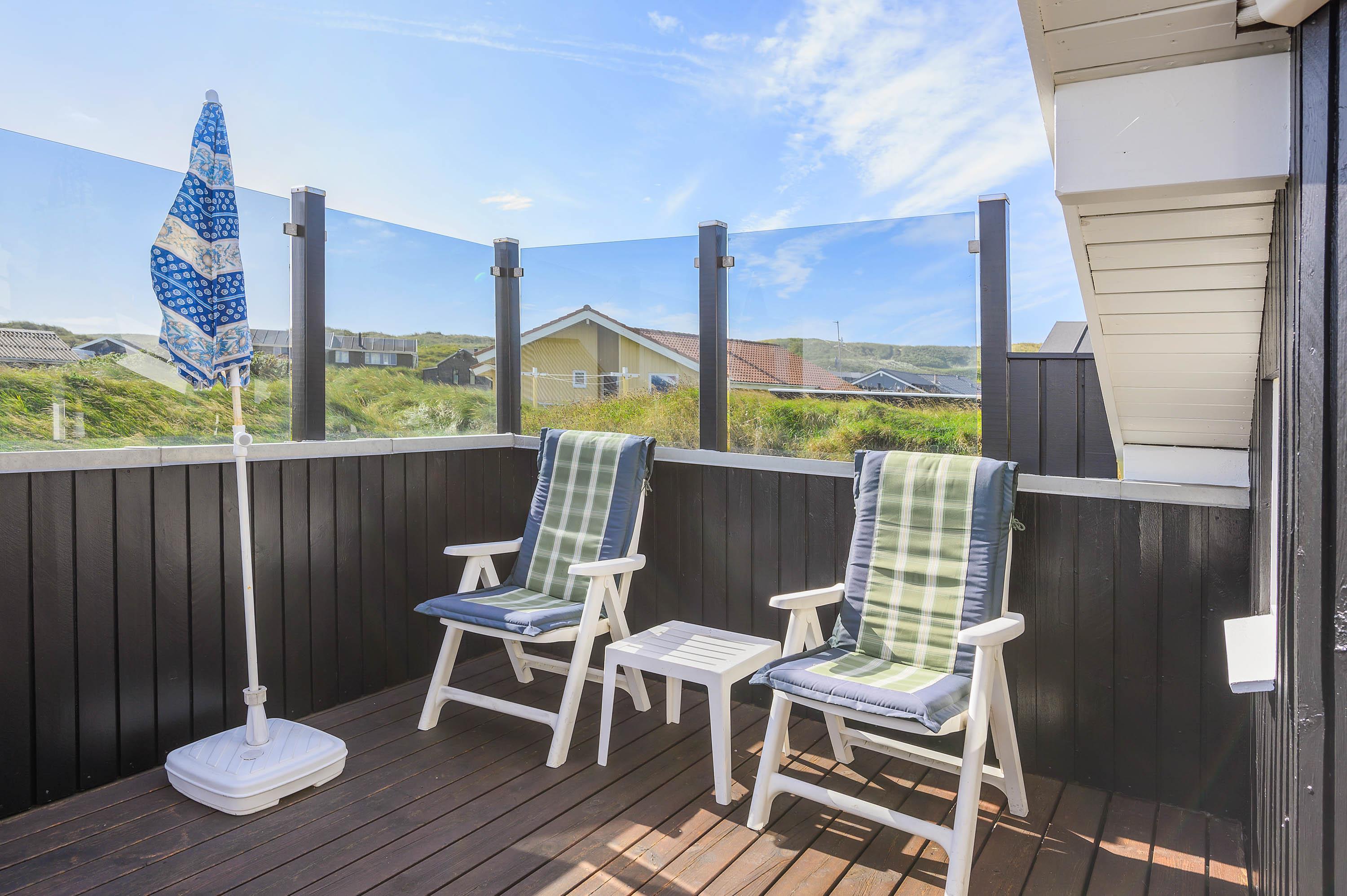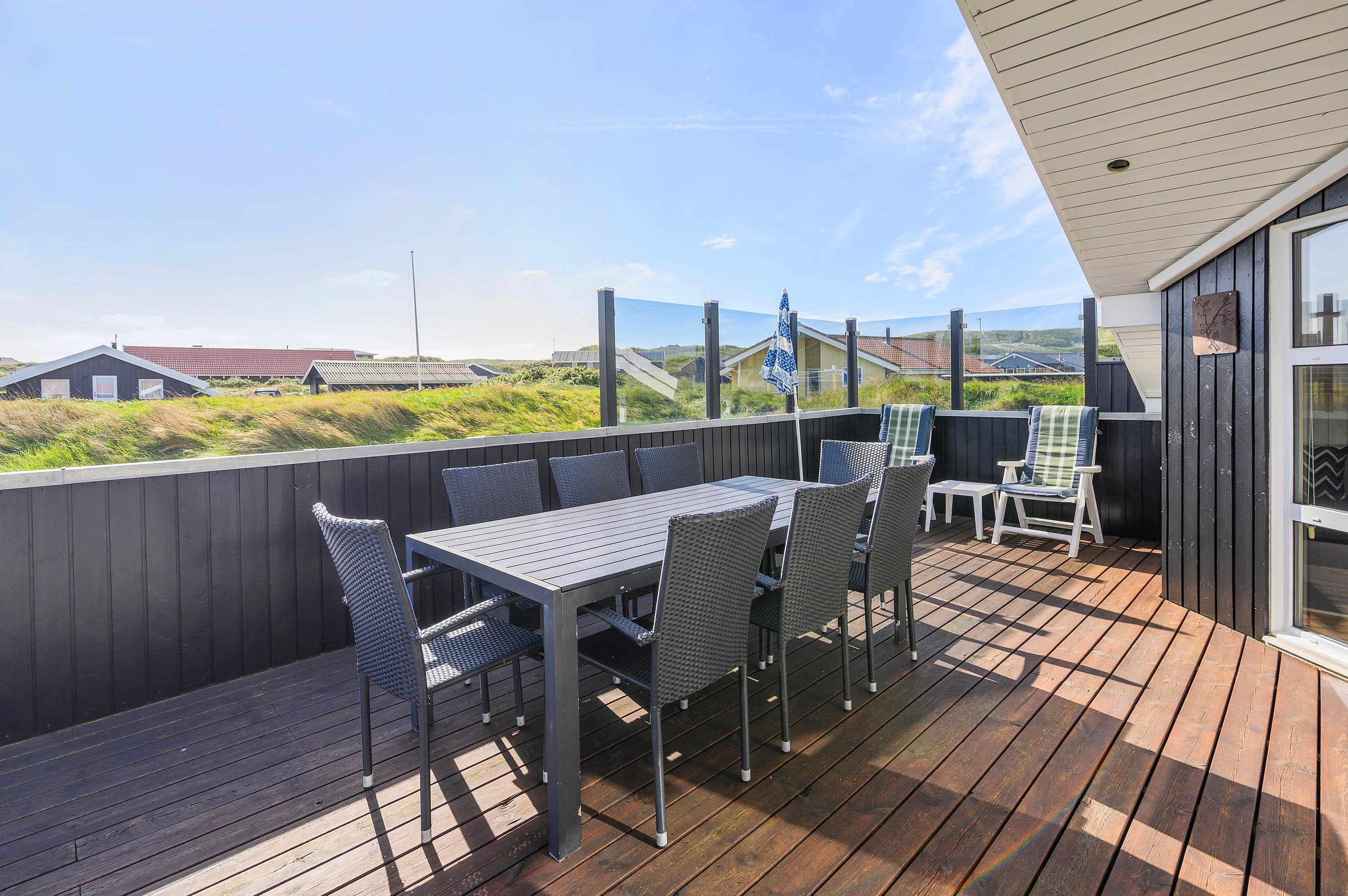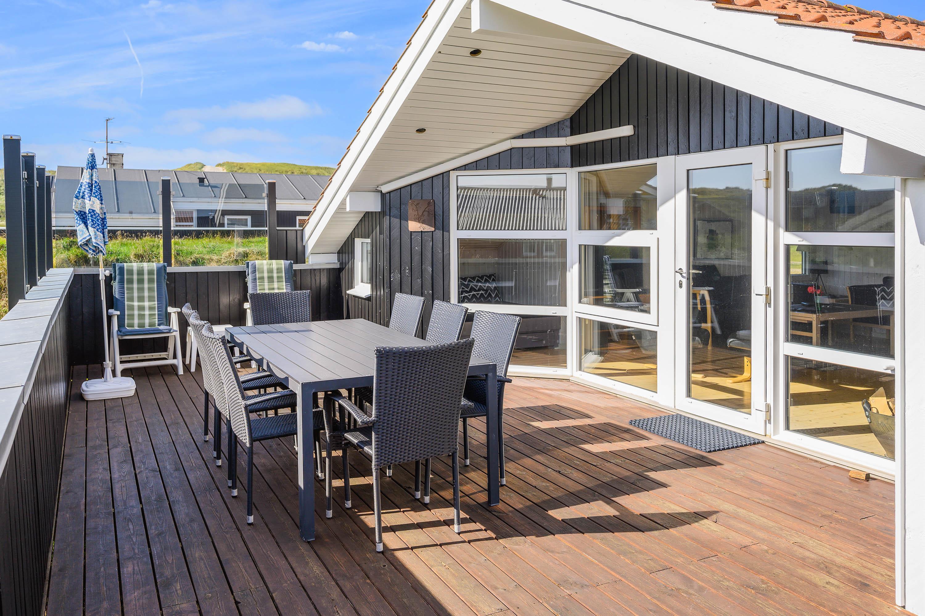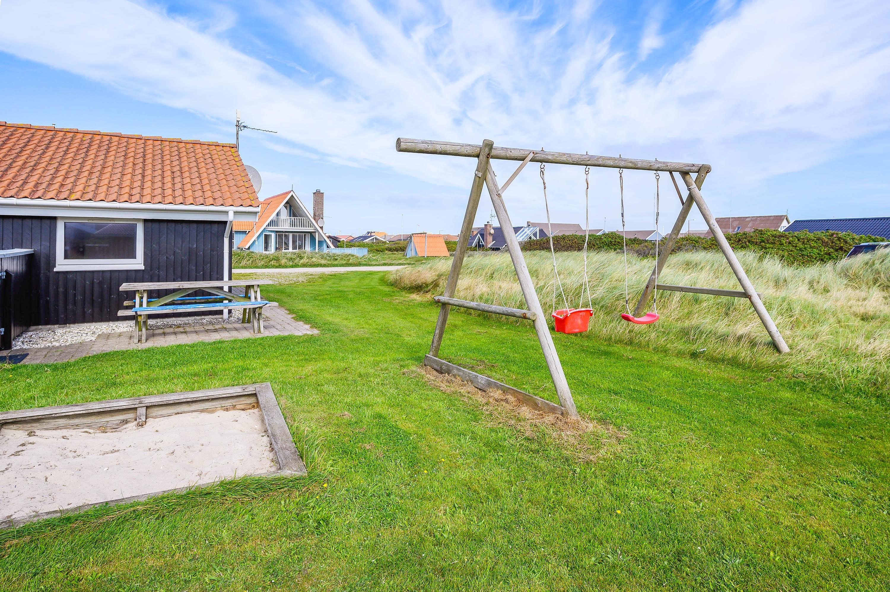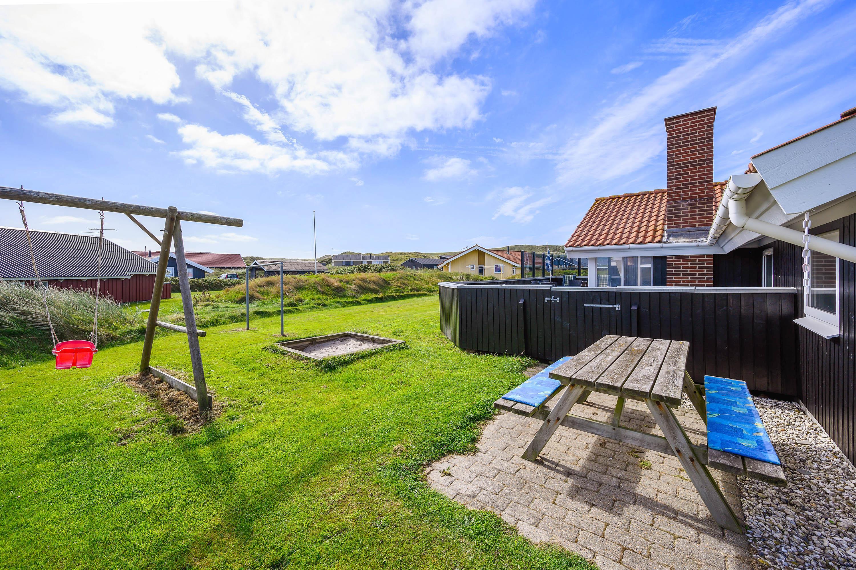 Fra spisestuen er der direkte udgang til husets lukkede terrasse. Her kan I nyde ferien, udelivet og hinanden i fred og ro og uden travlhed. På terrasse har I det fulde overblik over det skønne naturområde, som huset ligger i. I kan samtidig lave aftensmaden på husets grill, og hvis vejret er til det, nyde den på terrassen. Udenfor er der også både sandkasse og gynge, som er ideelt for småbørn, der har behov for at bruge energi udenfor.