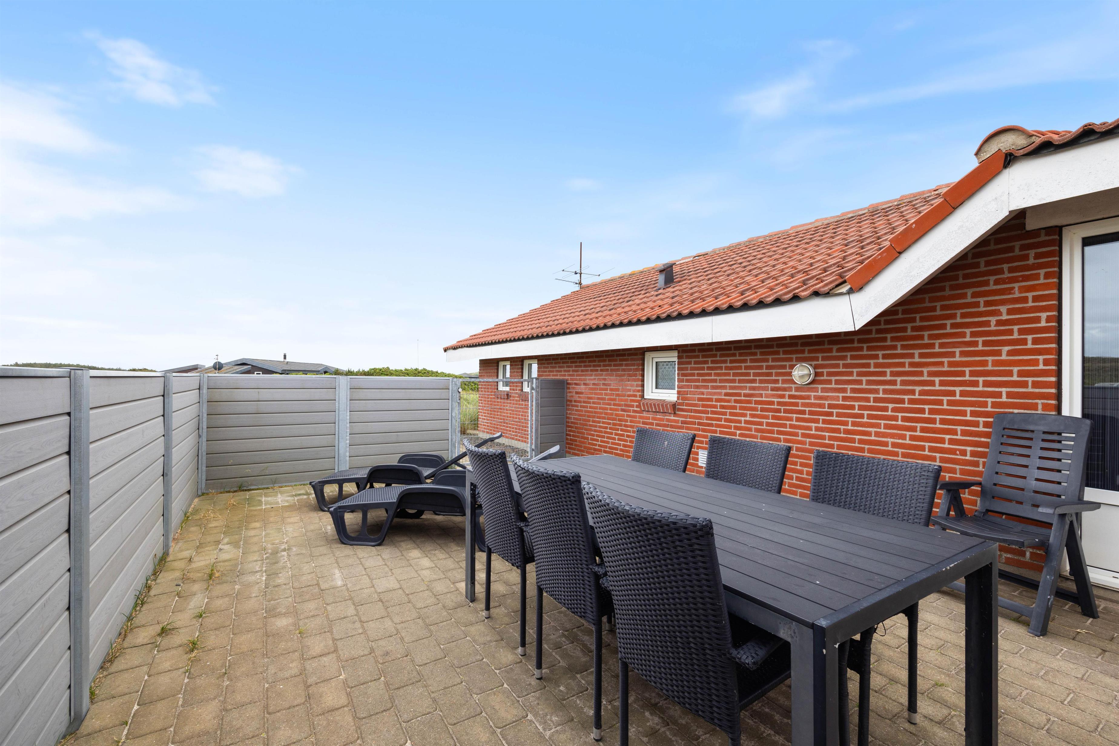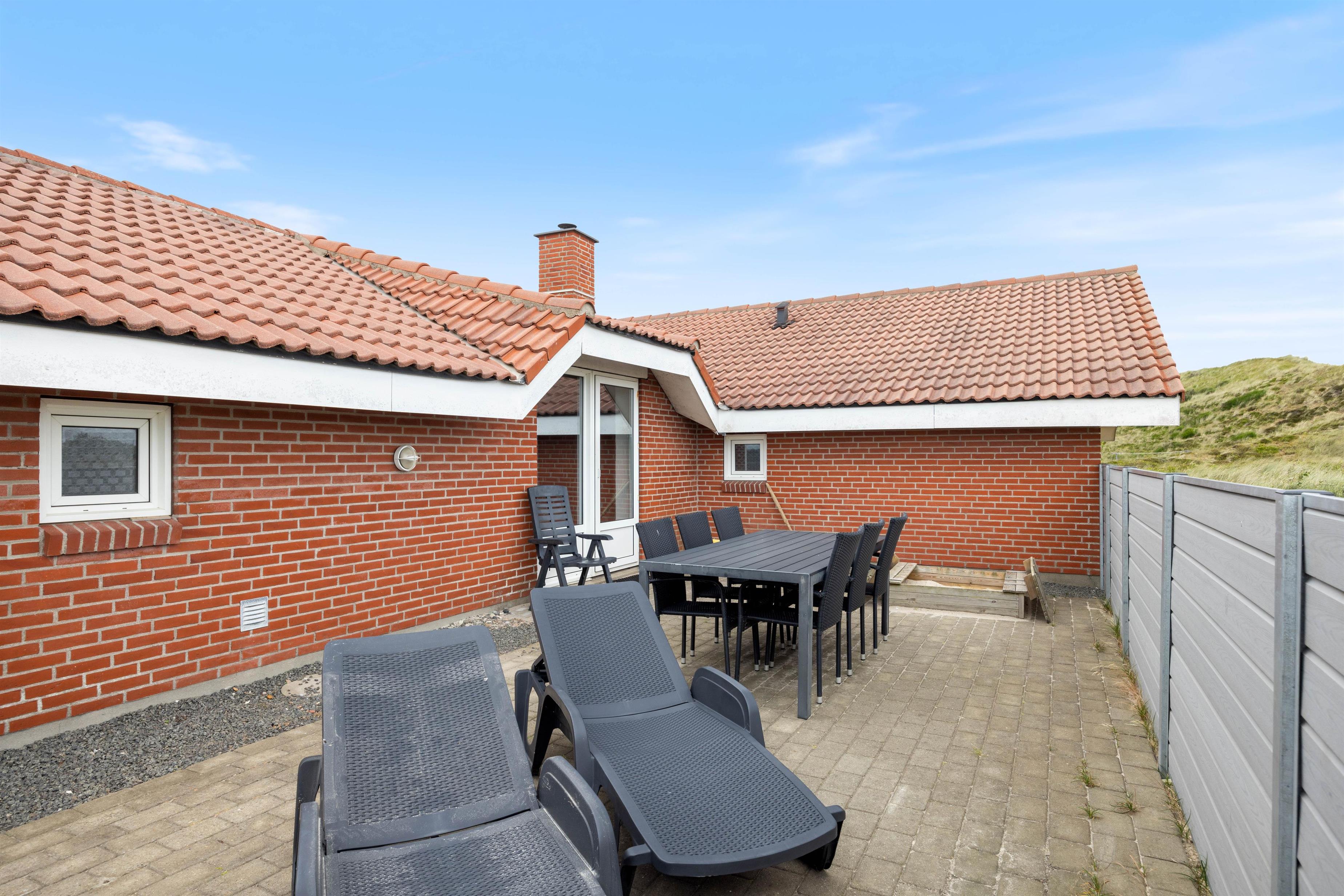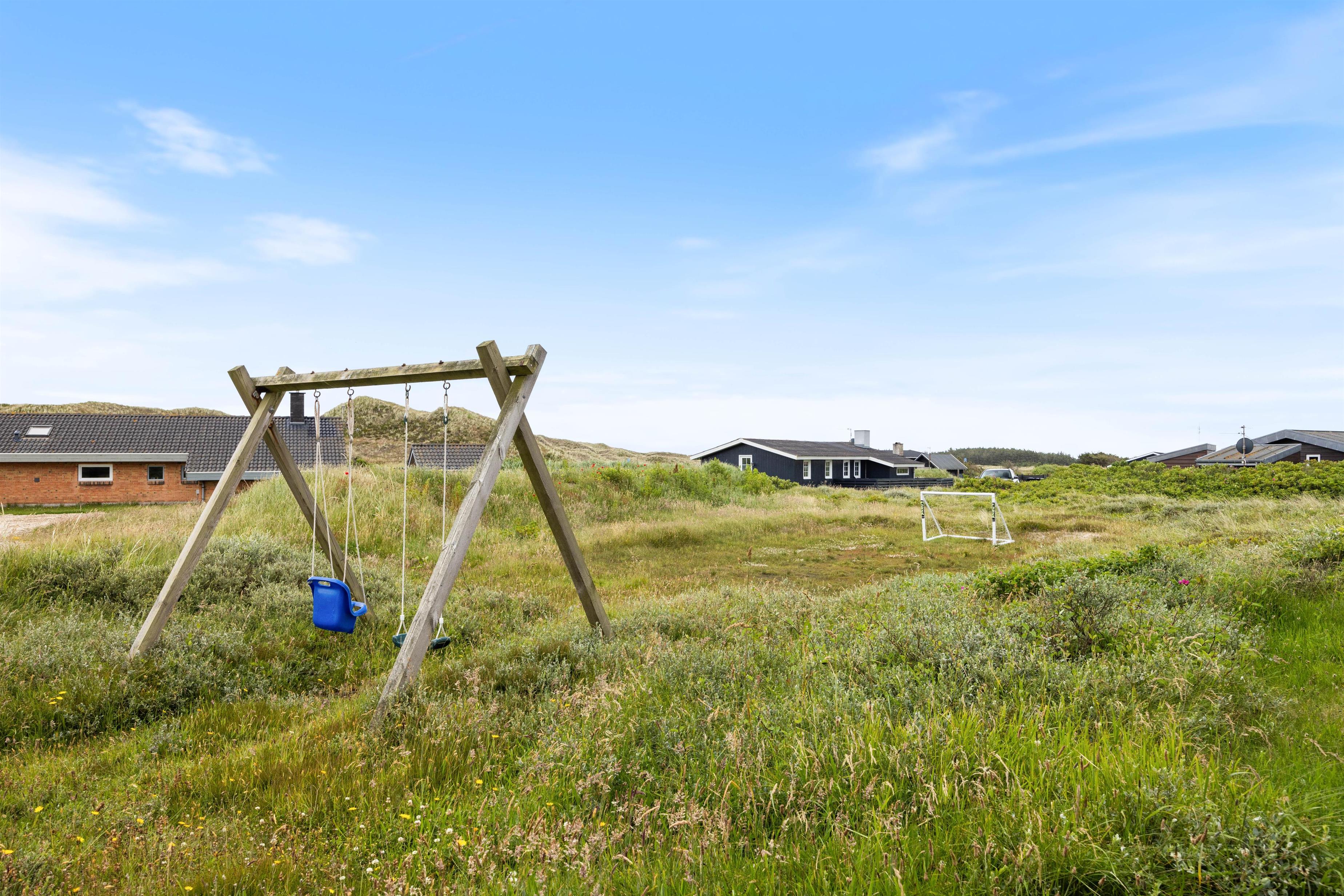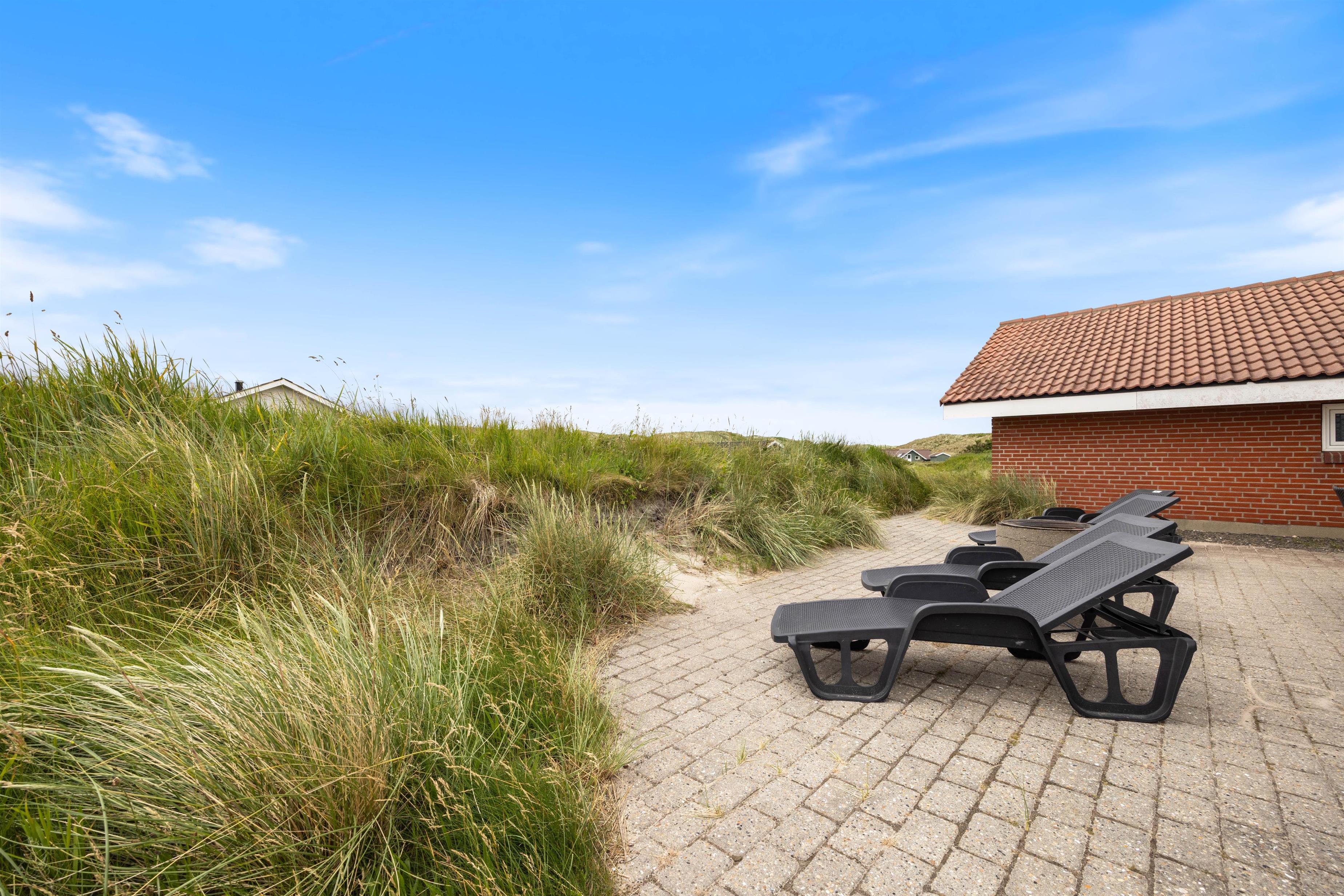 Huset har en virkelig dejlig beliggenhed på en naturgrund i Årgab, kun et par hundrede meter fra den flotte sandstrand. Rundt om huset er der flere terrasser, både afskærmede og lukket, så her kan du altid finde et læfyldt hjørne, hvor du kan slappe af med en god bog eller blot nyde lyden af havet og den salte duft. Terrassen har havemøbler, liggestole og grill. Når ungerne bliver trætte af swimmingpoolen, kan de muntre sig i sandkassen eller på gyngen.