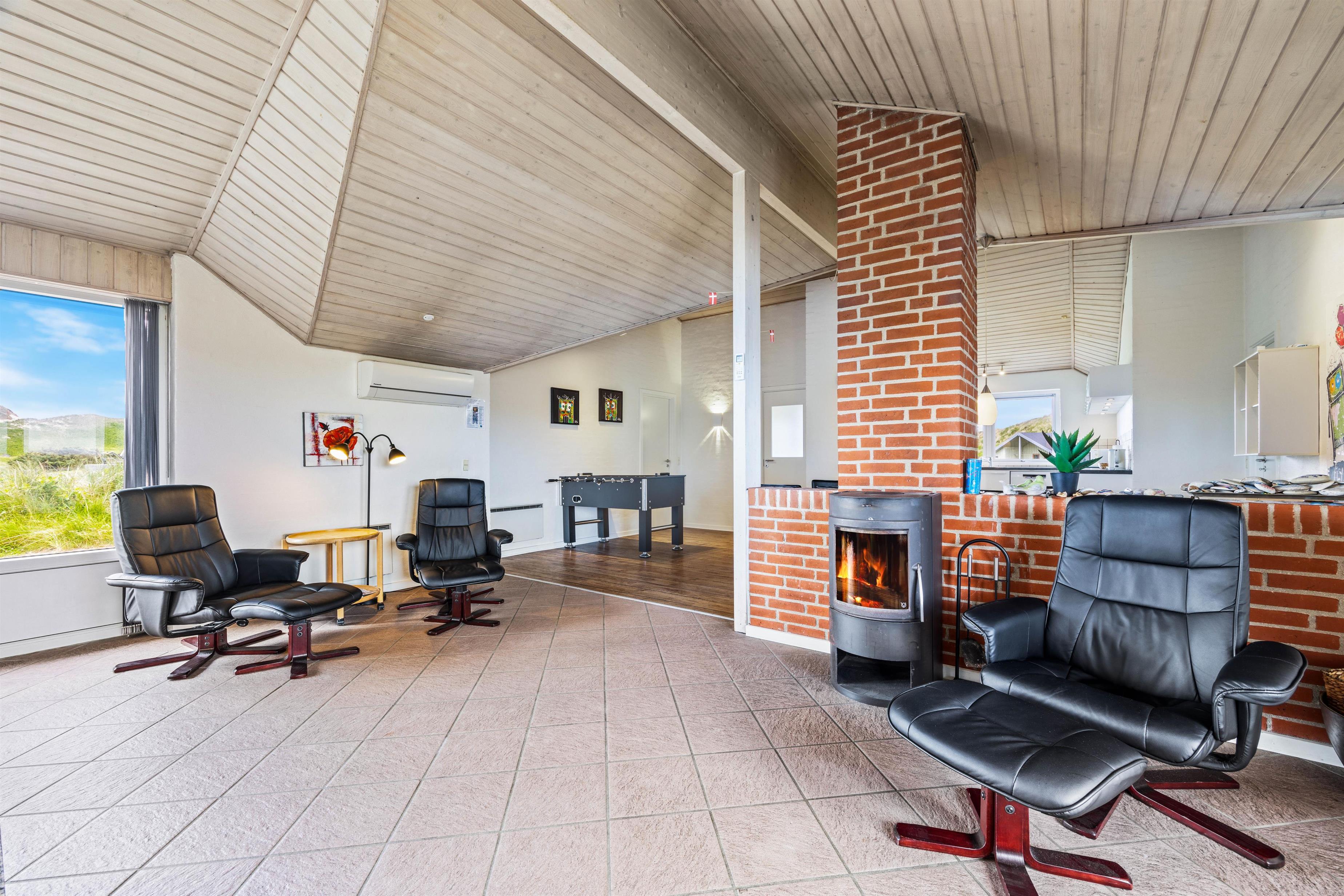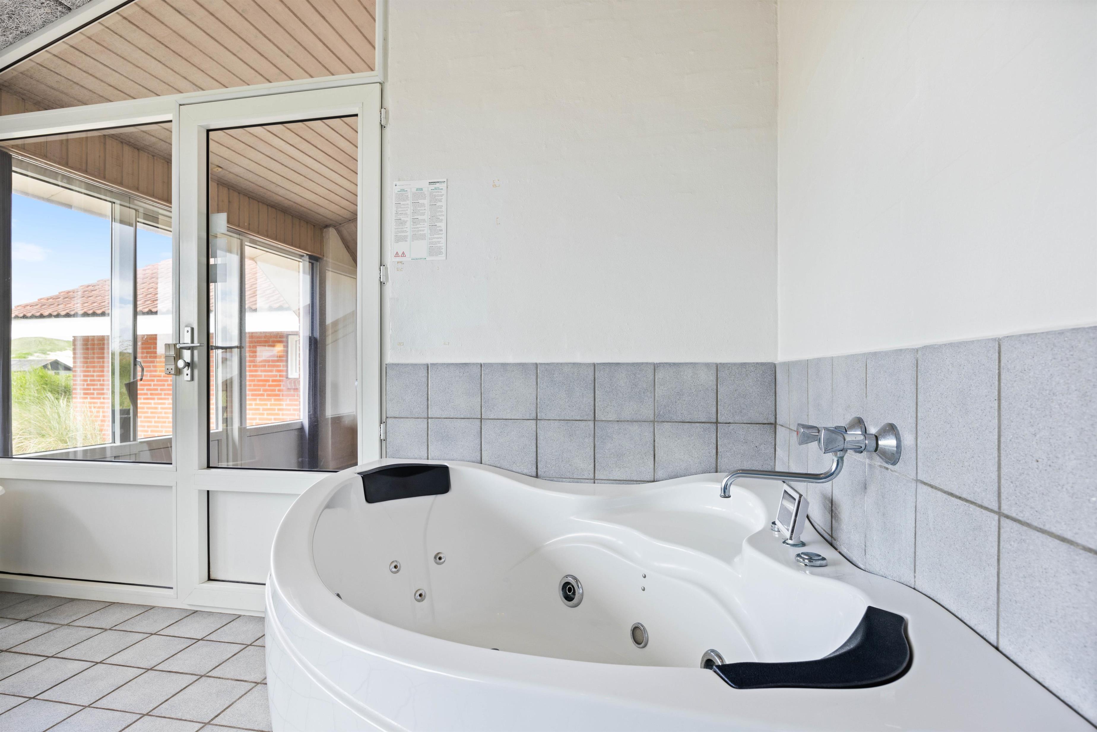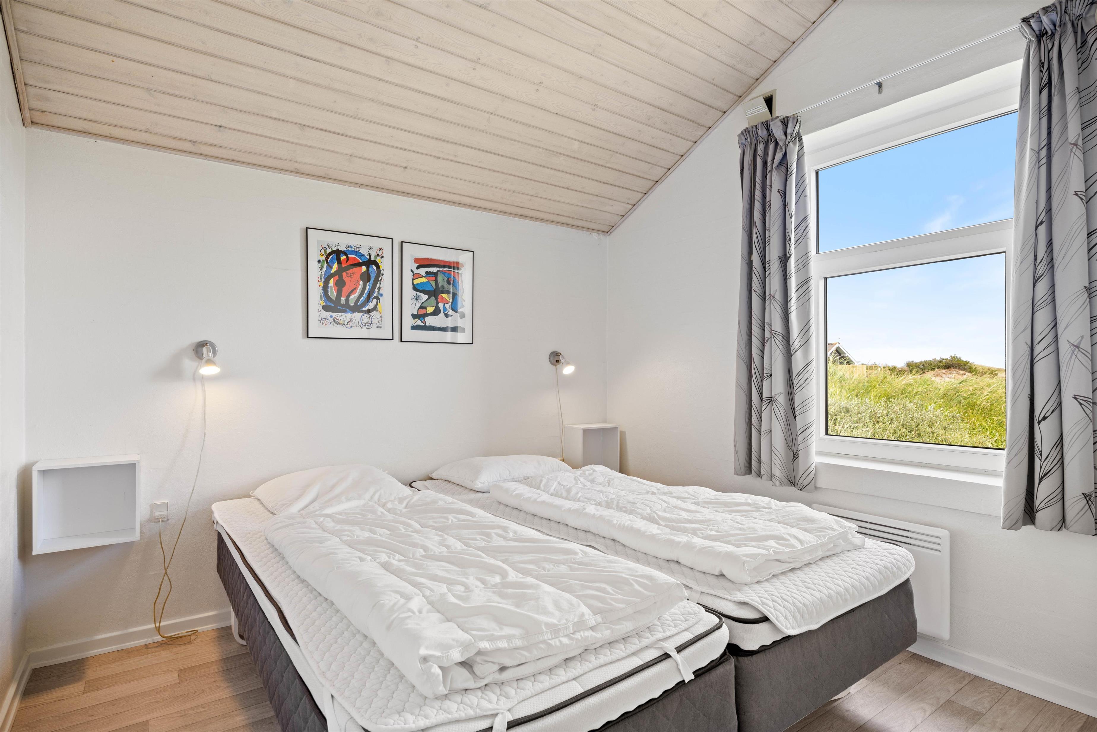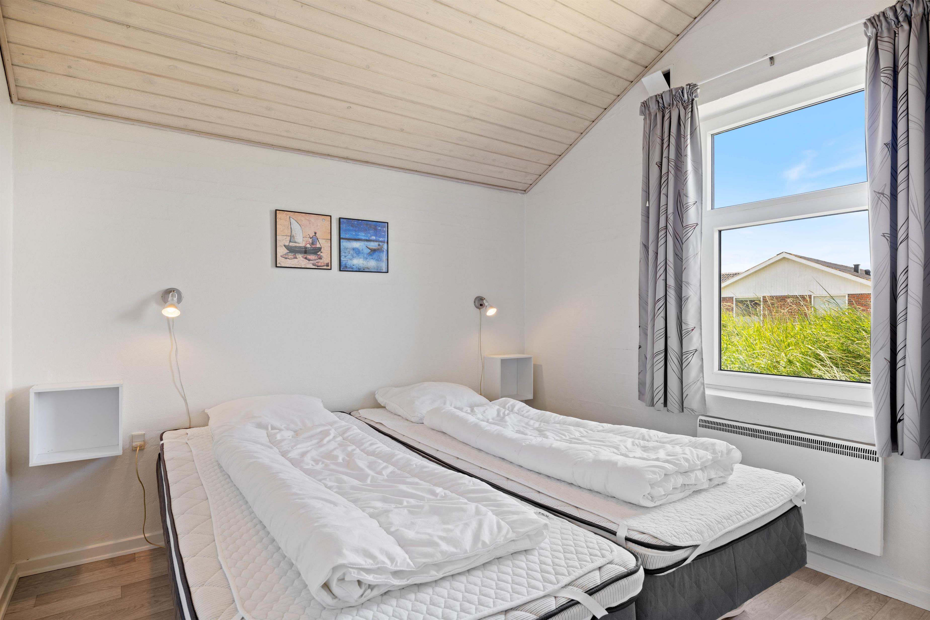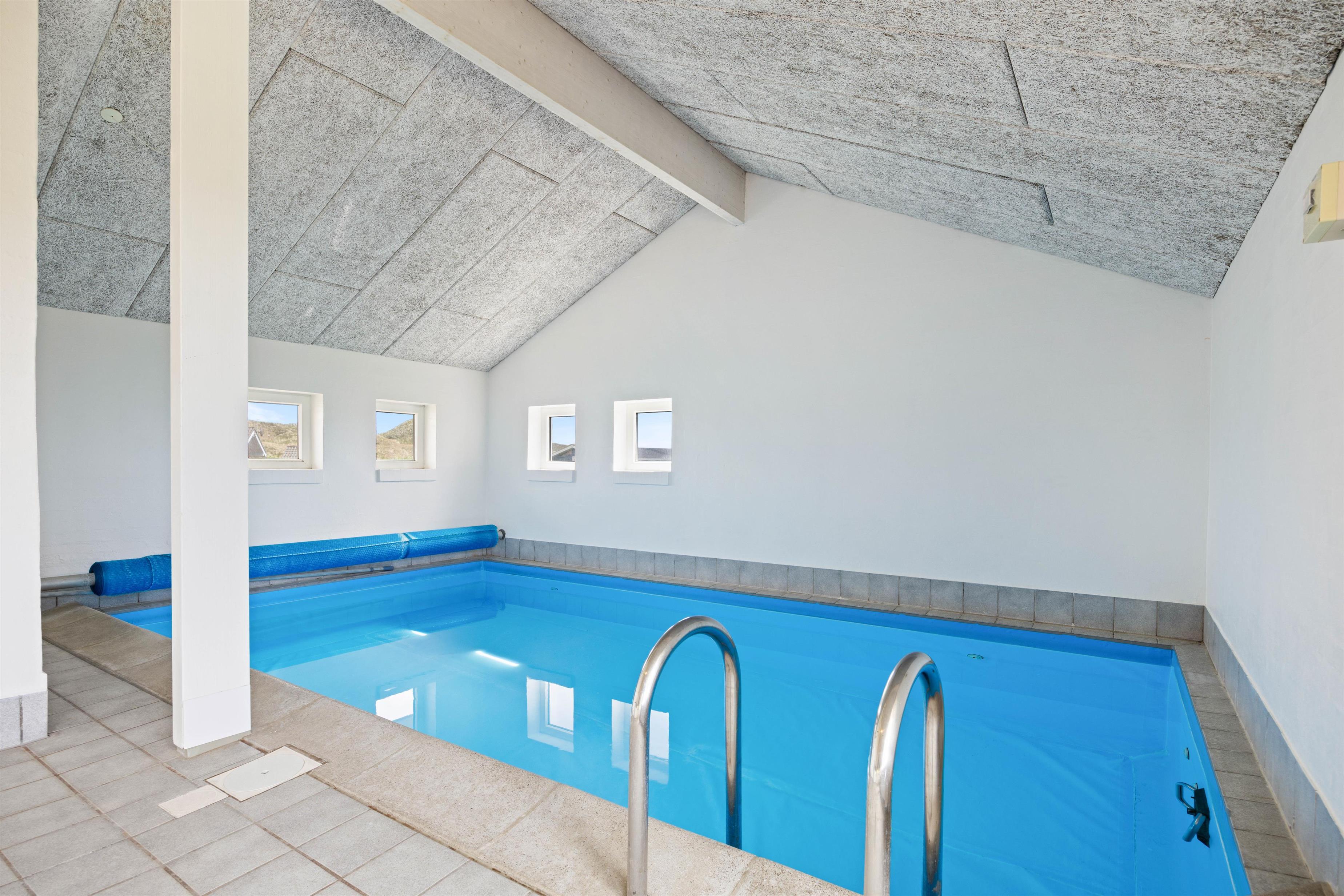 Et virkeligt dejligt og rummeligt luksus sommerhus med swimmingpool til hele 12 personer. Husets hjerte er den store opholdsstue, som står i åben forbindelse med det rummelige køkken, der er indrettet med alt i hårde hvidevarer, Stuen er flot møbleret med bla. bordfodbold og herfra er der adgang til husets aktivitetsafdeling, hvor der er 18 m2 swimmingpool med modstrømsanlæg, boblebad og adgang til sauna. Der er to soveafdelinger i huset, begge med eget badeværelse. Soveværelserne er alle indrettet med boksmadrasser. Her er endvidere gratis trådløst internet i huset.