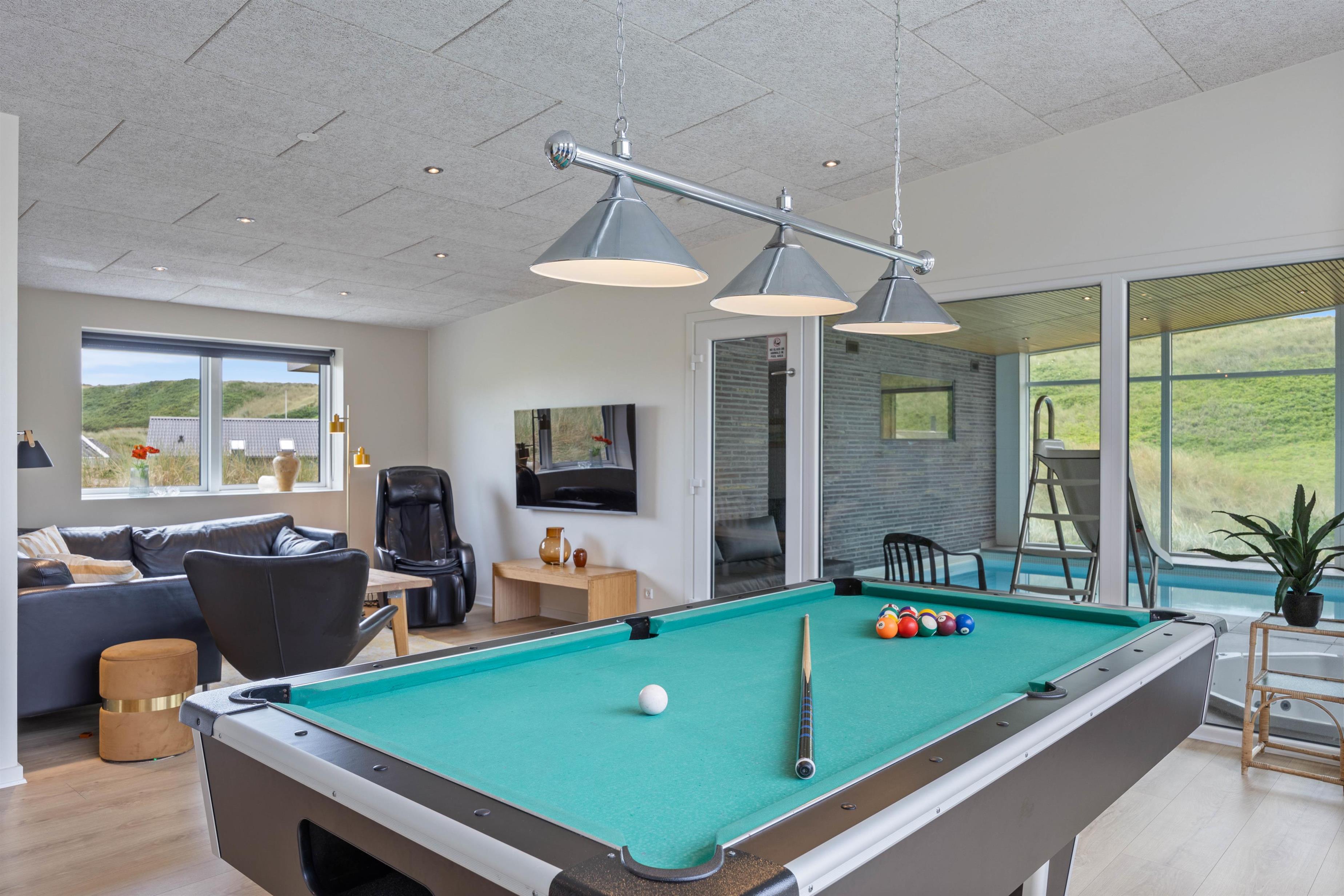 Efter en tur i poolen kan I tage et spil billard eller hygge jer i sofahjørnet i aktivitetsrummet. Servér eftermiddagsdrinks fra baren og nyd hinandens selskab.