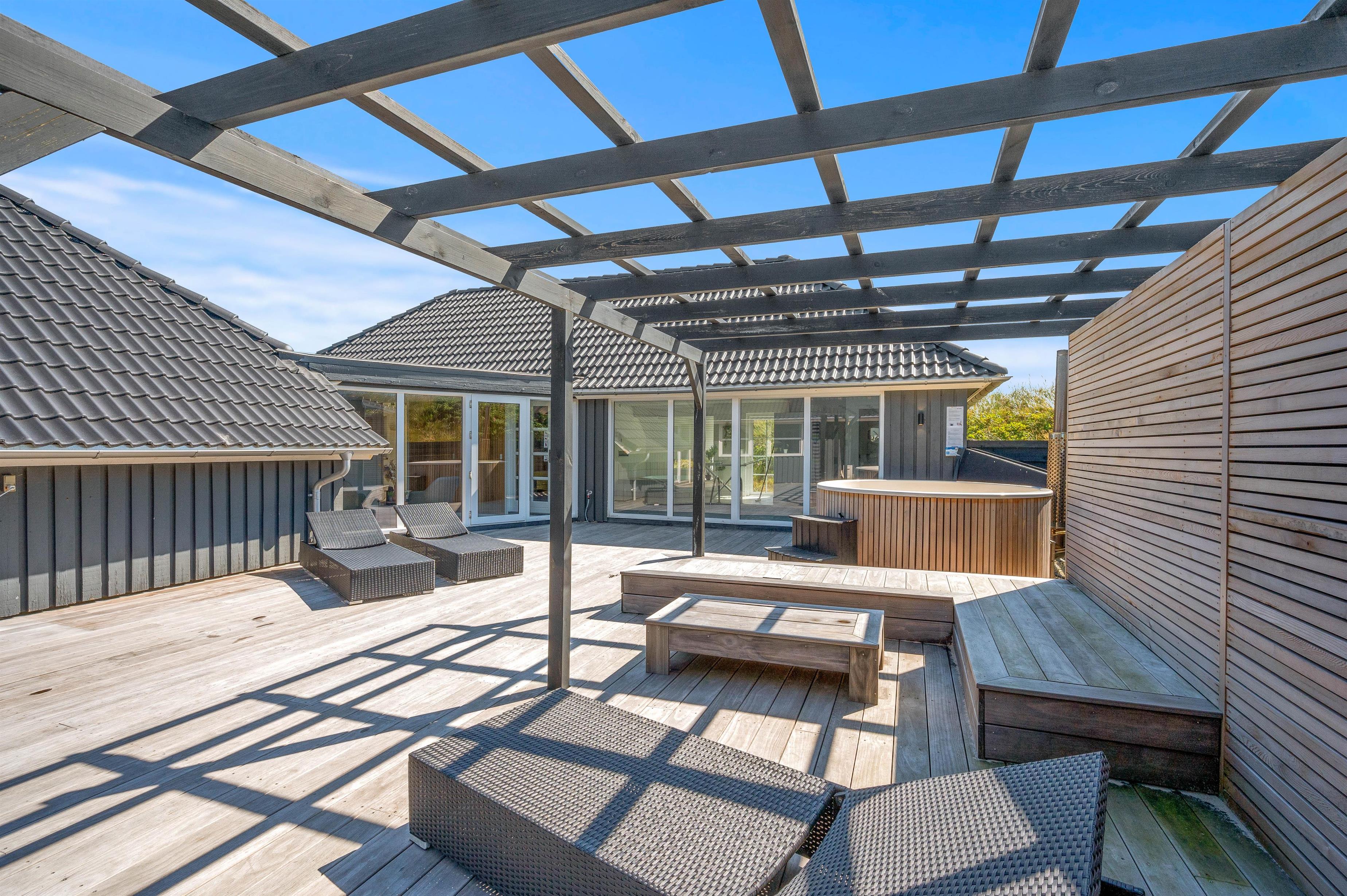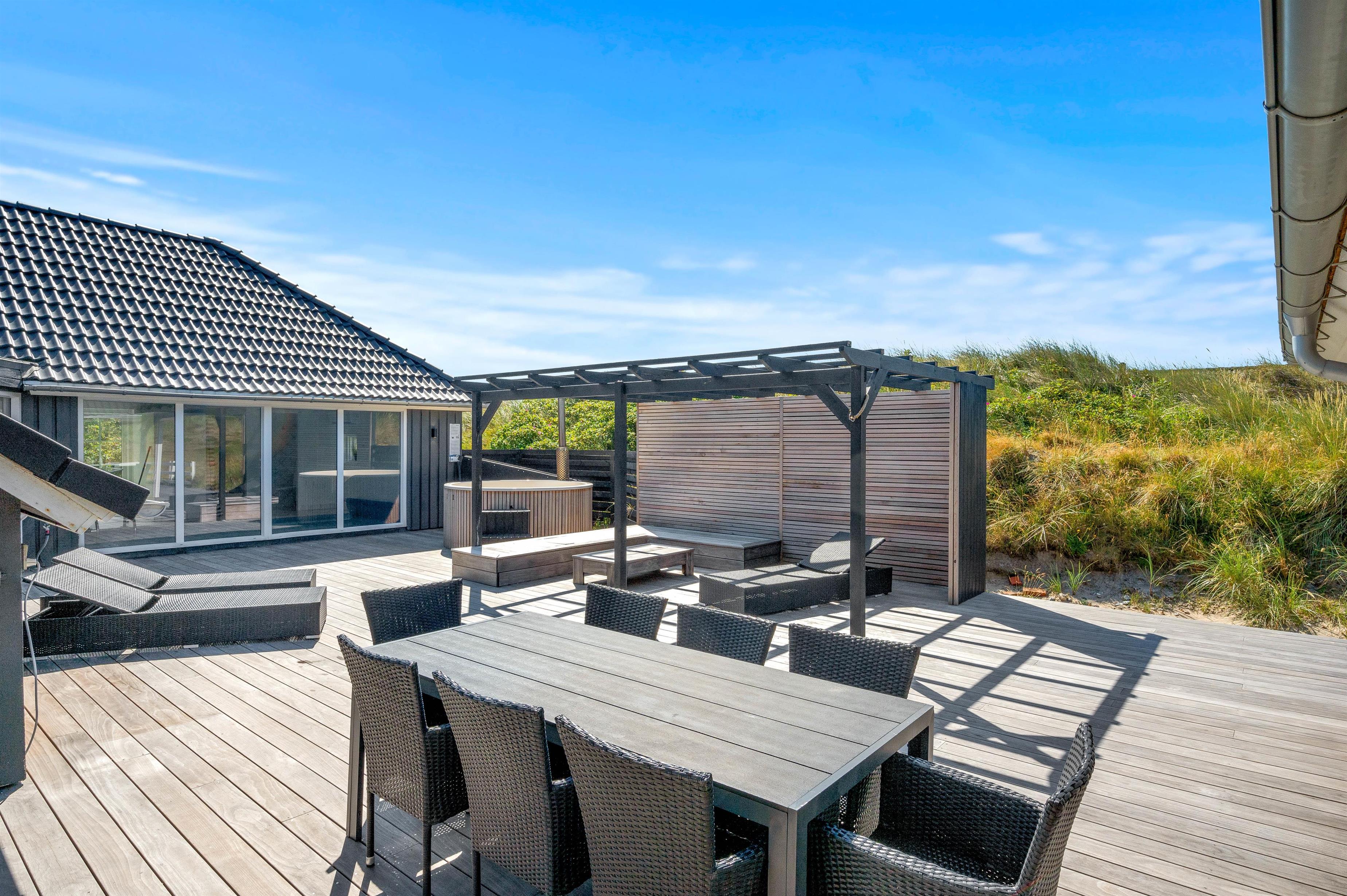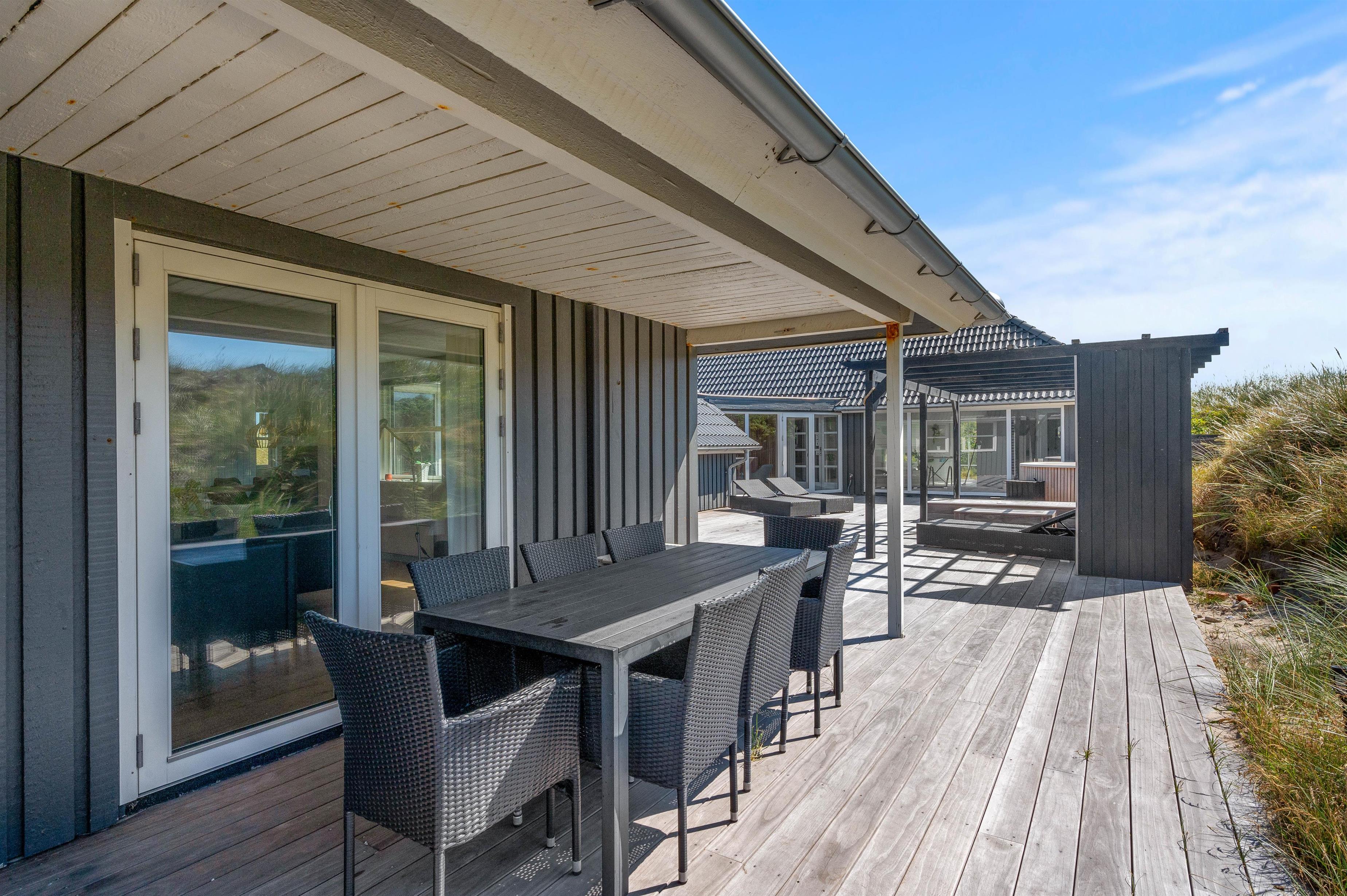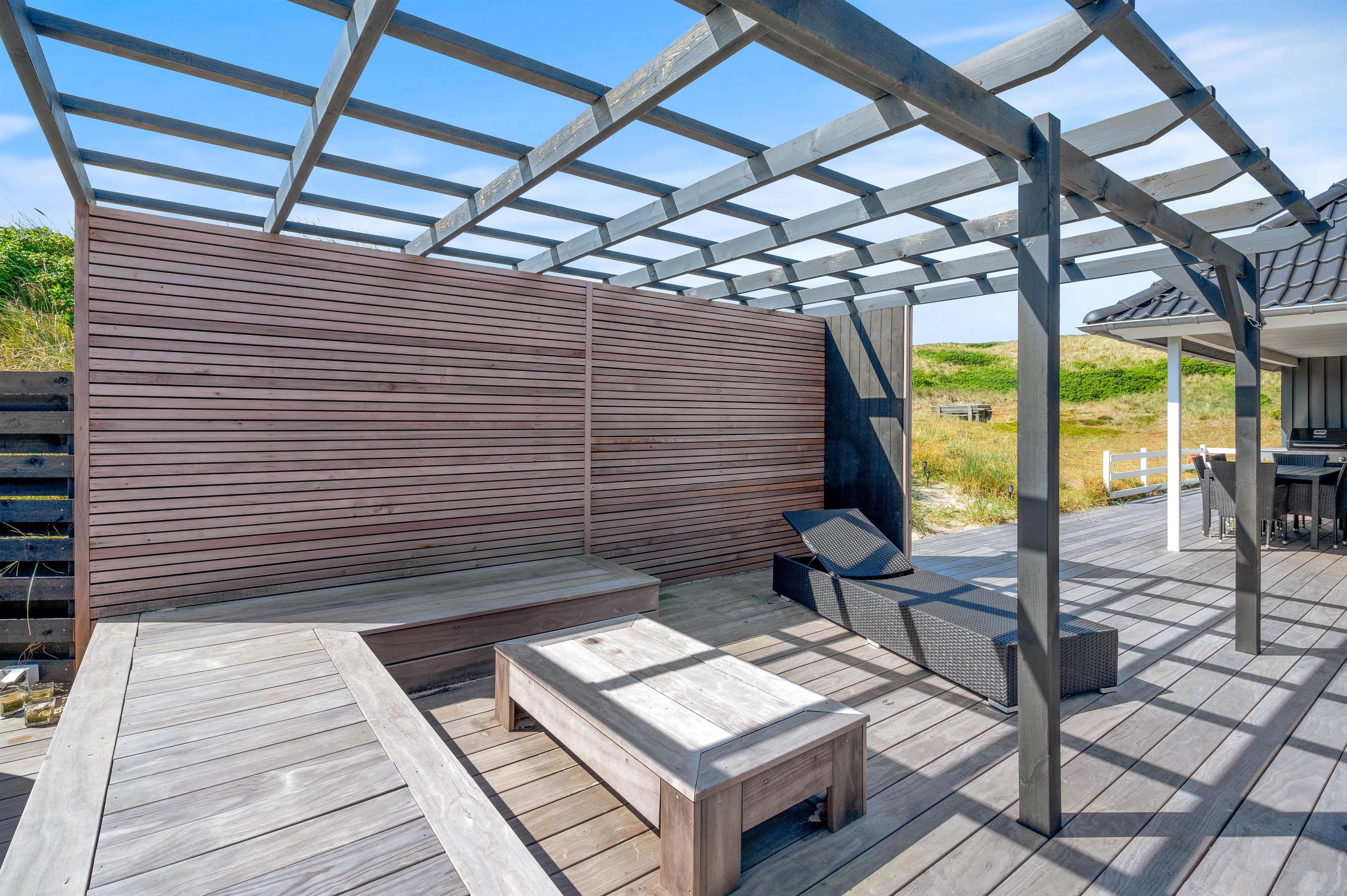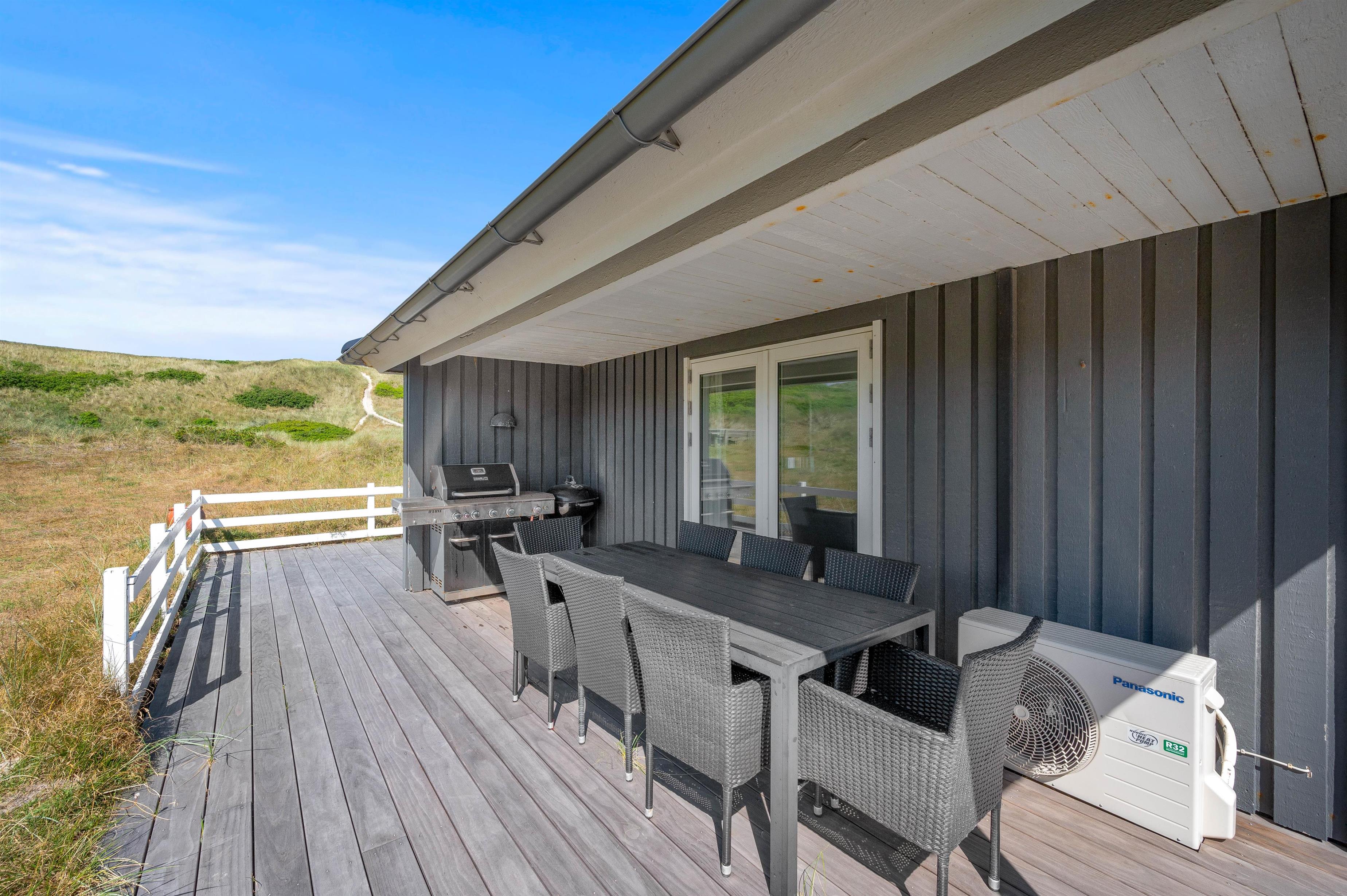 Sommerhuset har en stor og afskærmet terrasse, som I vil kunne nyde i flere timer. I tilfælde af alle slags vejr, er der tænkt på en måde, hvor I stadig kan nyde den skønne vestjyske natur.