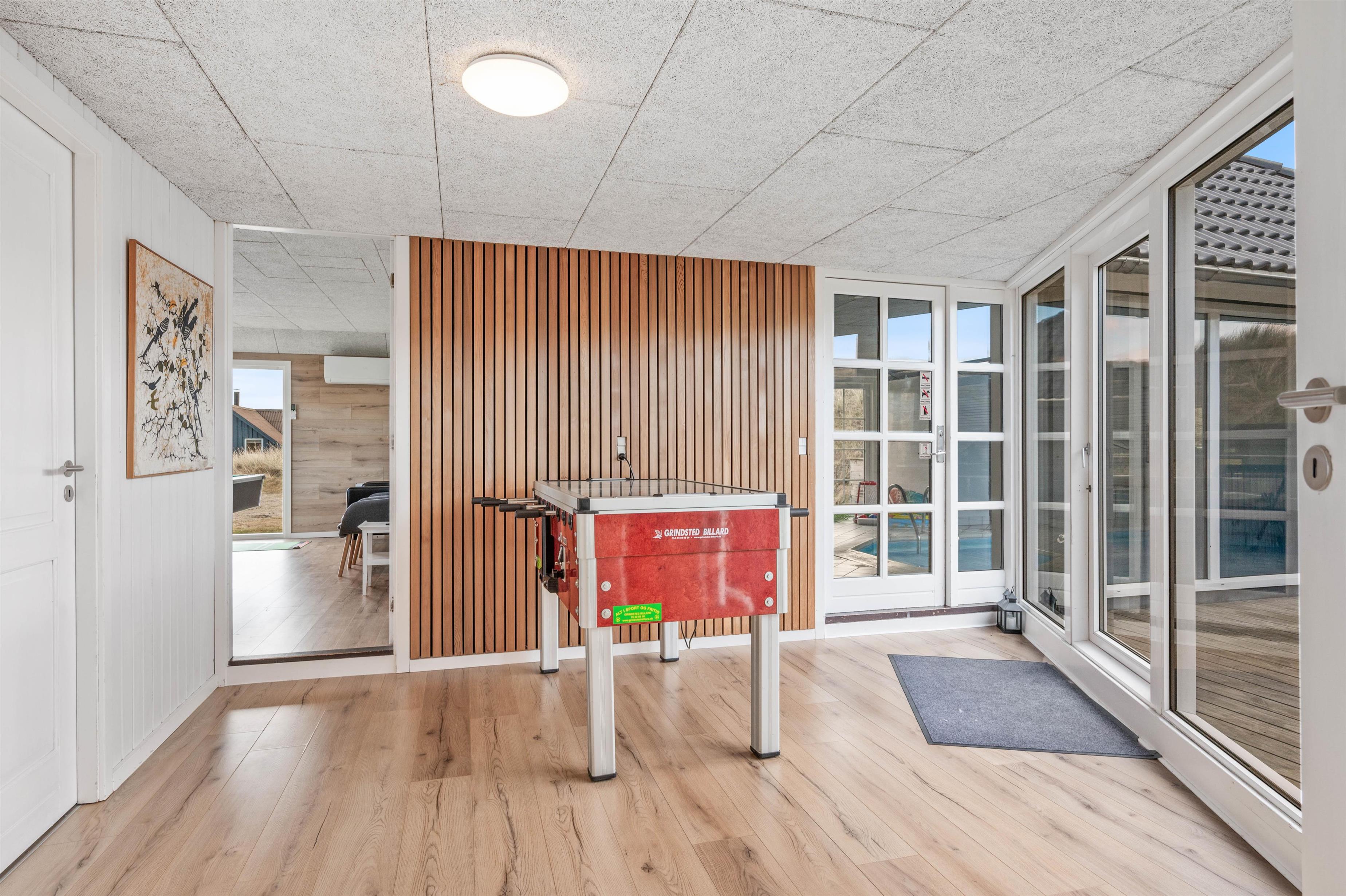 Træd ind i dette sommerhus’ omdrejningspunkt, et fantastisk poolområde. Her kan I få rigtig mange timer til at gå, og en pool er jo altid et hit blandt børnene. Mens børnene leger i poolen, kan I som forældre koble helt af. Sæt jer i den rummelige indendørsspa efterfulgt af en tur i saunaen, som har ruder til poolrummet.