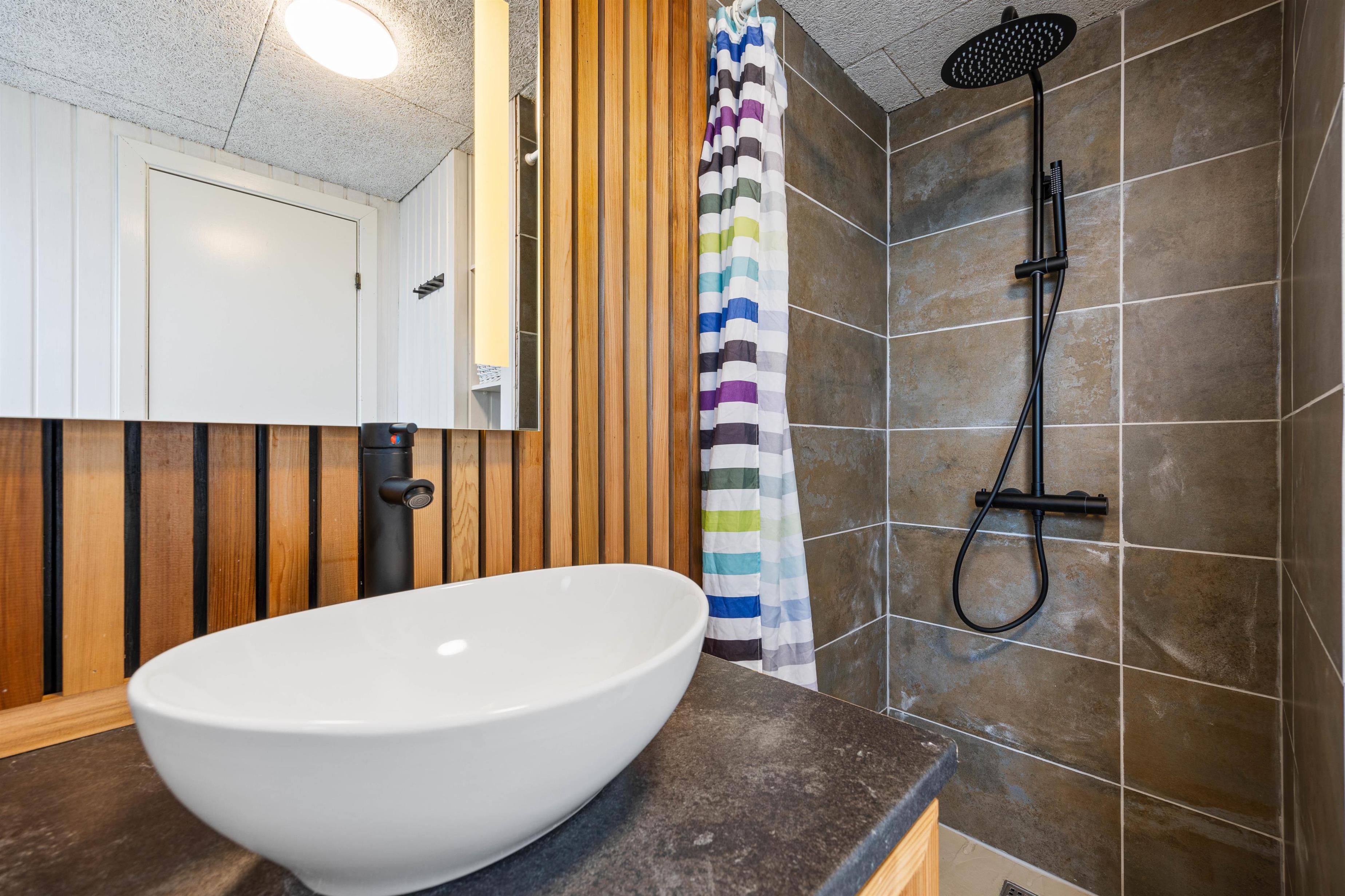 Sommerhuset rummer 3 badeværelser, så I slipper for kø foran badeværelserne om morgenen. Det ene badeværelse findes i poolrummet, hvilket gør det let tilgængeligt for vandhundene.