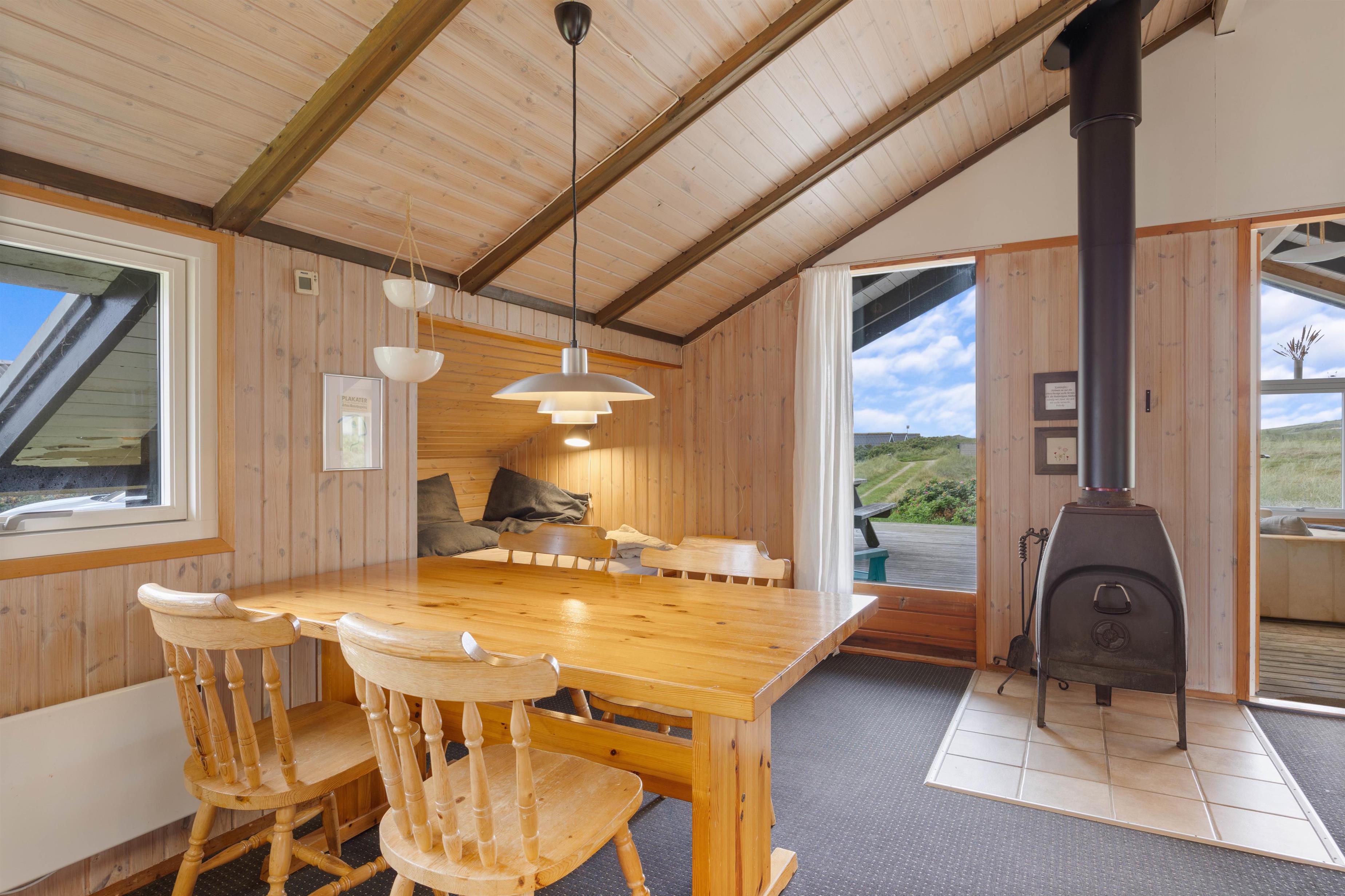 Her finder I også det skønne sofaområde, hvor I kan streame jeres yndlings serie og film på husets Apple tv. På de lidt køligere dag kan i også sætte jer godt tilrette i møblerne og nyde den skønne varme som brændeovnen afgiver. I stuen møder I også en lille hyggekrog, hvor man eventuelt kan få en middagslur, men stadig være en del af fællesskabet.