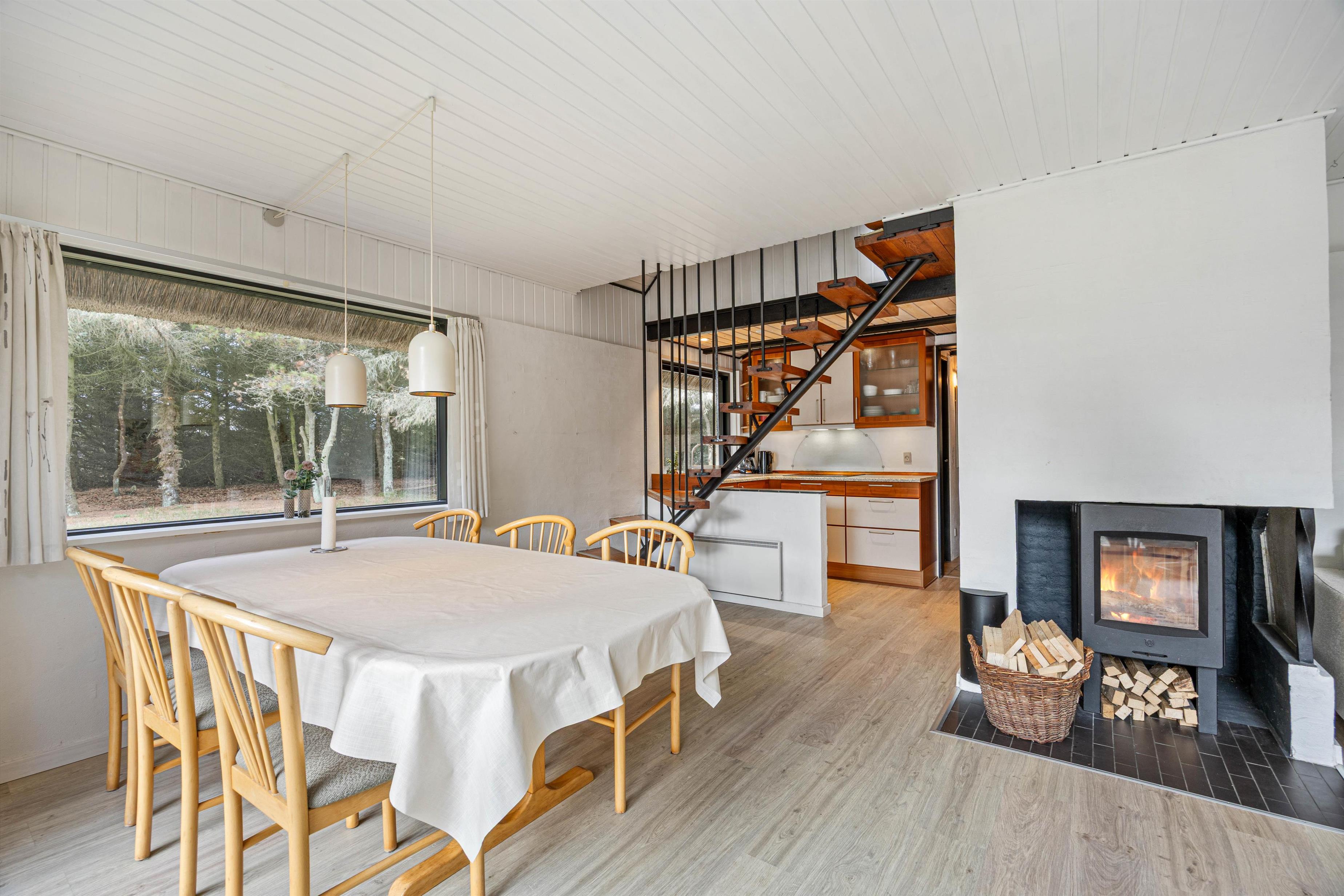 Dette sommerhus byder på en varm og hyggelig atmosfære, hvor brændeovnen i stuen er samlingspunktet efter en frisk gåtur ved havet. Udover brændeovnen er der også en varmepumpe, som sørger for en dejlig temperatur året rundt. I køkkenet kan I tilberede dagens måltider, mens resten af familien hygger sig ved spisebordet. I skal ikke bruge lang tid på opvasken efter aftensmaden, da sommerhuset er udstyret med en opvaskemaskine.