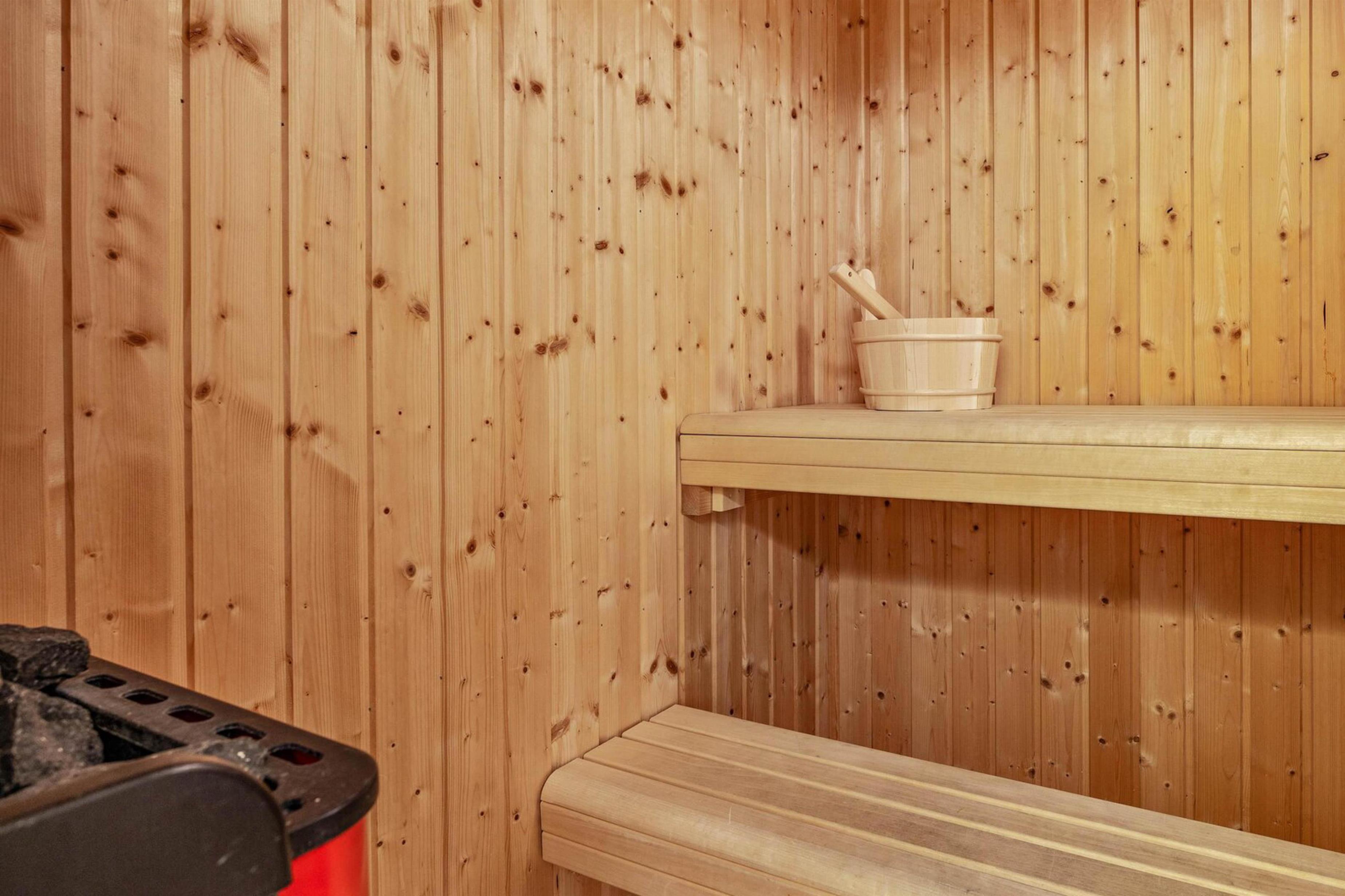 Efter en dejlig dag kan I forkæle jer selv med en afslappende stund i saunaen eller nyde de varme bobler i den udendørs spa under åben himmel.
