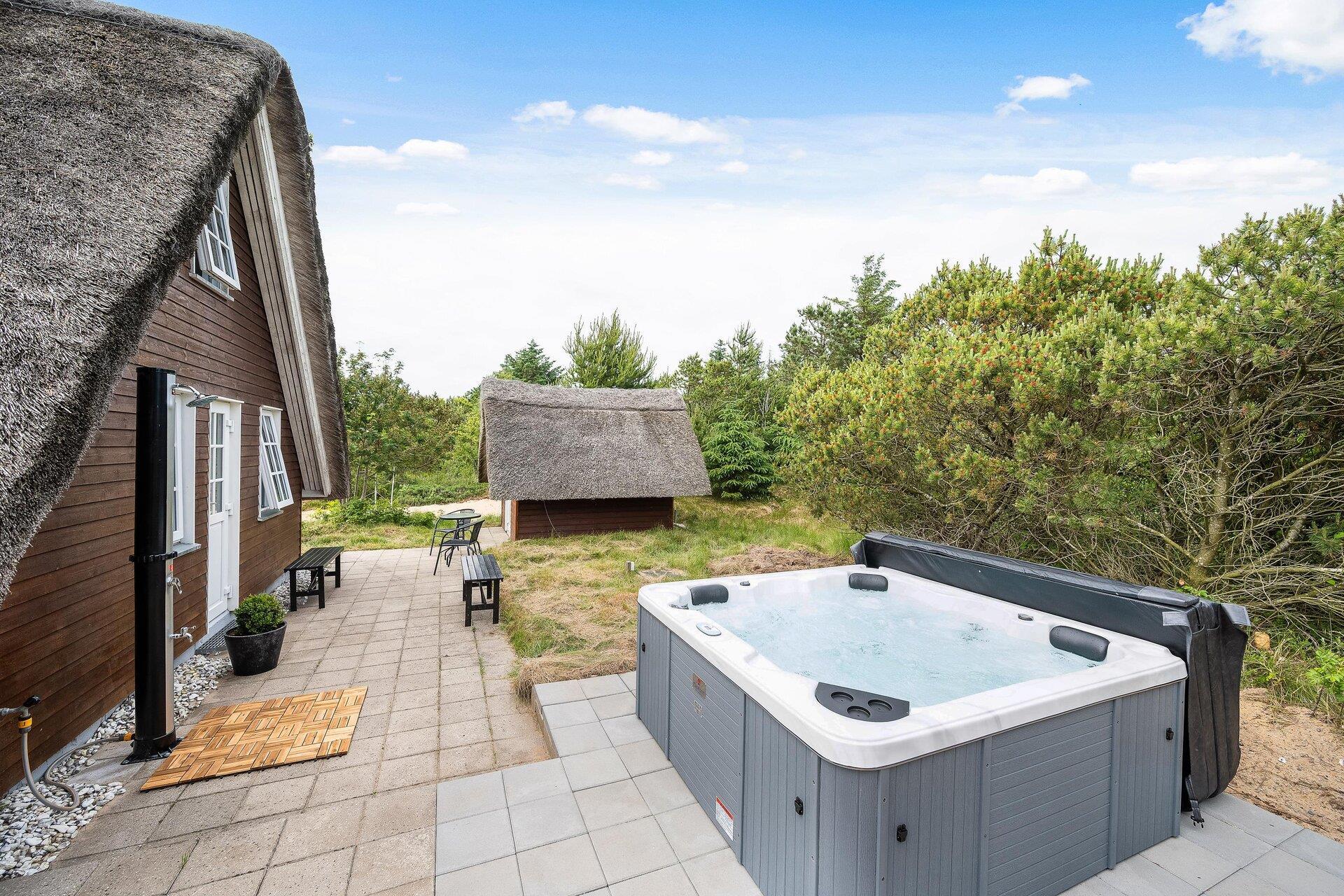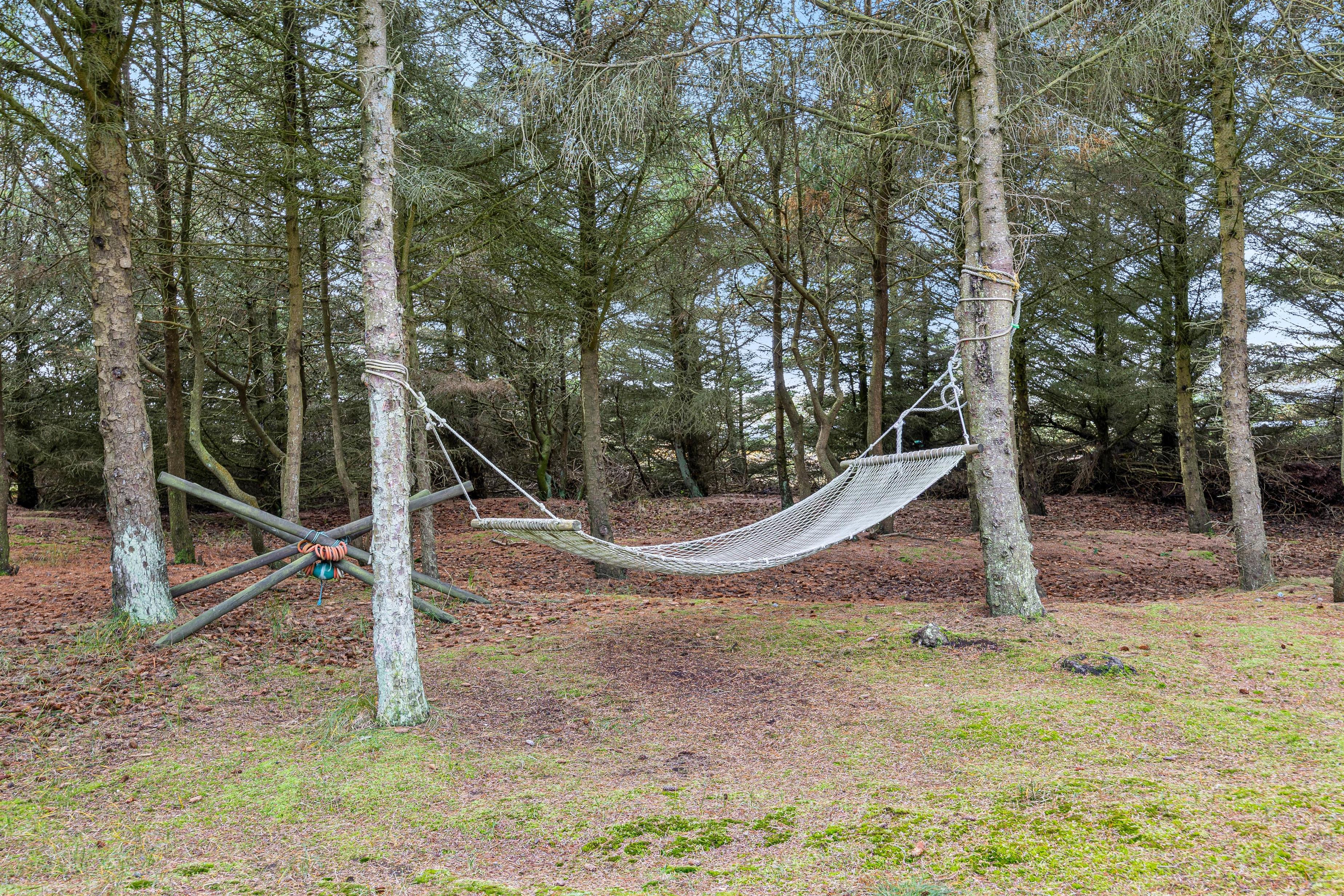 Udenfor venter et stort, ugeneret naturområde omgivet af fyrretræer, hvor I kan nyde privatlivet i fredelige omgivelser. På terrassen kan I læne jer tilbage i havemøblerne og nyde solen med en god bog i hånden eller starte dagen med morgenkaffe i frisk havluft. Om aftenen kan I samles til grillmiddag, mens solen går ned bag klitterne. Hunden vil elske at løbe frit rundt på den store naturgrund, og I må gerne tage op til to hunde med.