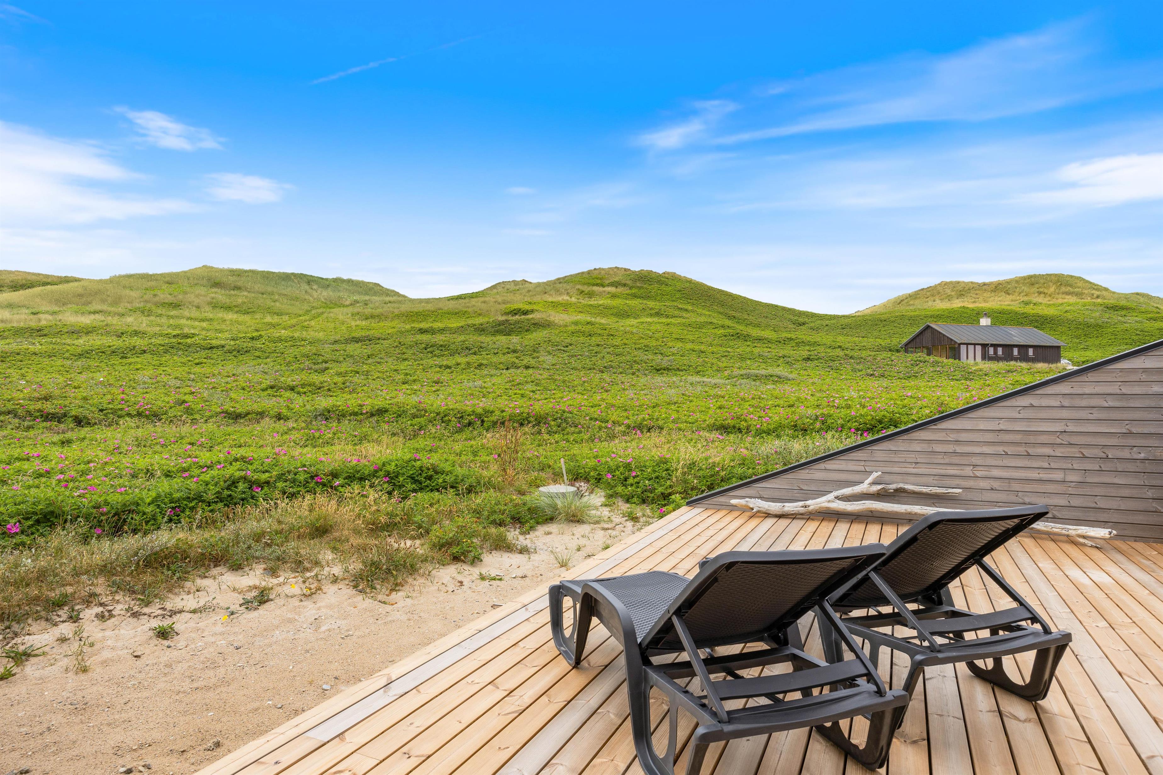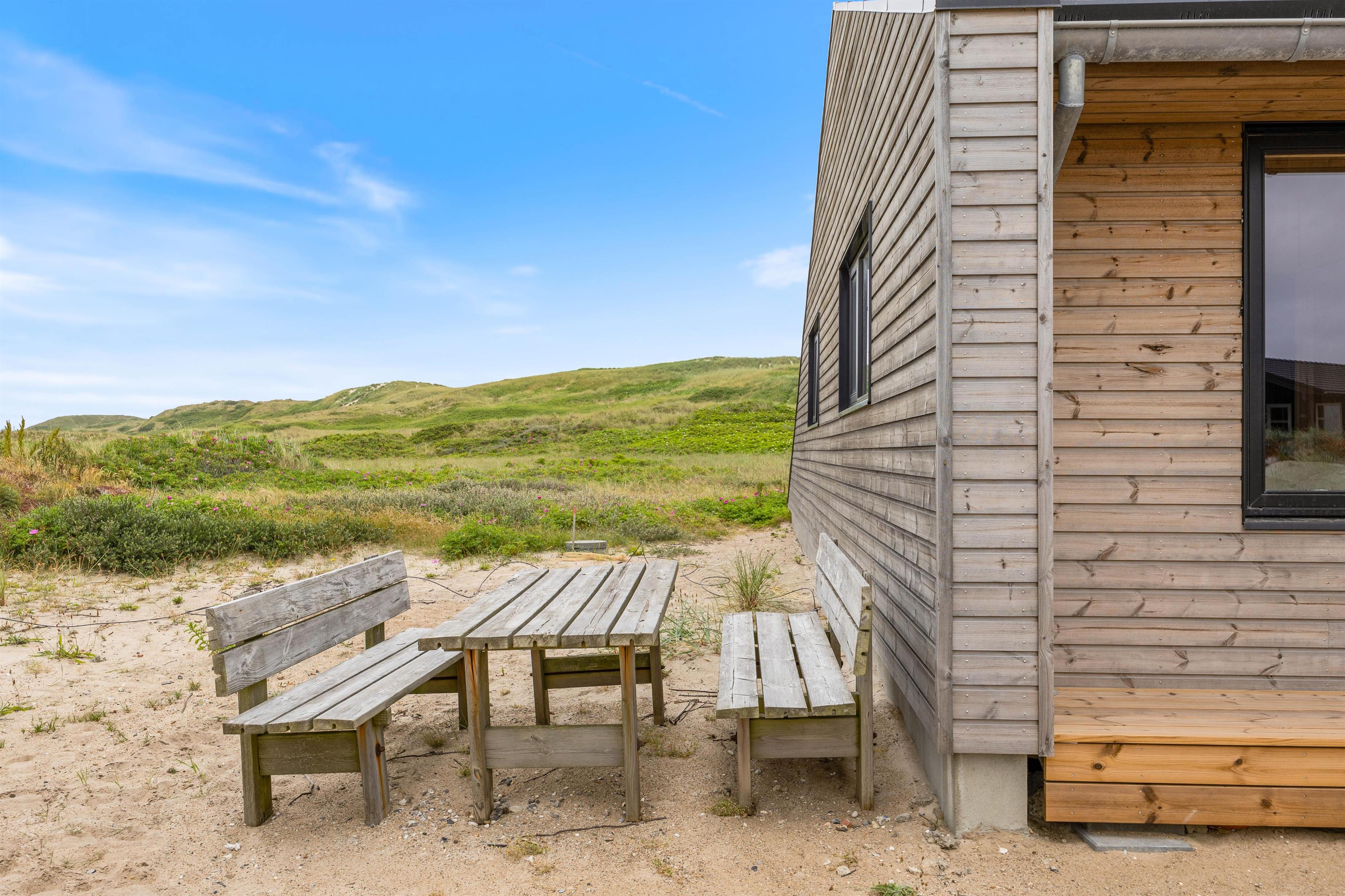 Derudover er der både udesauna og en udebruser, så I kan få et frisk og køligt skyl efterfulgt af en opvarmning i udesaunaen. I kan selvfølgelig også benytte udebruseren til at få skyllet fødderne for sand efter en hyggelig dag ved stranden, som ligger blot 100 meter fra sommerhuset. I skal dog være opmærksomme på, at udebruseren kun er tilgængelig fra april til november.