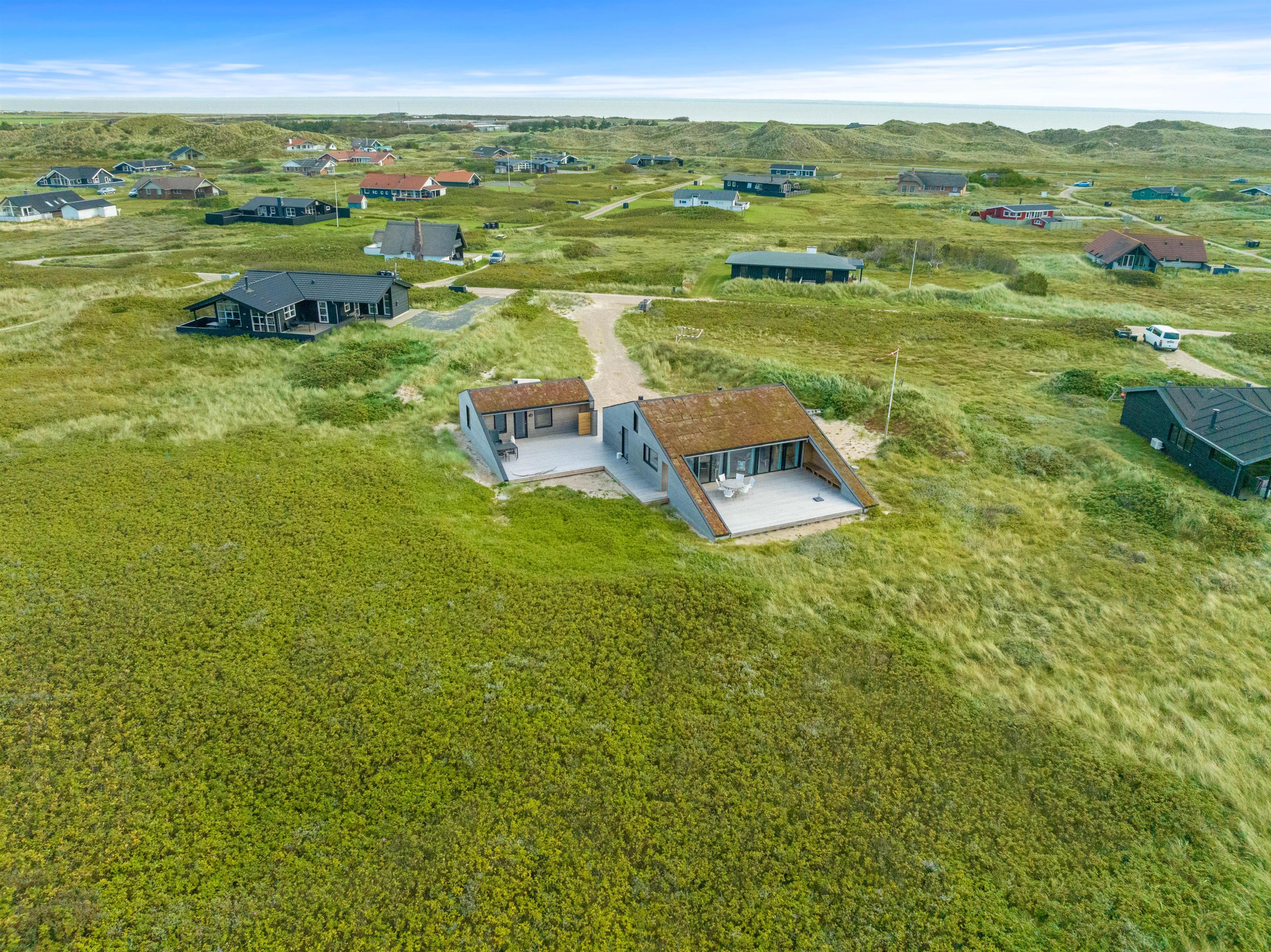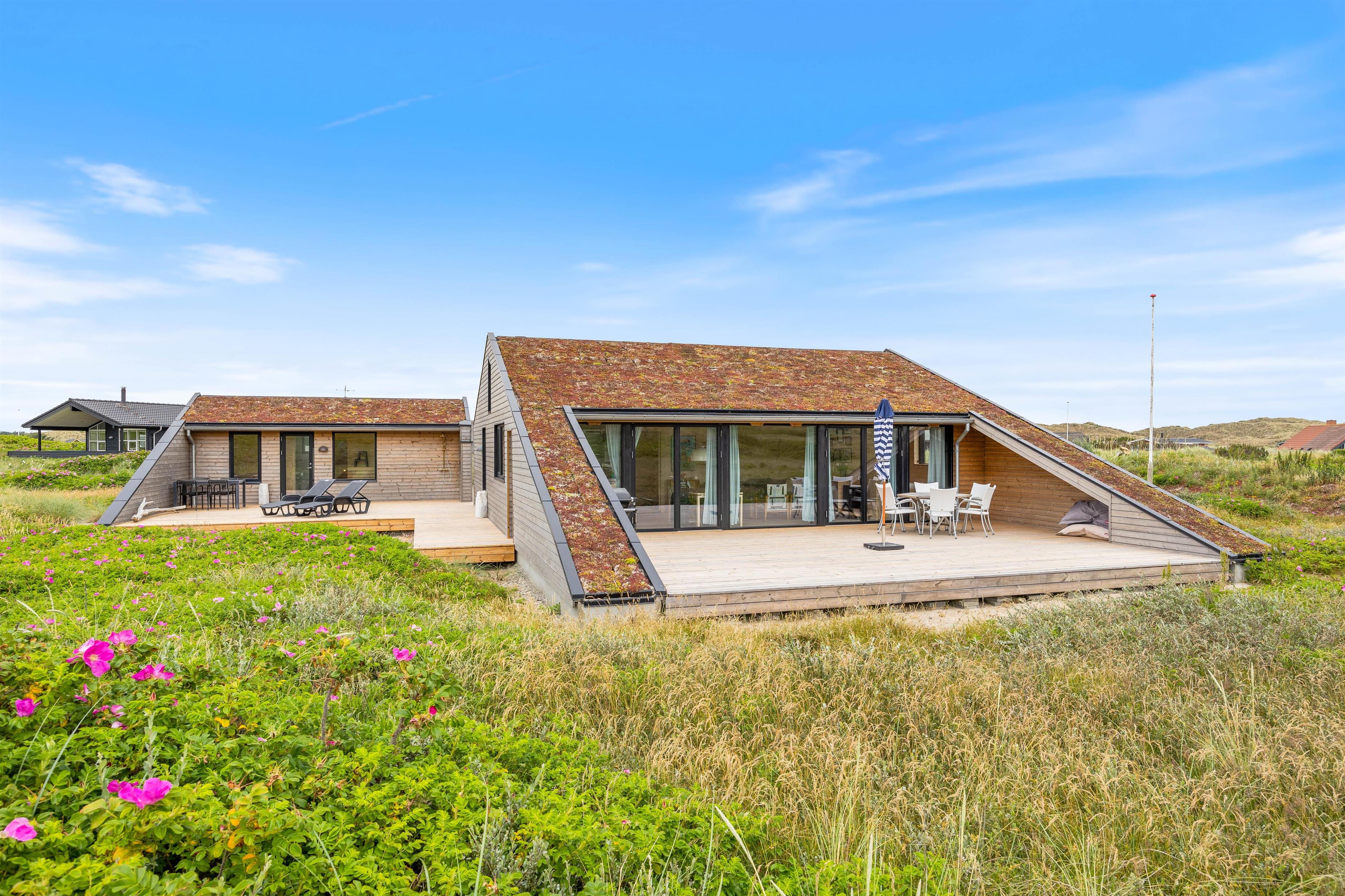 Det spændende træsommerhus er opført i gode materialer og har en smuk arkitektur. Indretningen er stilfuld og bærer præg af komfort og en sans for detaljer. Sommerhuset er som sagt til jeres familie på 6 personer, som sammen kan nyde en skøn ferie ved Vesterhavet.