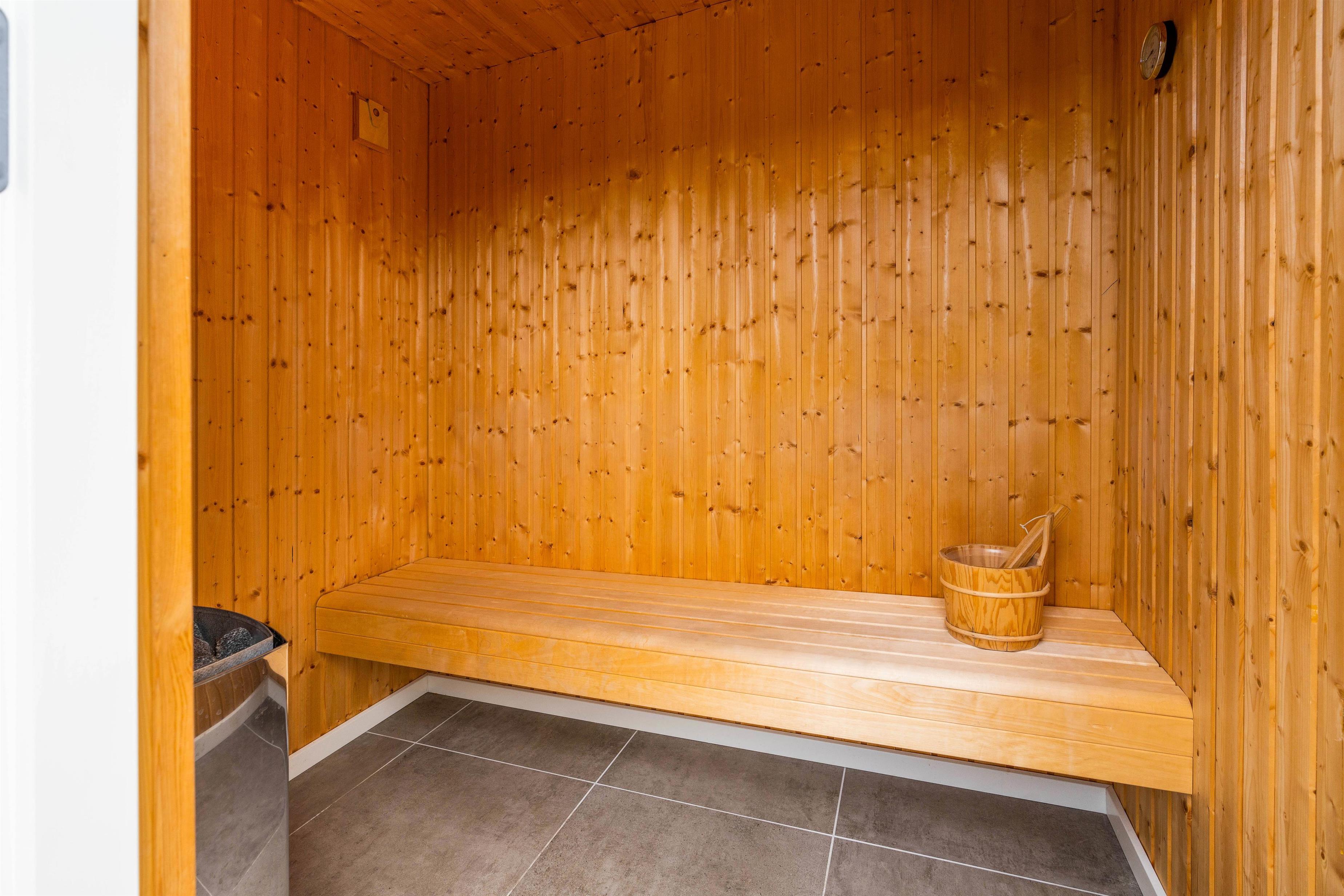 Den lukkede terrasse byder på et par ekstra fede highlights; herfra har I nemlig både adgang til jeres egen sauna og en lækker udespa. Her er alle muligheder for at slippe den travle hverdag og tanke ny energi på luksuriøs vis.