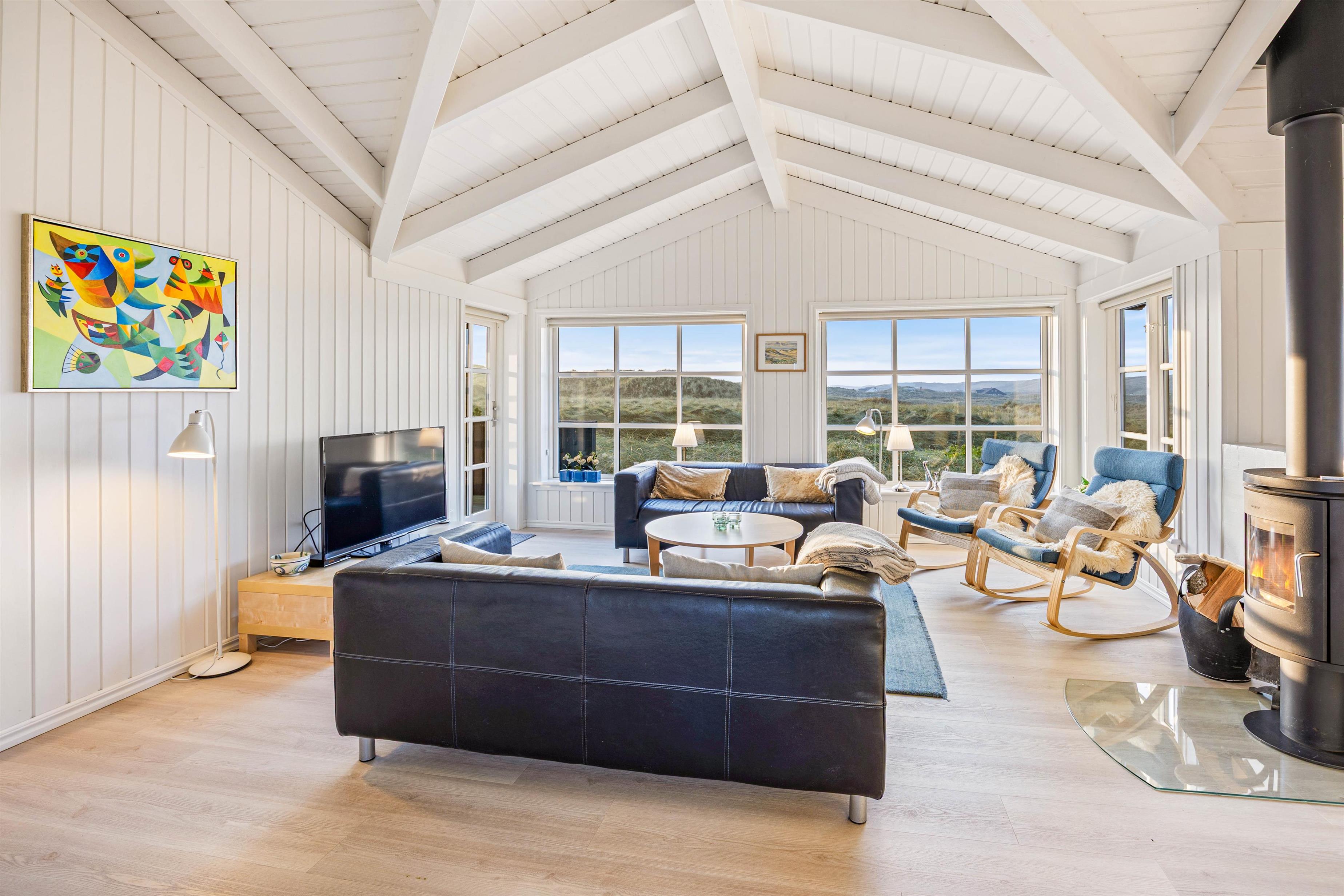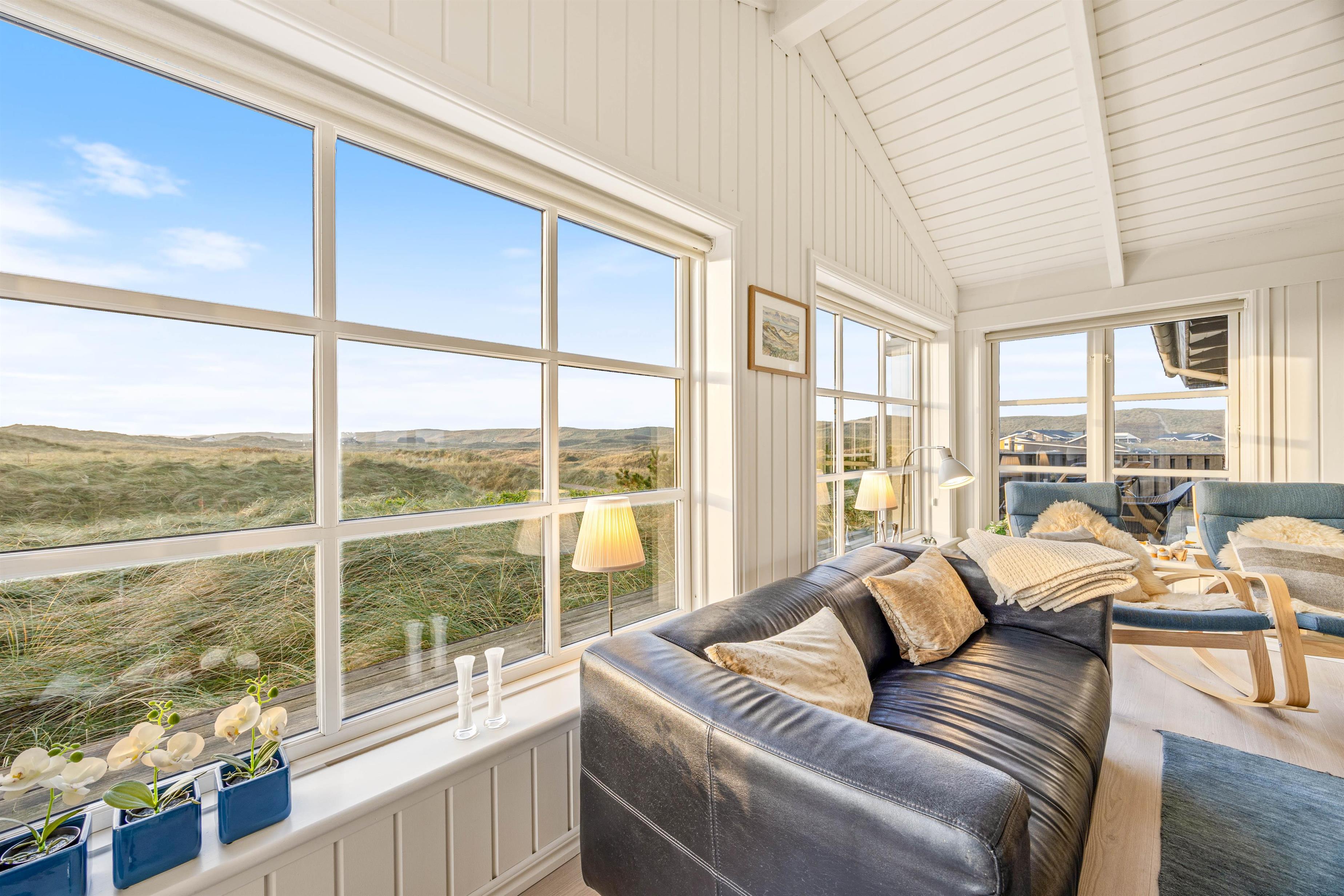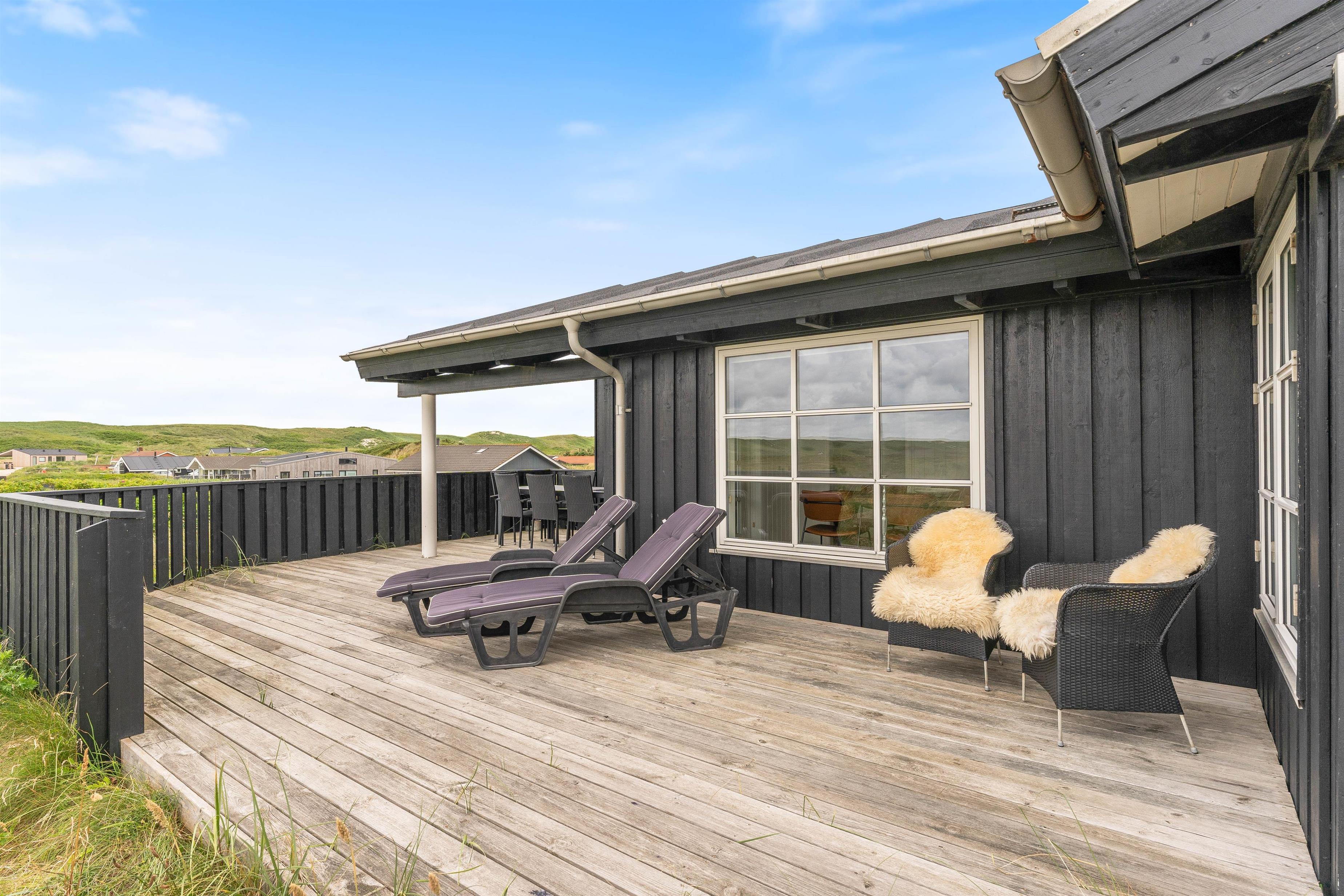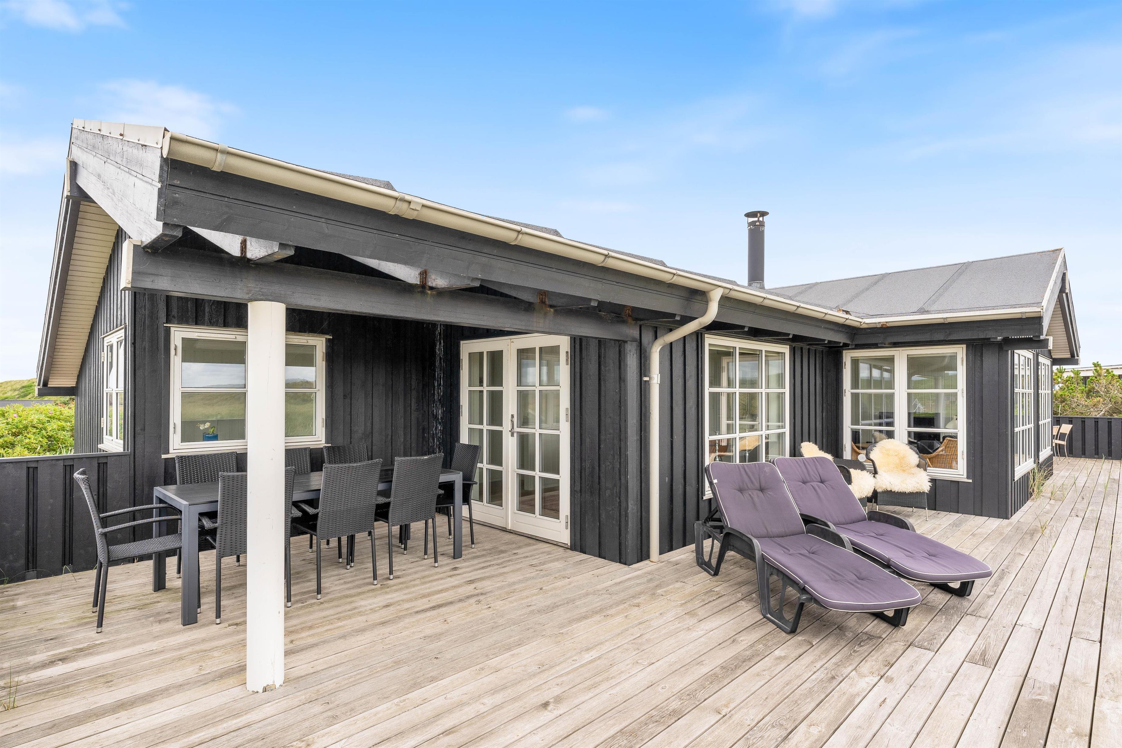 På en kuperet naturgrund kun få hundrede meter fra stranden ligger dette fantastisk lækre luksushus. Fra huset og grunden er der en pragtfuld udsigt over heden og til klitterne. Huset har alt hvad man kan ønske sig af luksus og komfort, bl.a. spa og sauna.