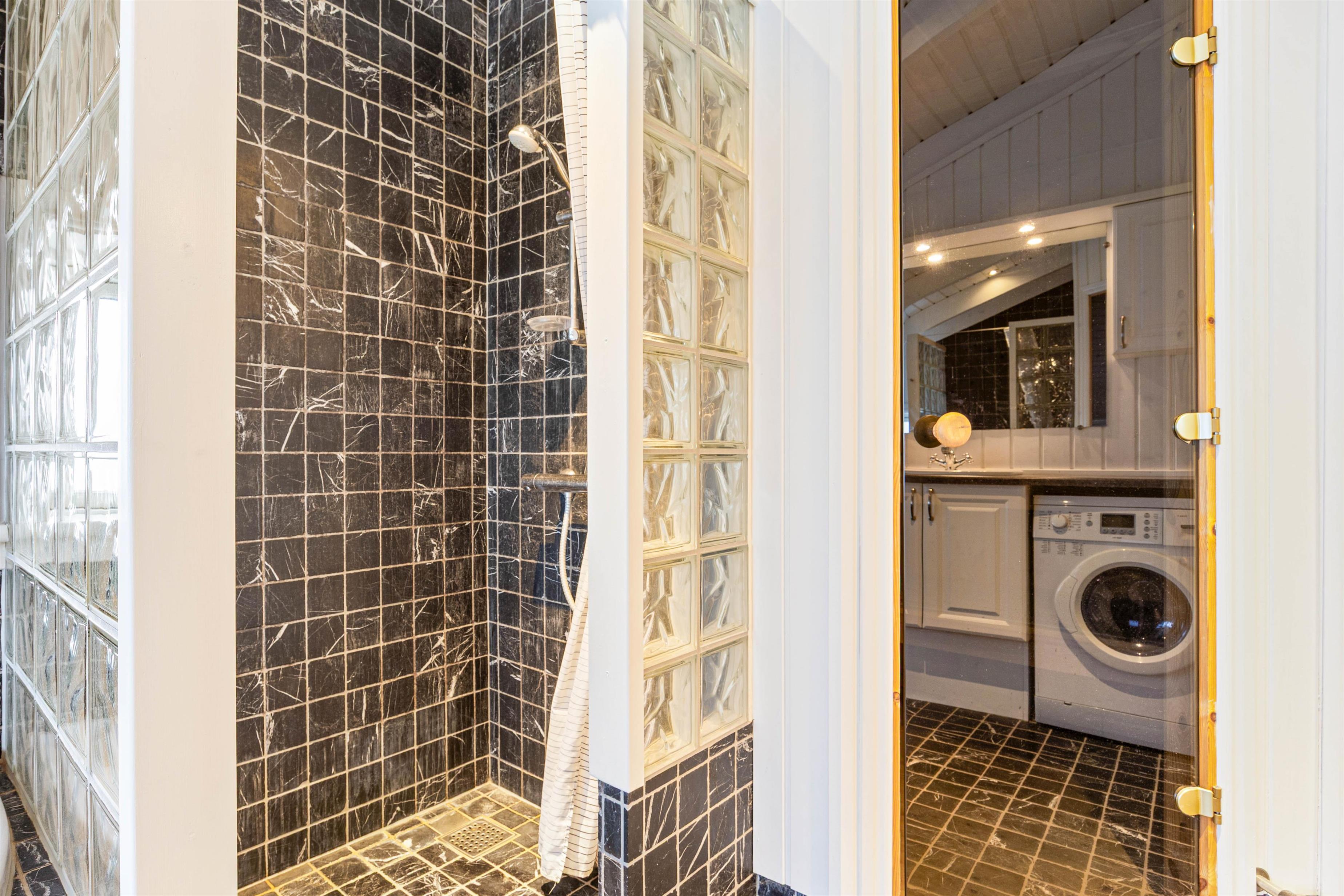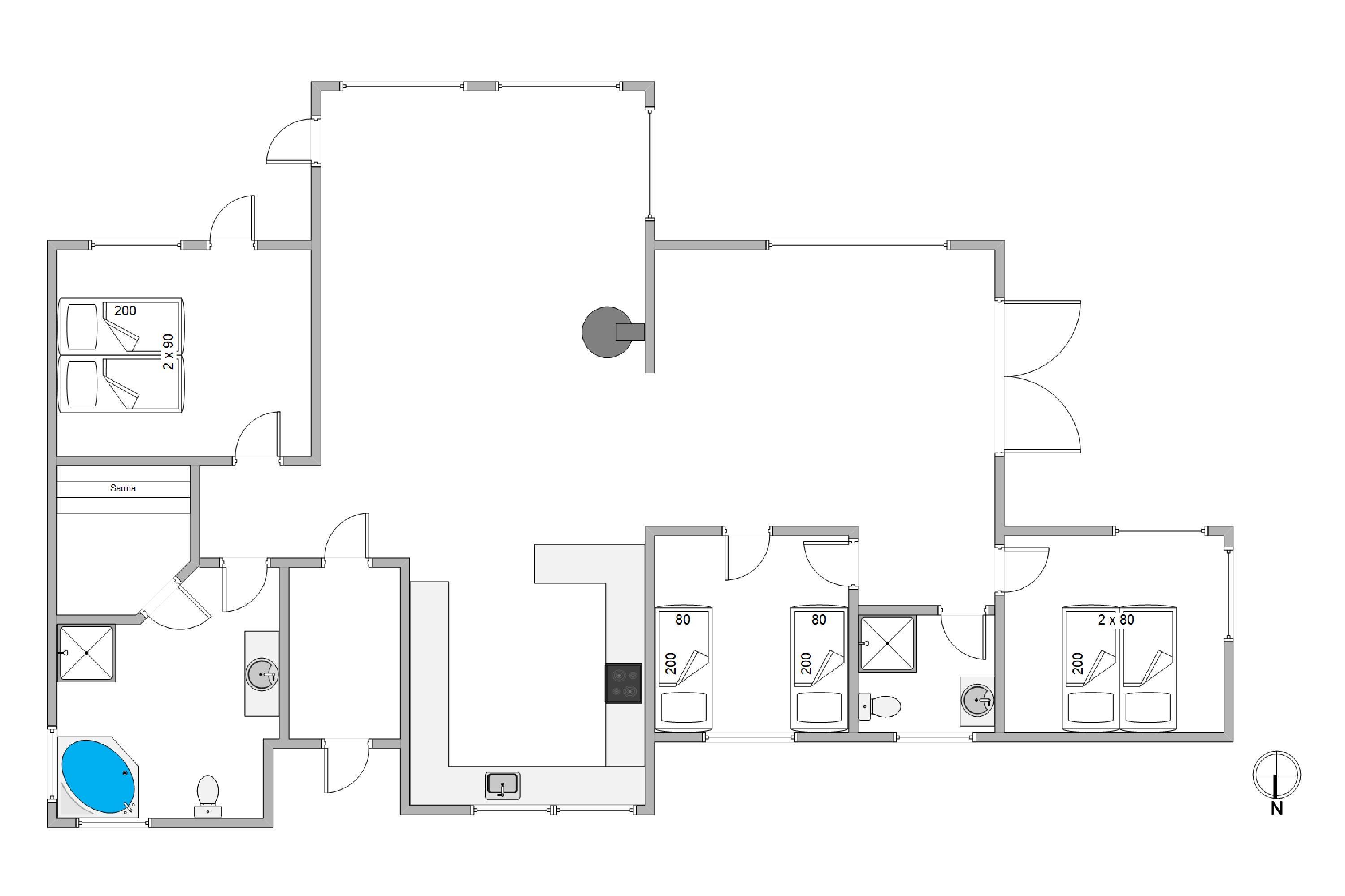 Huset er opført i flotte materialer, og der er ikke lavet kompromis med kvaliteten, hverken ude eller inde, så her har man et feriehus med et rigtig godt helhedsindtryk, hvor der er god plads og gode rum til seks personer, og hvor der står gode moderne faciliteter som f.eks. spabad og sauna til rådighed.