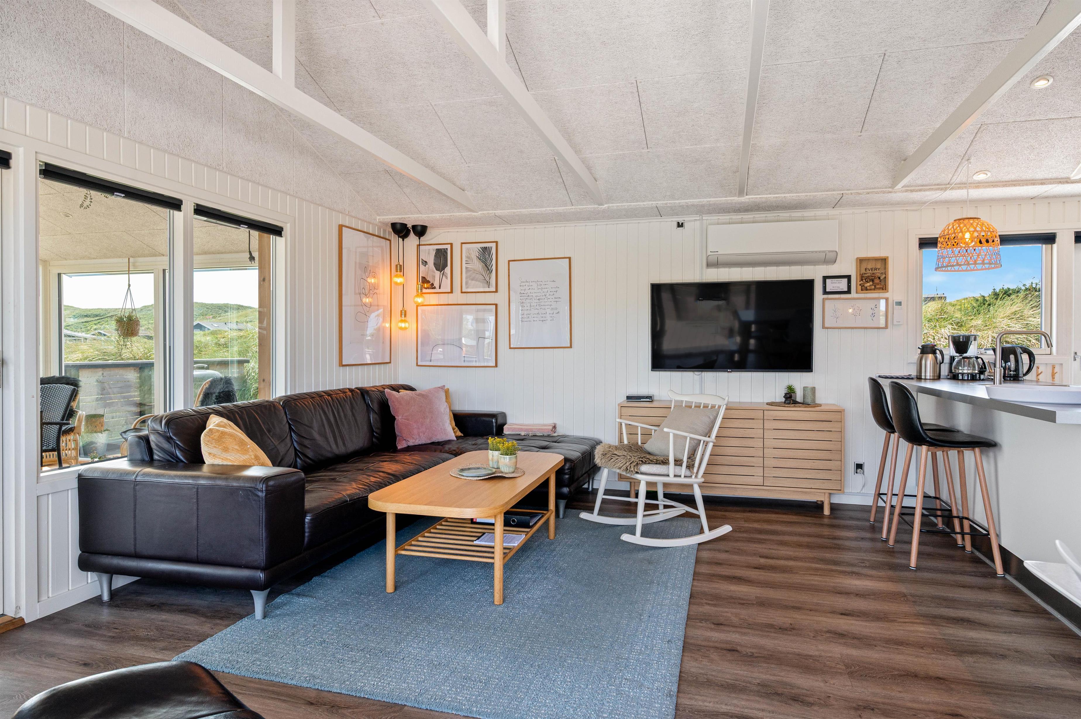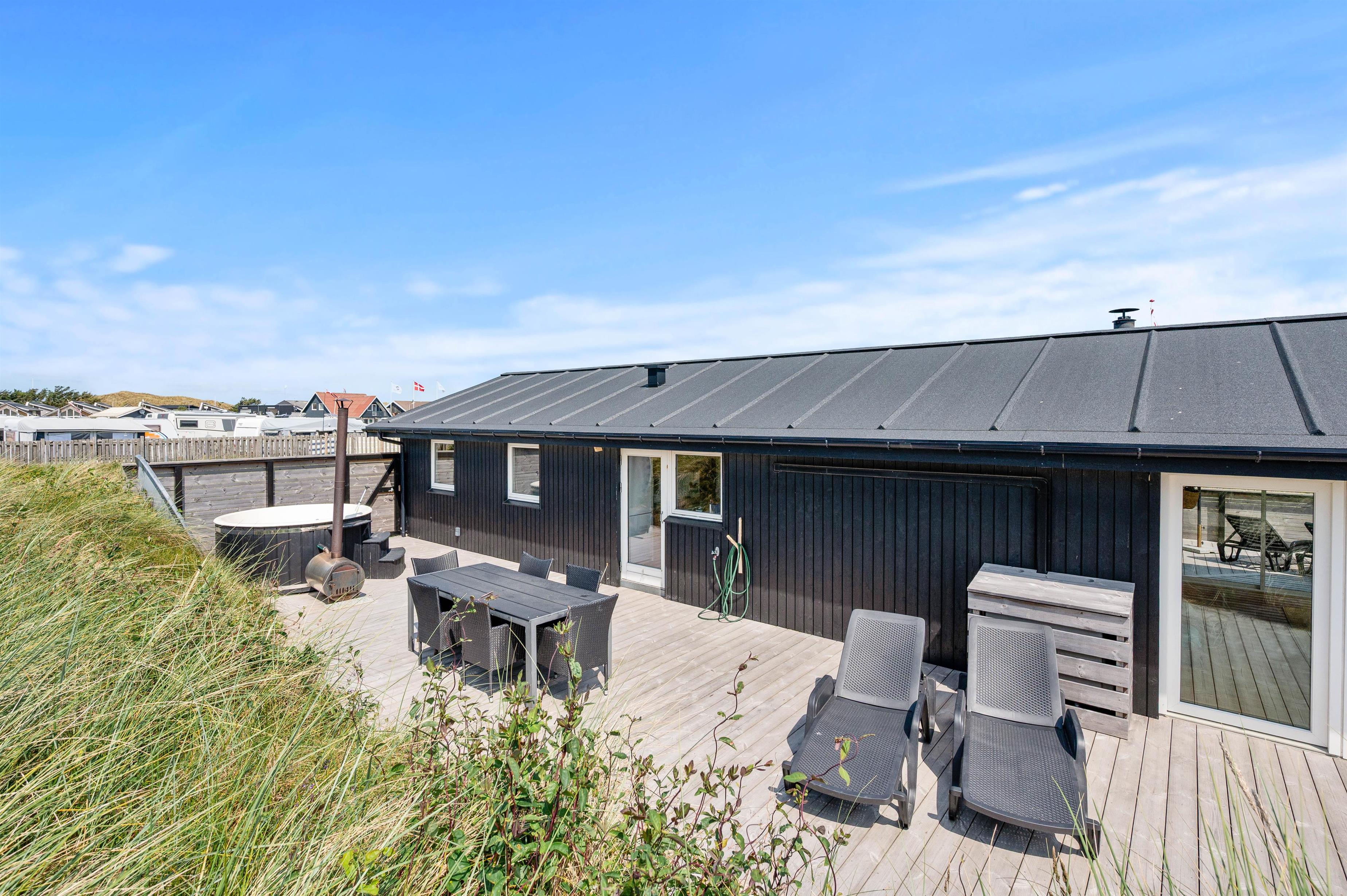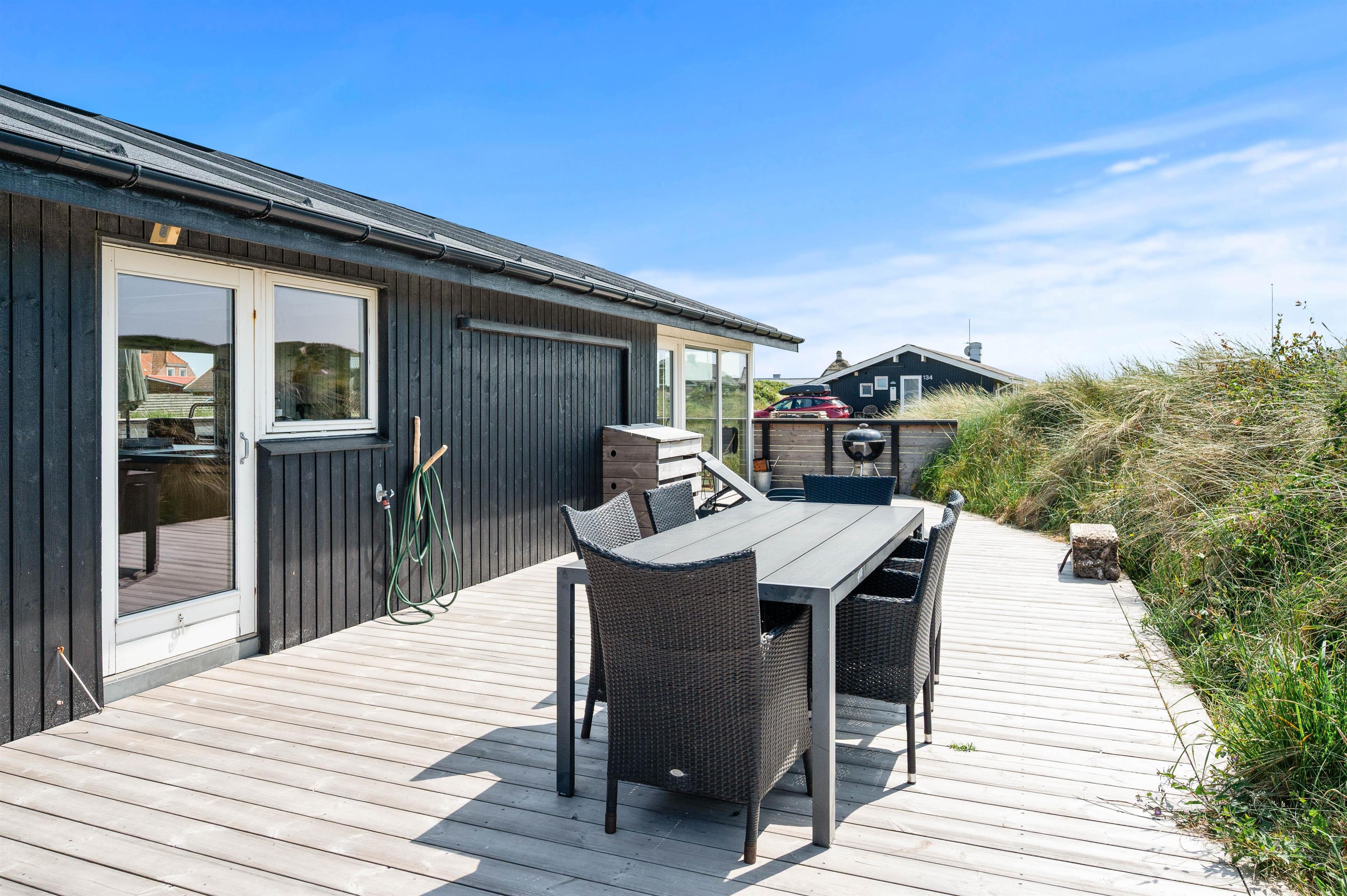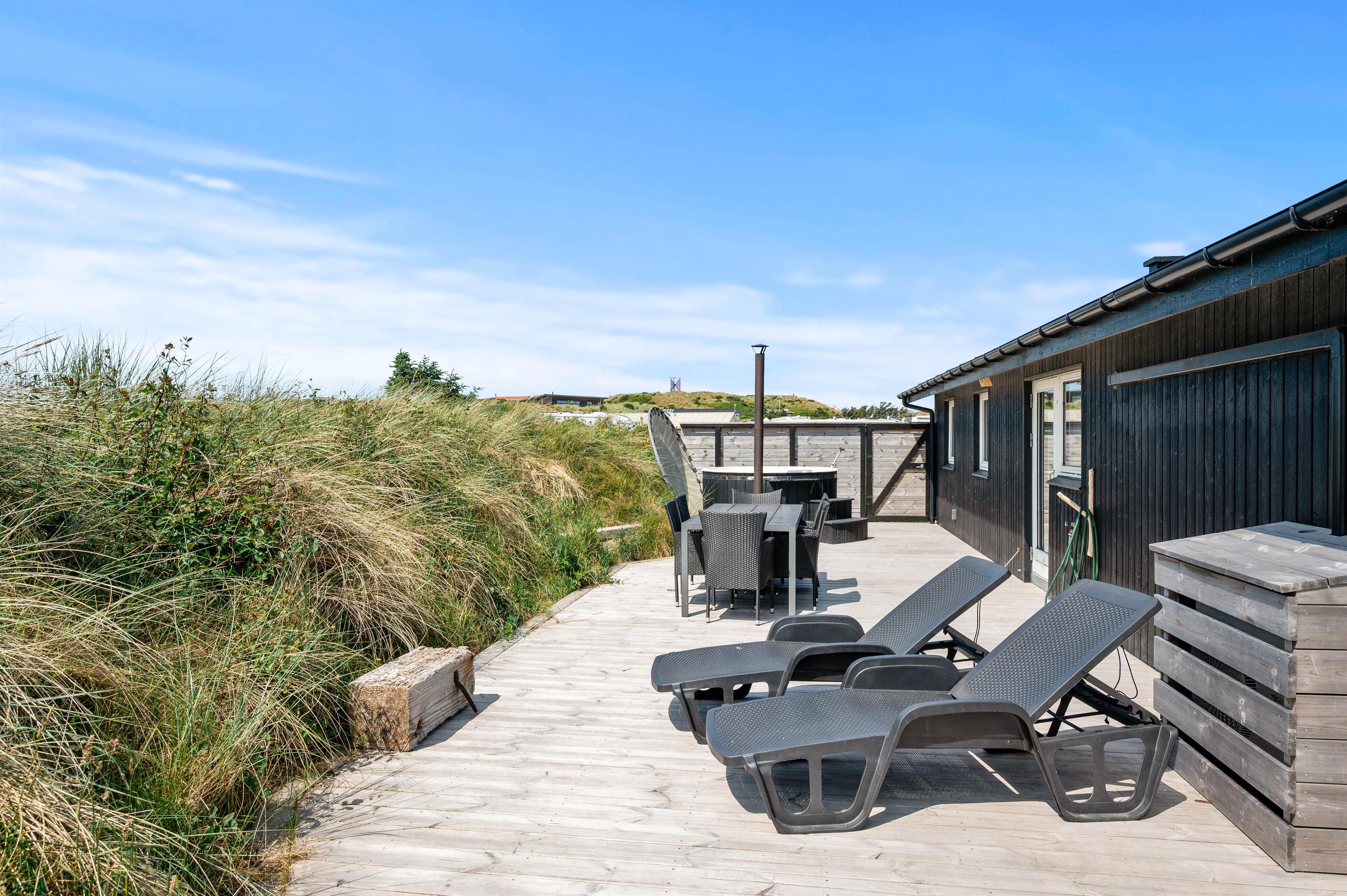 Sommerhuset ligger kun 250 meter fra stranden, hvor der kan bygges sandslotte, samles muslinger eller I kan gå en tur med hunden. På en varm sommerdag kan I også dyppe fødderne i Vesterhavet. Det skønne sommerhus ligger på en naturgrund, hvor I efter en lang dag ved stranden kan slutte dagen med en tur i det varme vildmarksbad.