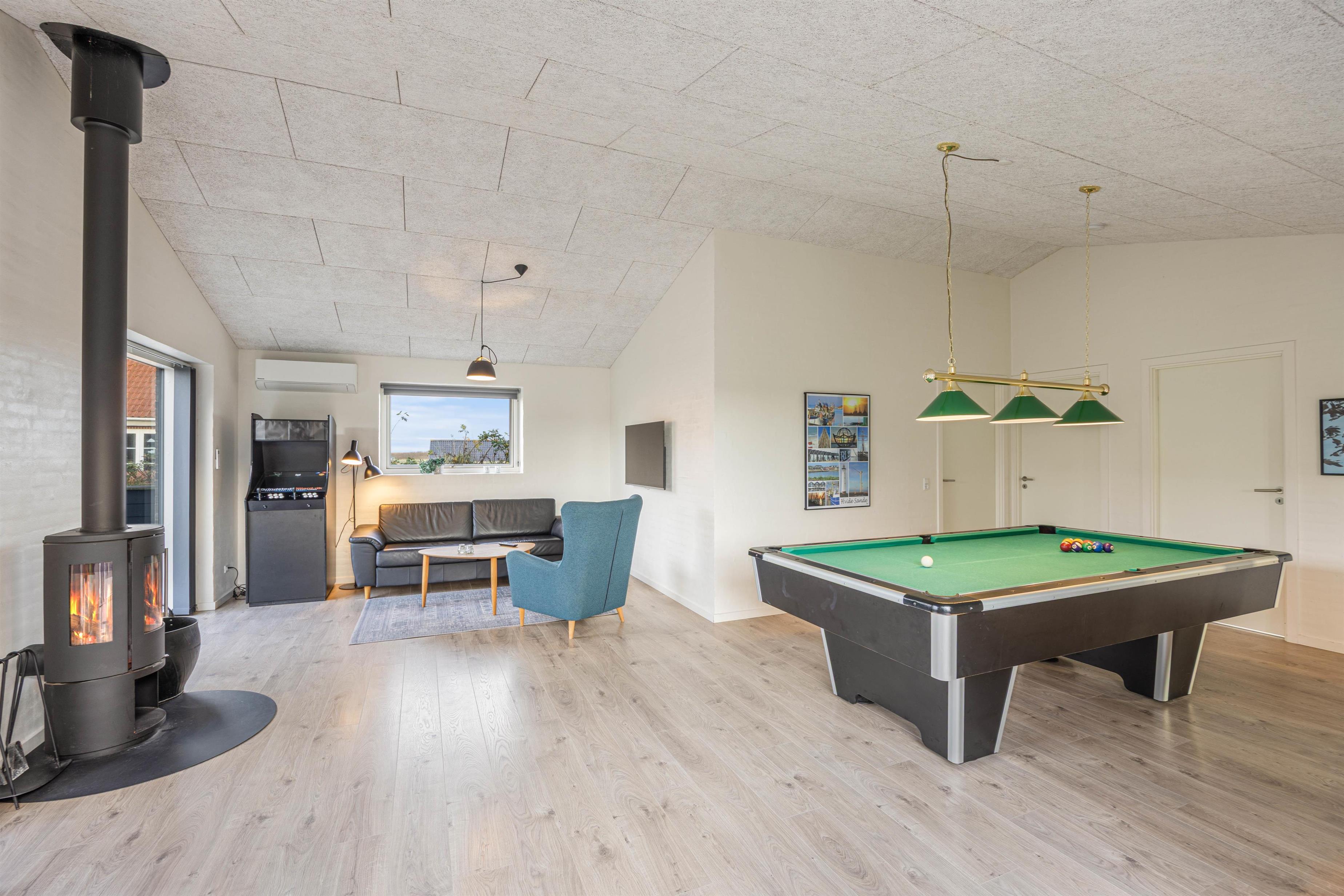 Det store aktivitetsrum indbyder til masser af familiehygge – både med spil og sofahygge foran brændeovnen. Rundt om det store billardbord kan I tage en lille dyst om opvasken.