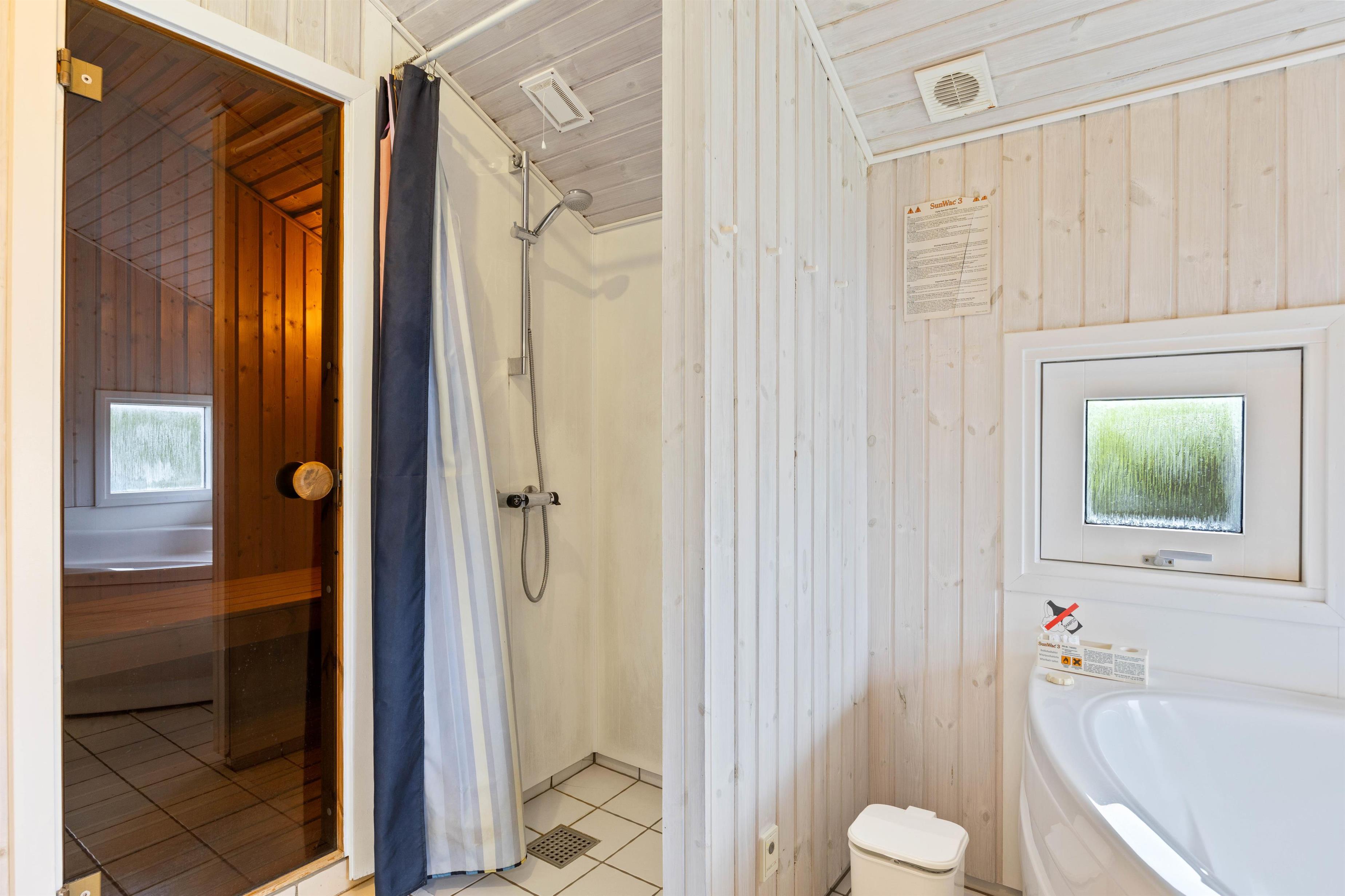 Efter en lang og forfriskende gåtur til Vesterhavet, kan du starte op i spabadet og saunaen på badeværelset. Start med et skønt spabad med et af dine familiemedlemmer, og afslut badet med en tur i saunaen. For at bibeholde den dejlige varme i kroppen, er der gulvvarme på badeværelset du kan nyde. Desuden er der et gæstetoilet, således i ikke skal stå i kø om morgenen inden dagens oplevelser går i gang. Dette toilet er også med gulvvarme.