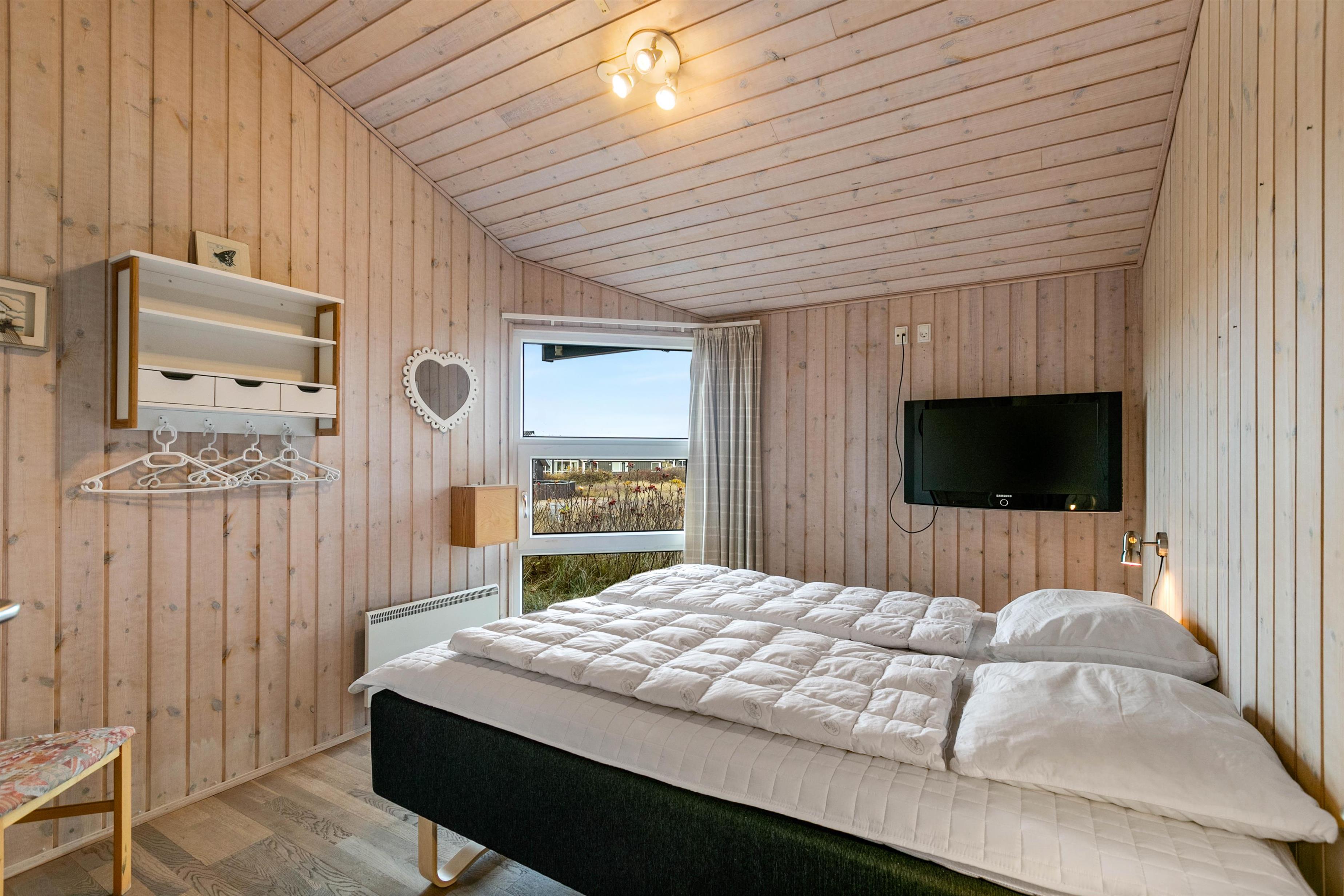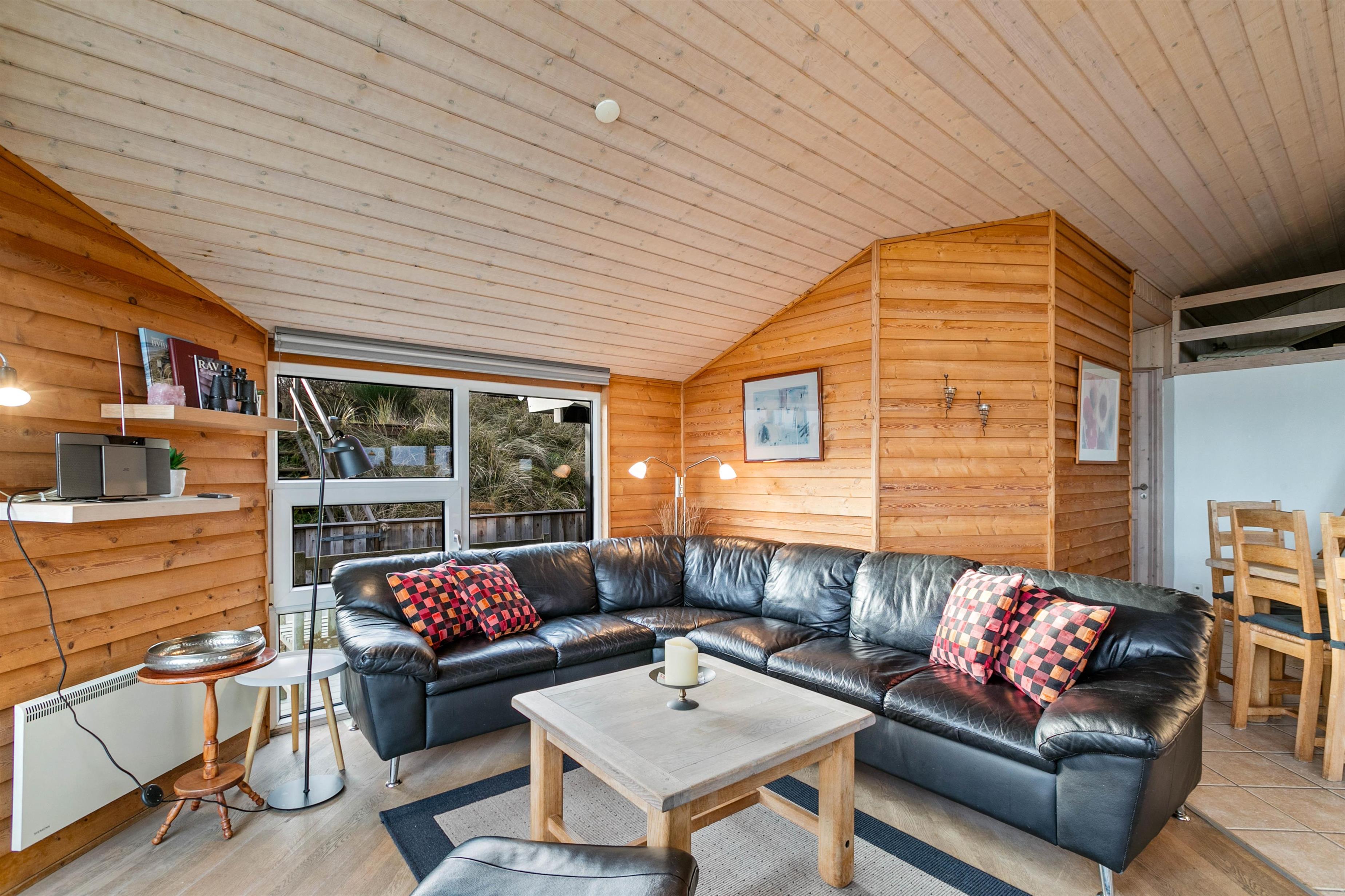 Når I træder ind i huset, møder i et velholdt og indbydende indrettet hus. Her er der moderne faciliteter blandet med den charmerende indretning. I hele huset finder i træbeklædte vægge, som giver en rigtig hyggelig stemning af ægte sommerhusferie.