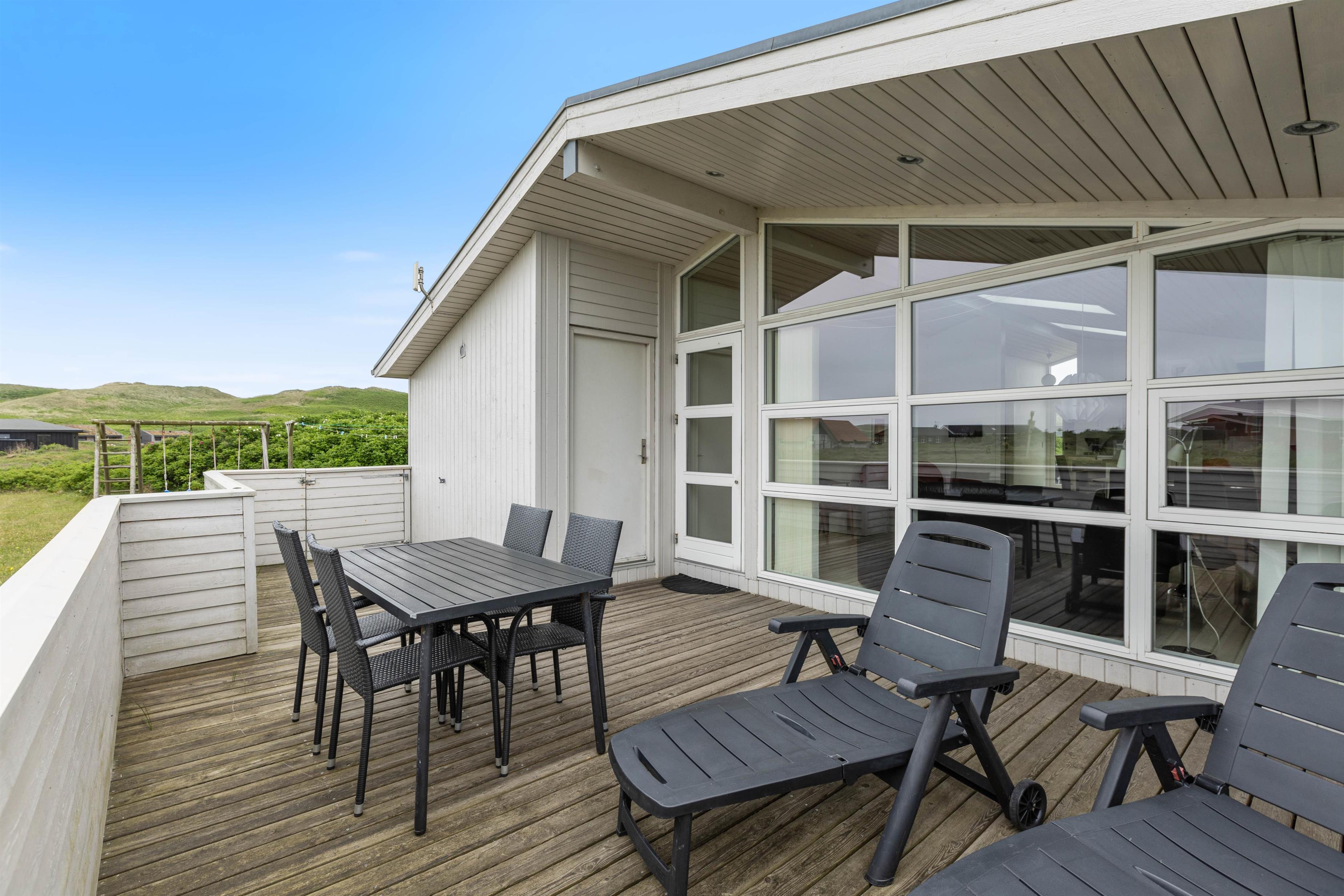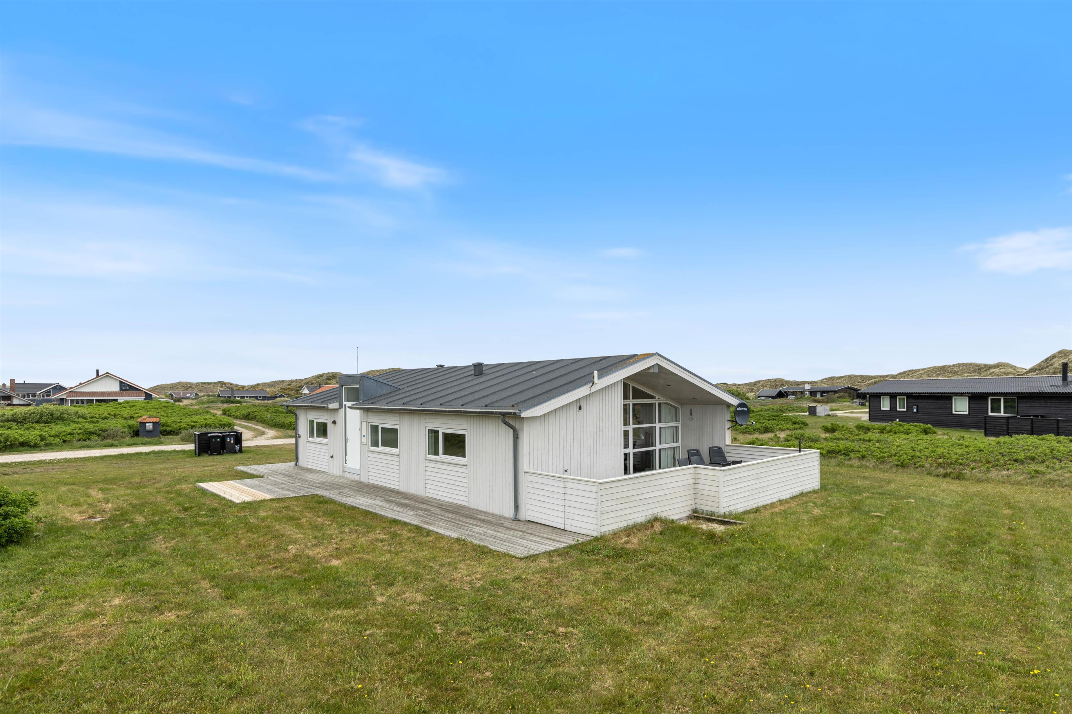 Dette dejlige og indbydende sommerhus er beliggende på en stor plænegrund i Årgab, få kilometer syd for Hvide Sande. Her er kun 250 meter til den skønne sandstrand og det smukke Vesterhav. På campingpladsen et par hundrede meter derfra kan du i sommerhalvåret købe dagligvarer og frisk brød. På den store plænegrund er der masser af muligheder for leg og boldspil. Her er opstillet fodbold mål, gynge og sandkasse til ungerne.