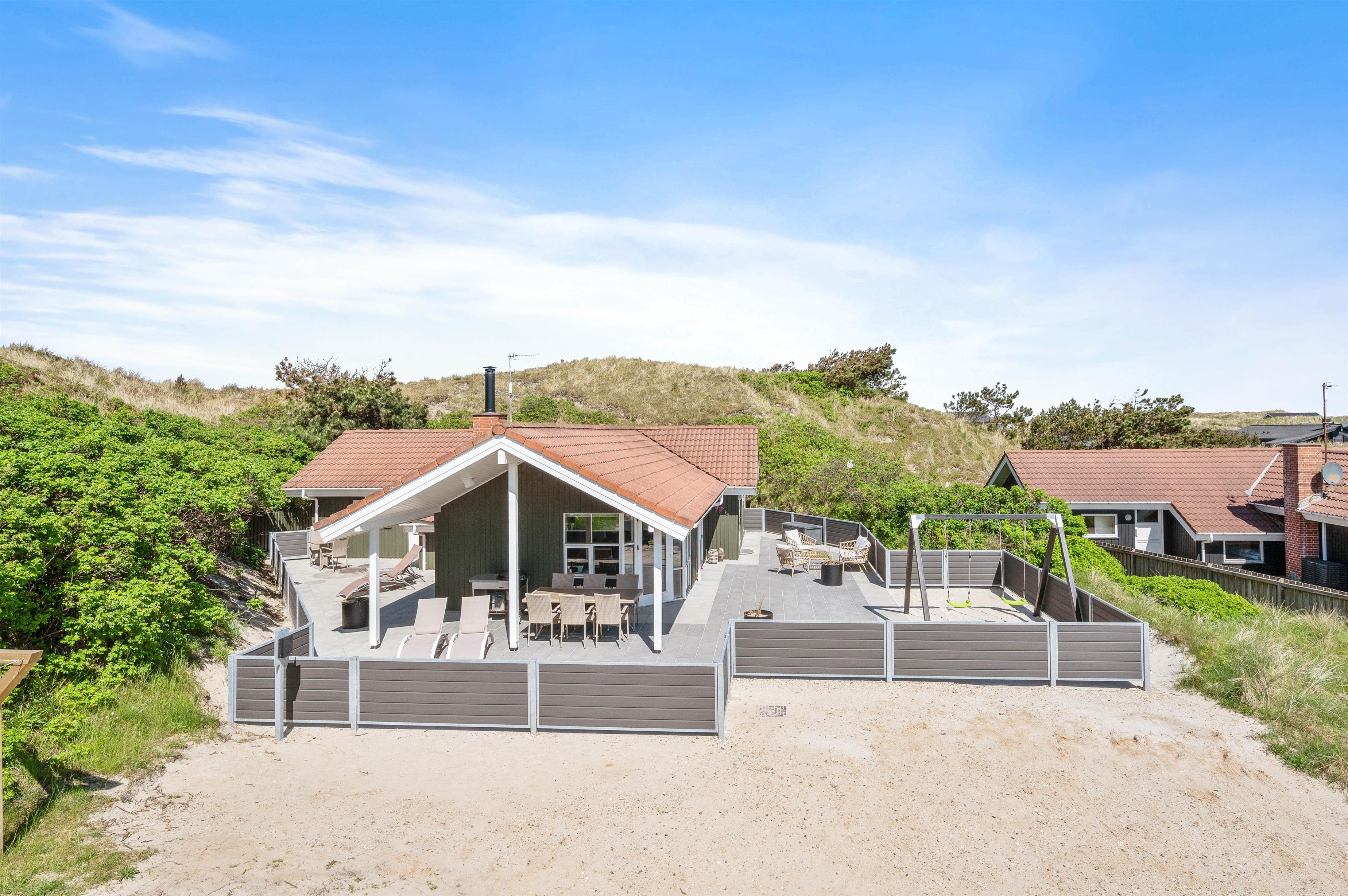 Sommerhuset ligger højt i landskabet, så derfor kan I nyde udsigten over Ringkøbing fjord, mens børnene benytter sommerhusets sandkasse og gyngestativ.