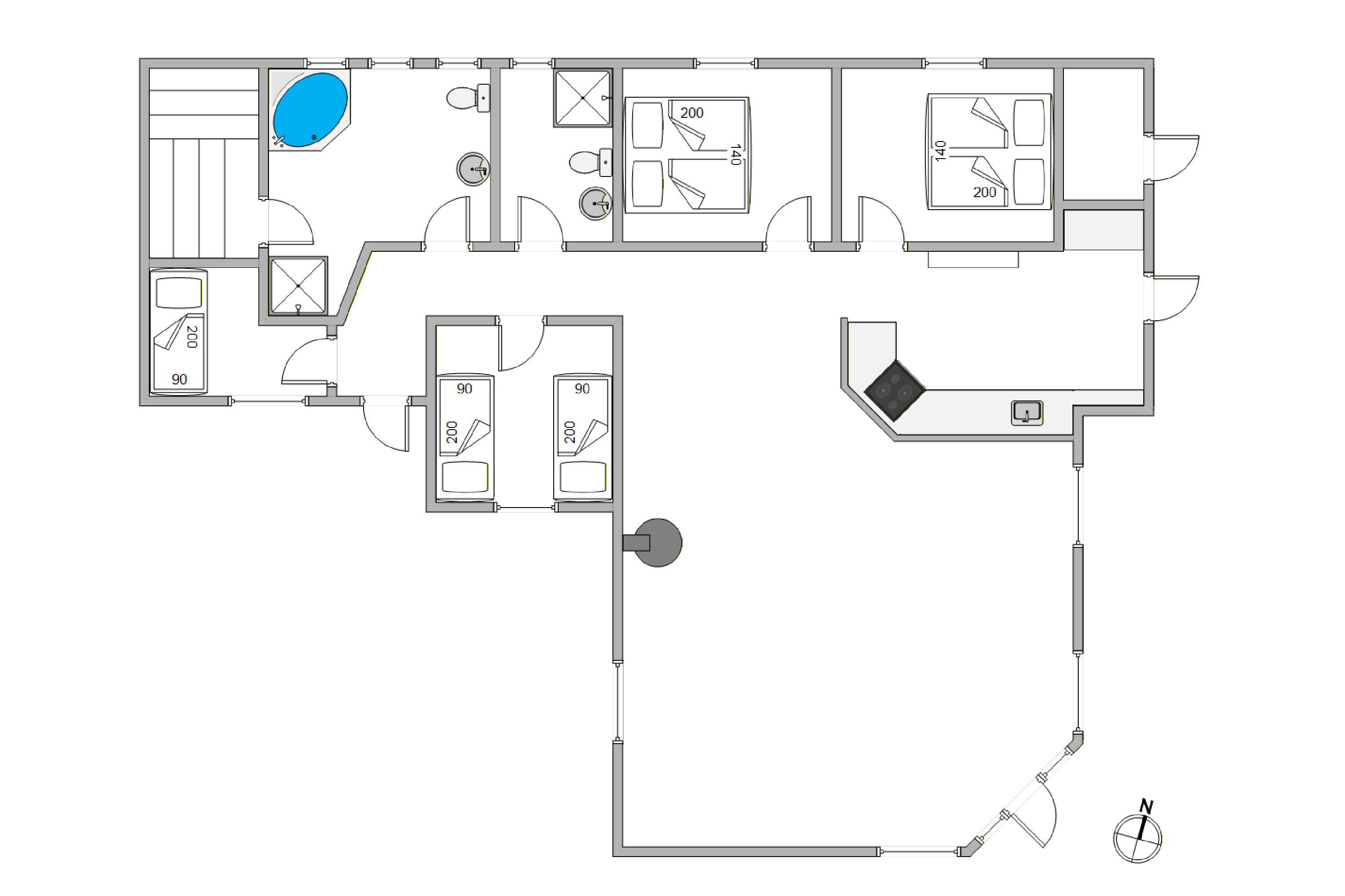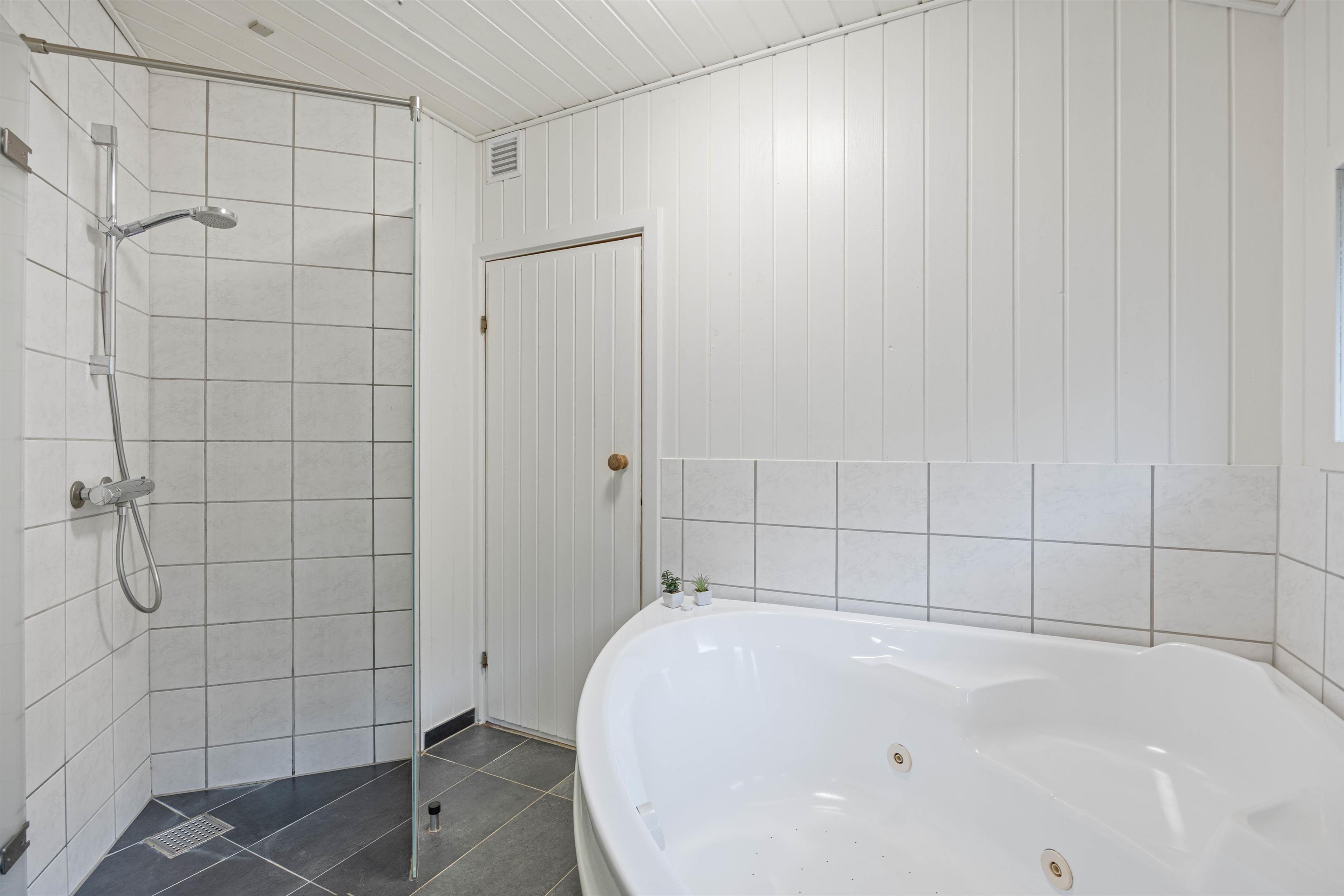 Efter en lang gåtur ved stranden, kan i blive varmet op i sommerhusets højdepunkt, de 2 badeværelser. Badeværelserne er begge udstyret med gulvvarme. Derudover finder i Wellness-området på det ene badeværelse, her kan I nyde et spabad efterfulgt af en tur i den rummelige sauna.