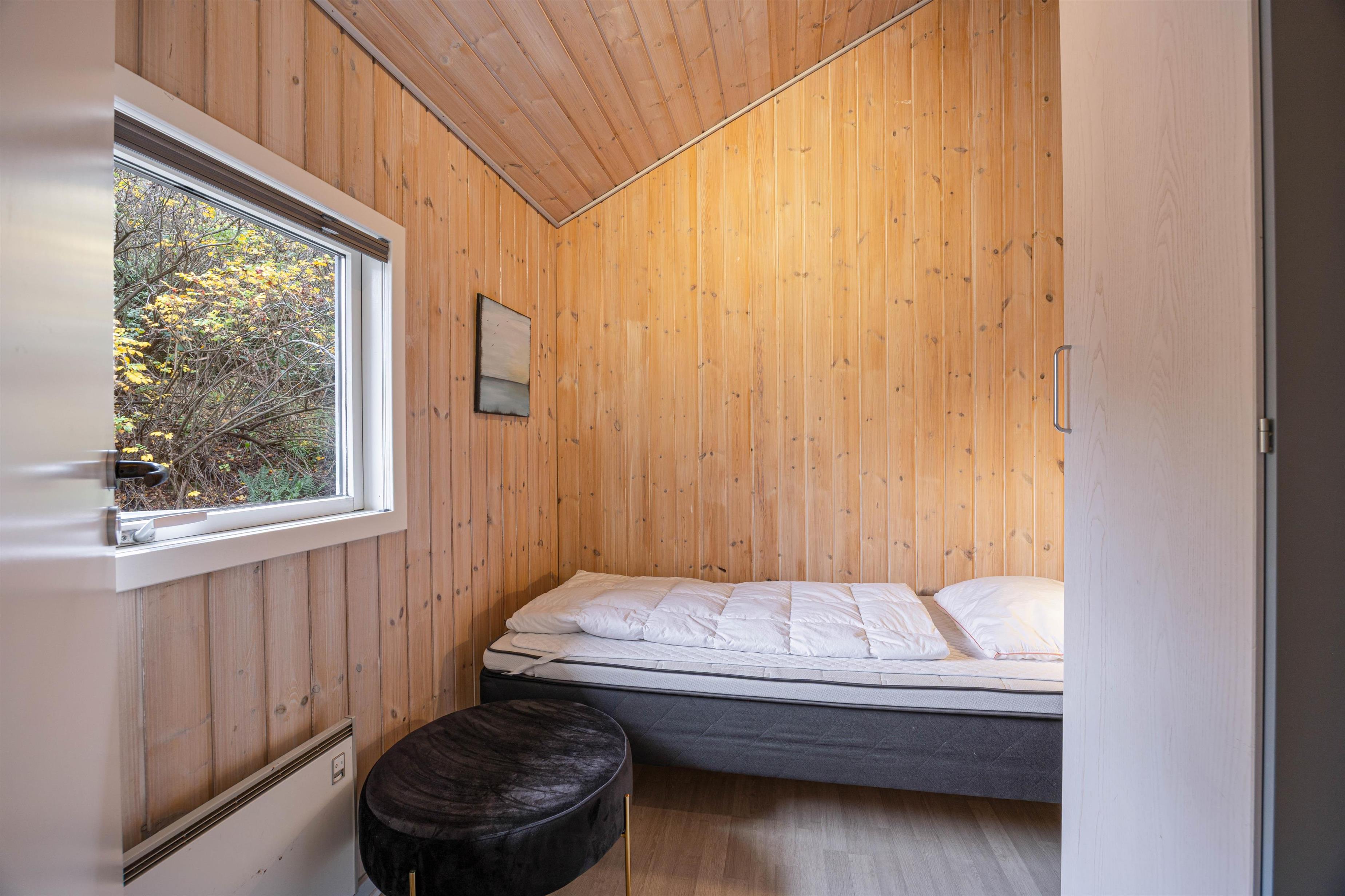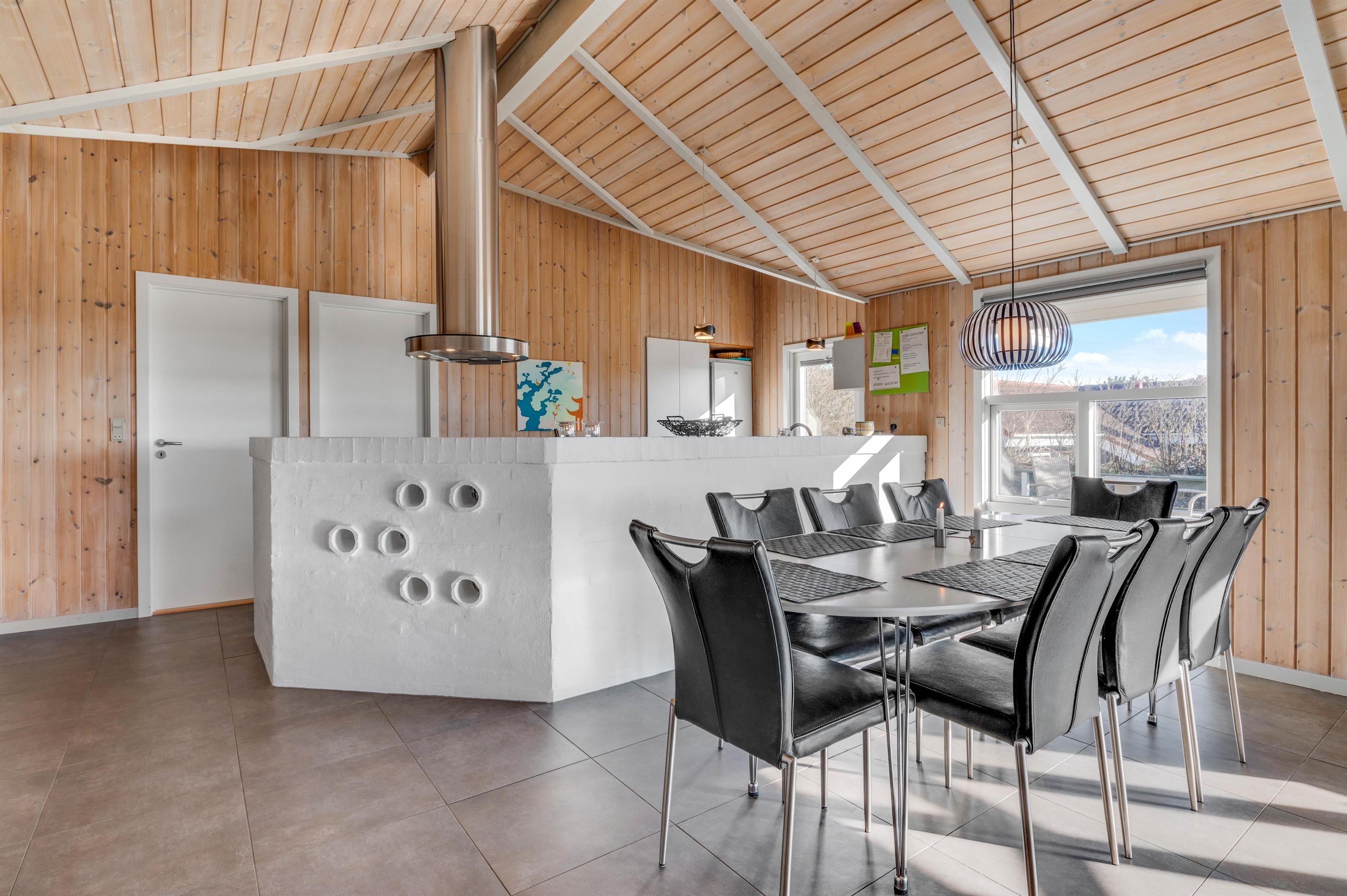 I dette sommerhus kommer hyggen i første række. Den store hjørnesofa og sansen for detaljer byder på plads til hele familie, her kan I sammen nyde varmen fra den hyggelige brændeovnen. Når solen skinner gennem sommerhusets store vinduer, fremstår sommerhuset lyst og åbent.