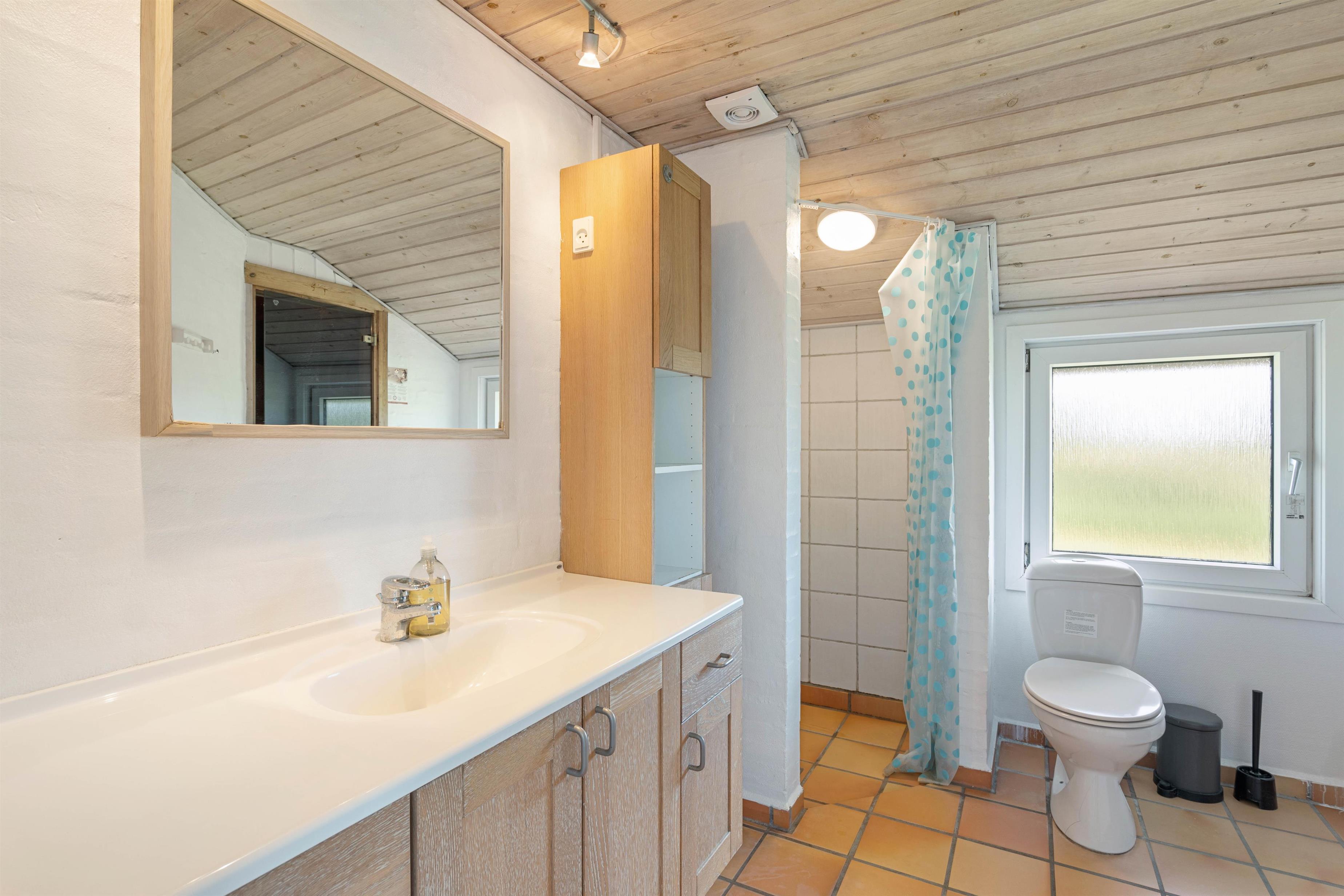 Det strandnære og bekvemt beliggende sommerhus tilbyder alle moderne bekvemmeligheder, som opvaskemaskine, mikroovn, separat fryser, vaskemaskine og tørretumbler samt gulvvarme og energibesparende varmepumpe.