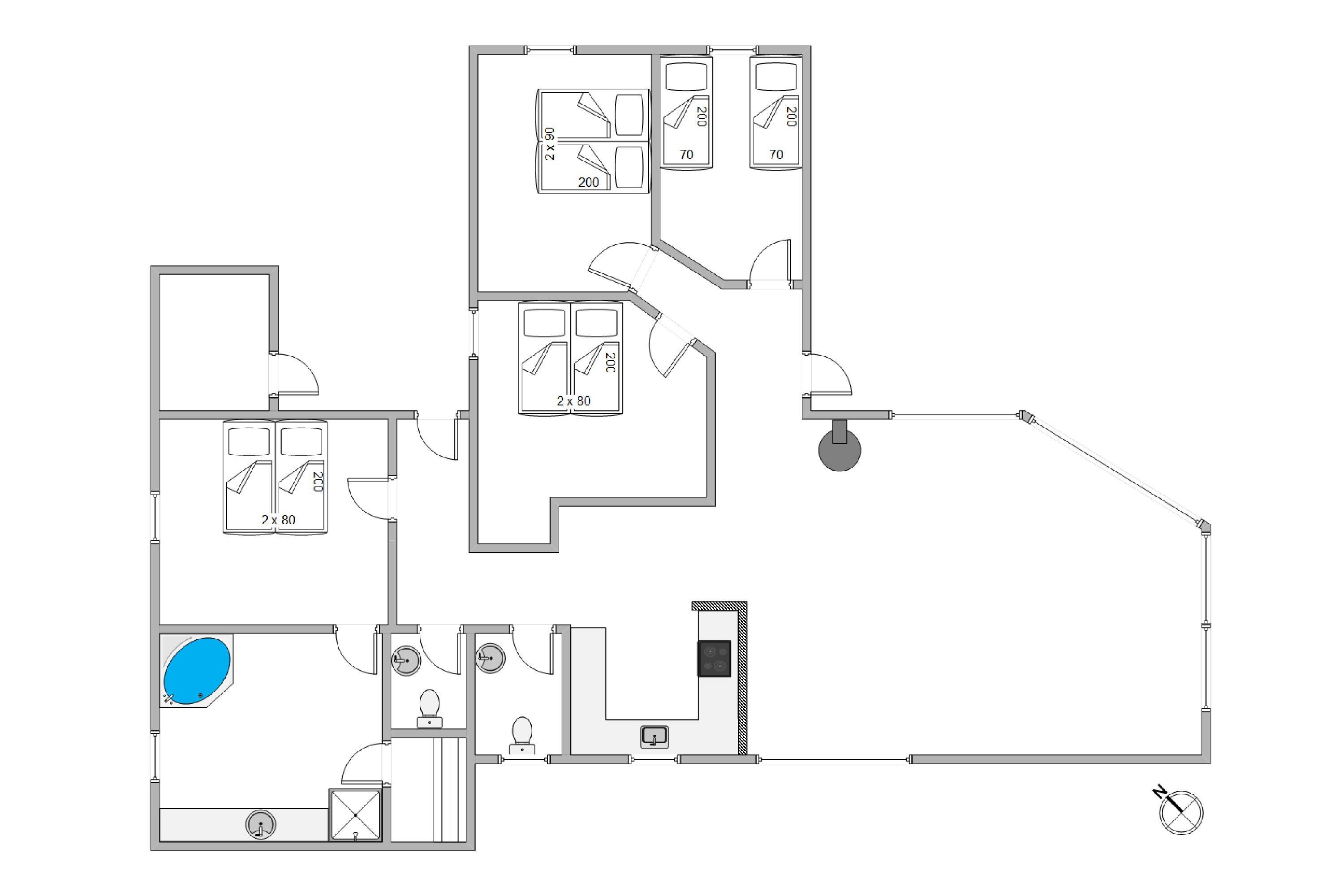 Derudover rummer sommerhuset et stort badeværelse med en dejlig spa og sauna samt et gæstetoilet.