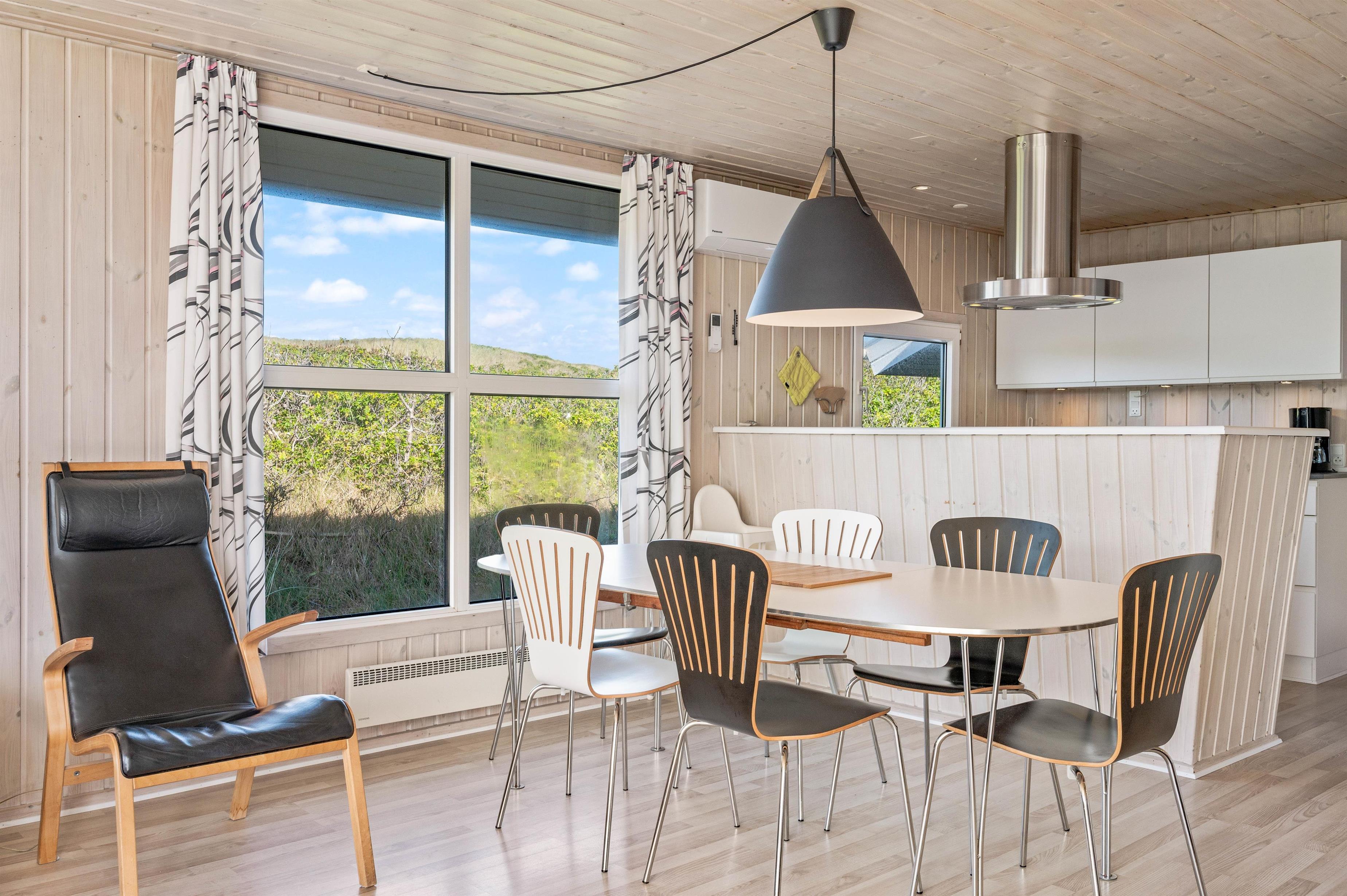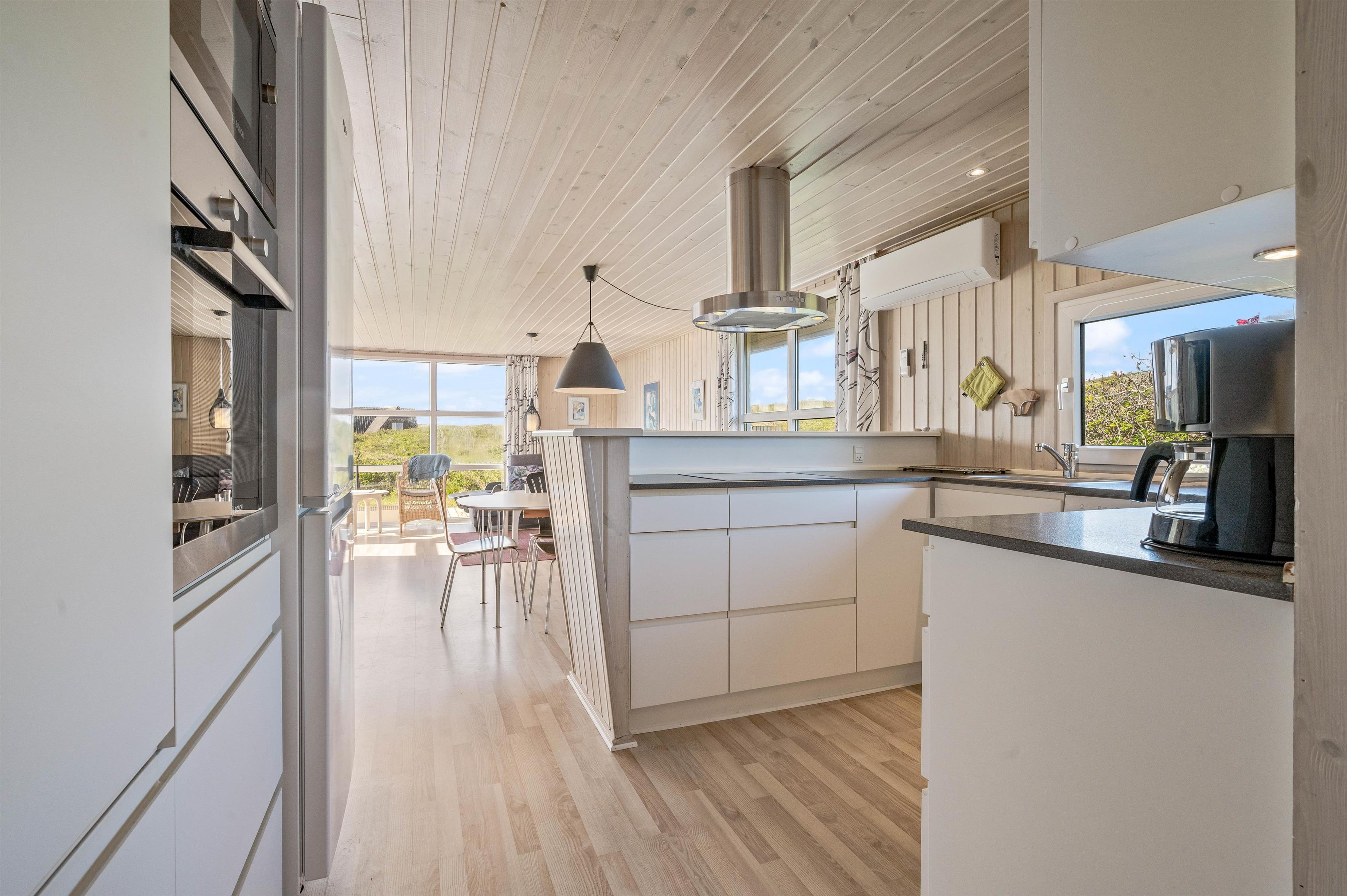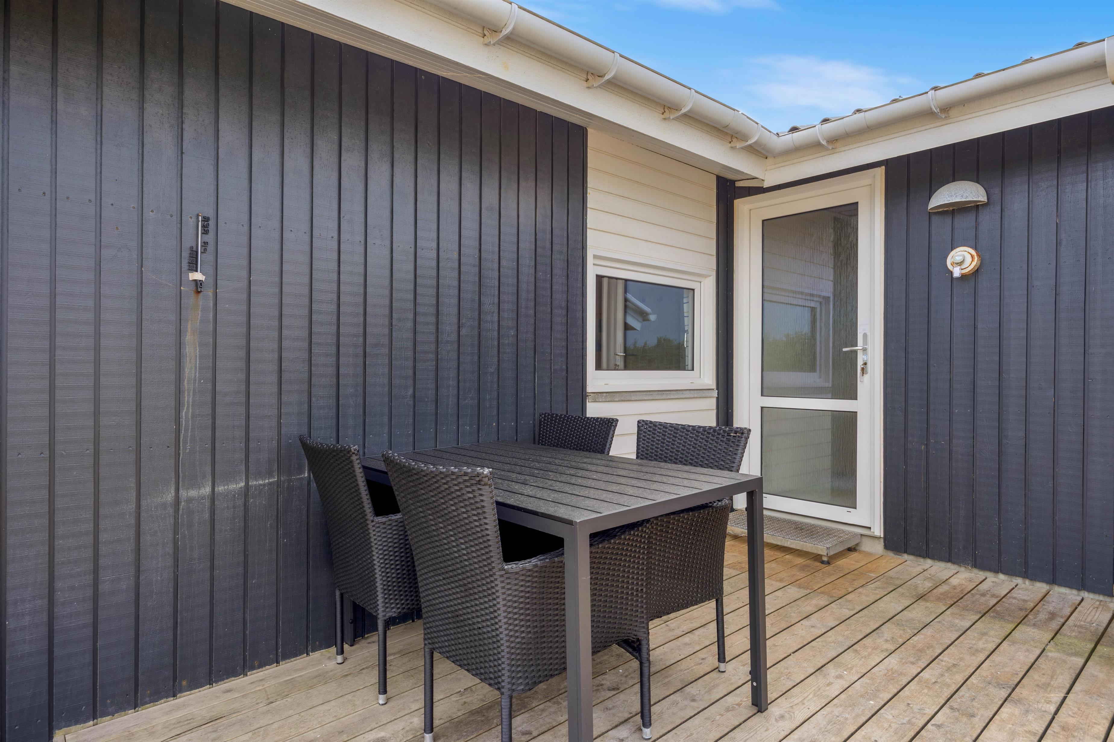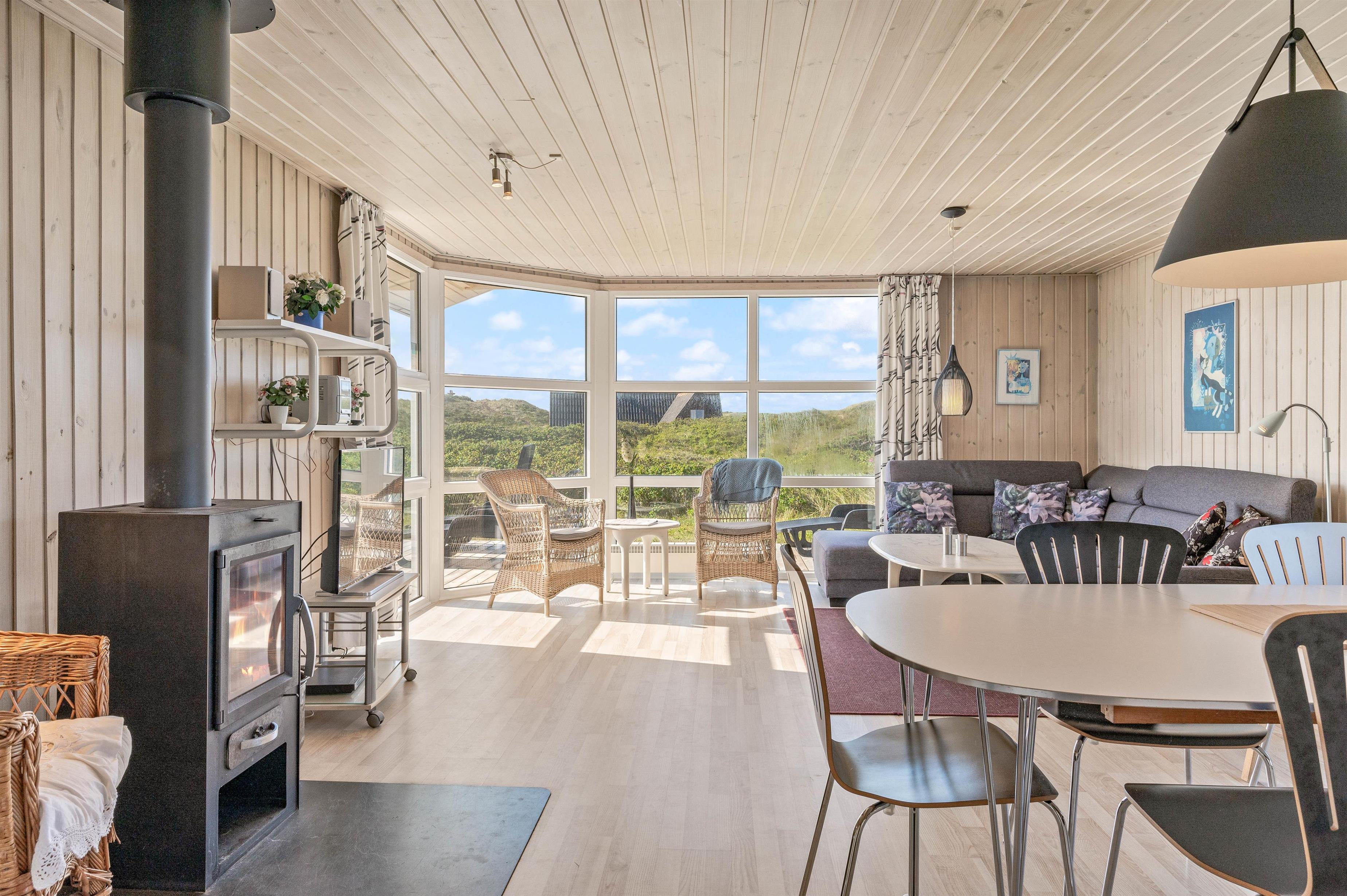 Sommerhuset er beliggende på en af Vestkystens store naturgrunde med klitter omkring sig. På både syd- og østsiden kan I sidde på terrassen og nyde solen og en velsmagende aftensmad lavet på sommerhusets egen grill.