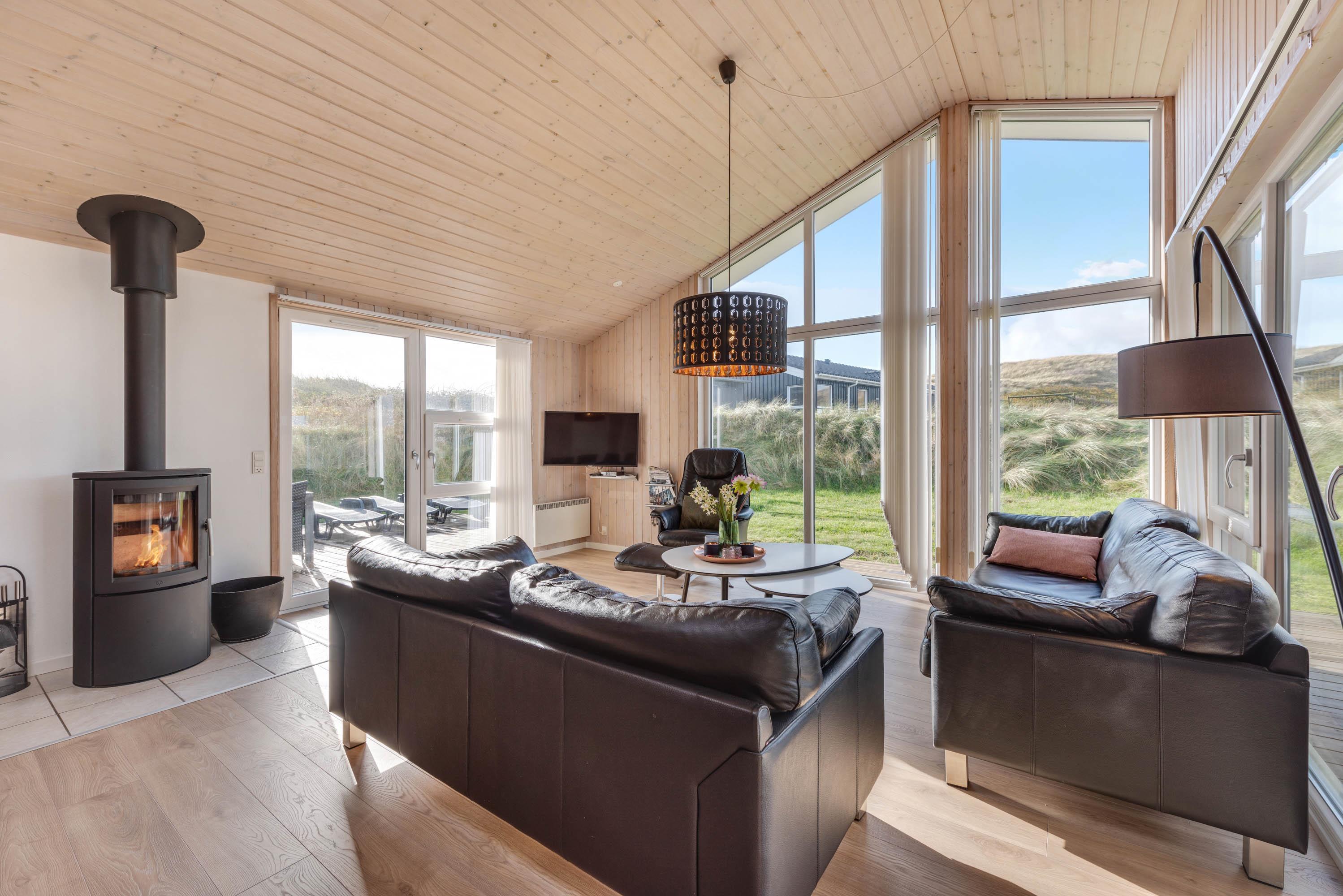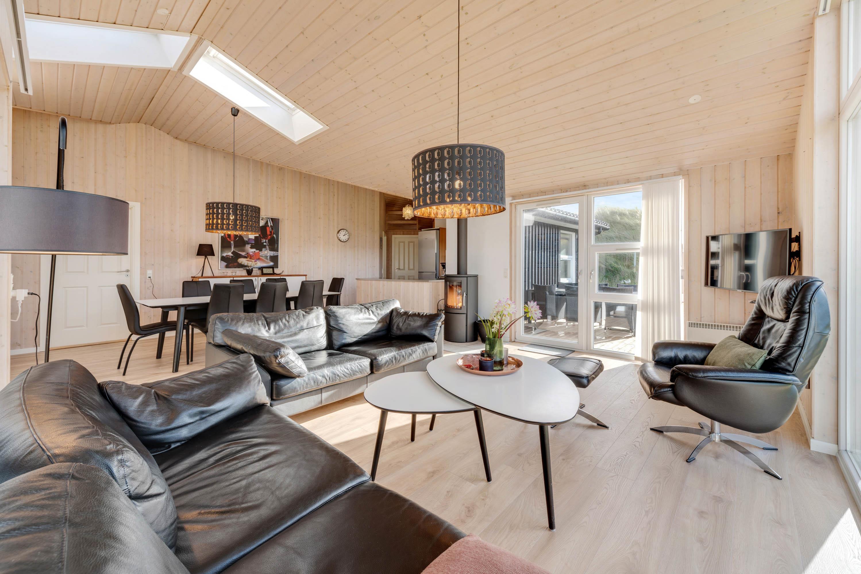 Der er dømt afslapning og familiehygge i stor stil, og især den store stue med integreret køkken og spiseafdeling kommer til at danne rammerne for en masse skønne feriestunder med alt fra kortspil til filmhygge og lækker mad rundt om spisebordet.