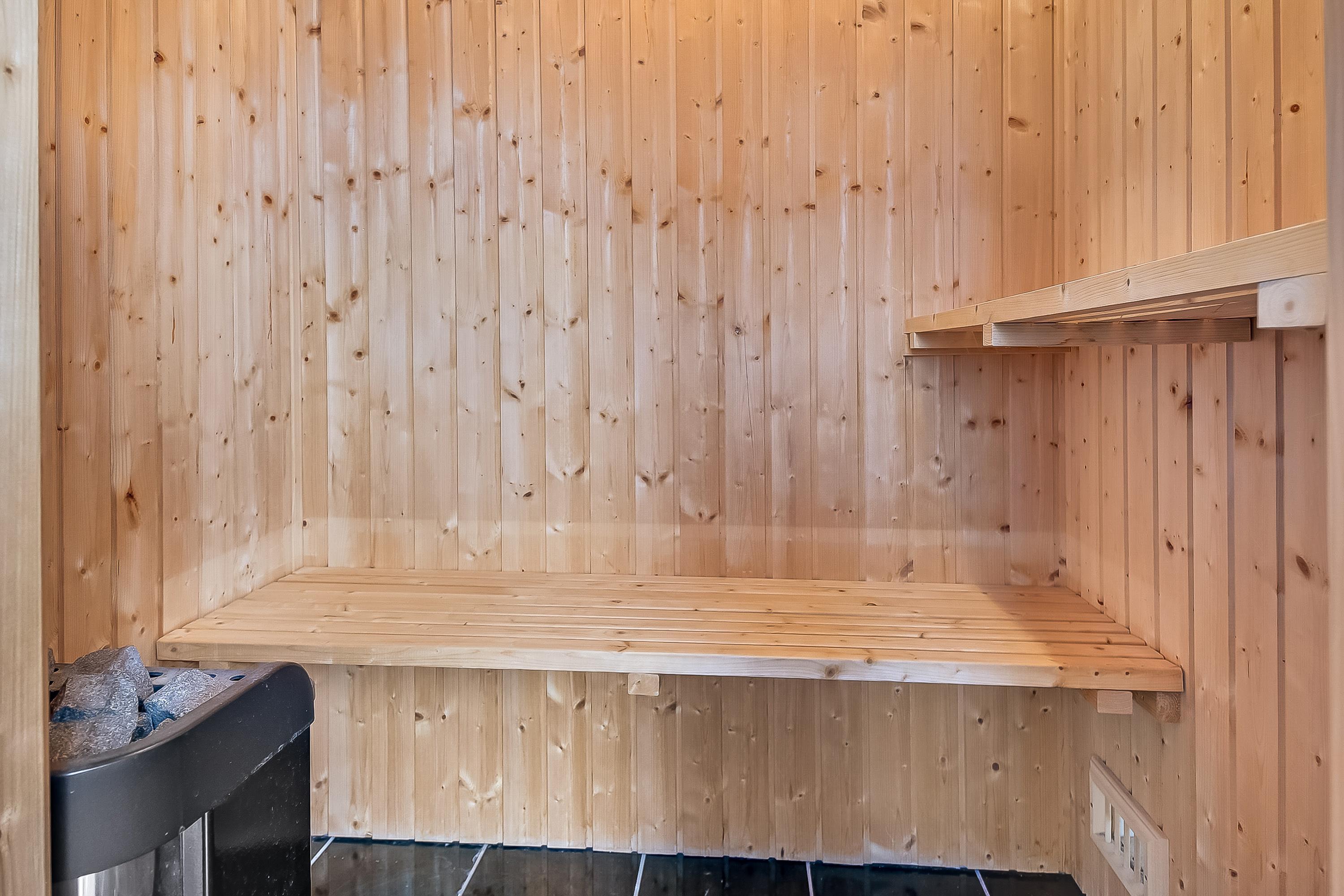 Feriehuset gemmer også en ekstra wellness-hemmelighed til jeres velfortjente ferie: I det største af husets 2 badeværelser står spabadet og saunaen nemlig klar til at forkæle jer lidt ekstra. Læn jer tilbage i boblerne eller den varme sauna og tank ny energi efter en oplevelsesrig feriedag - og rund aftenen af foran brændeovnen med et glas rødvin, inden det er tid til at kravle til køjs.