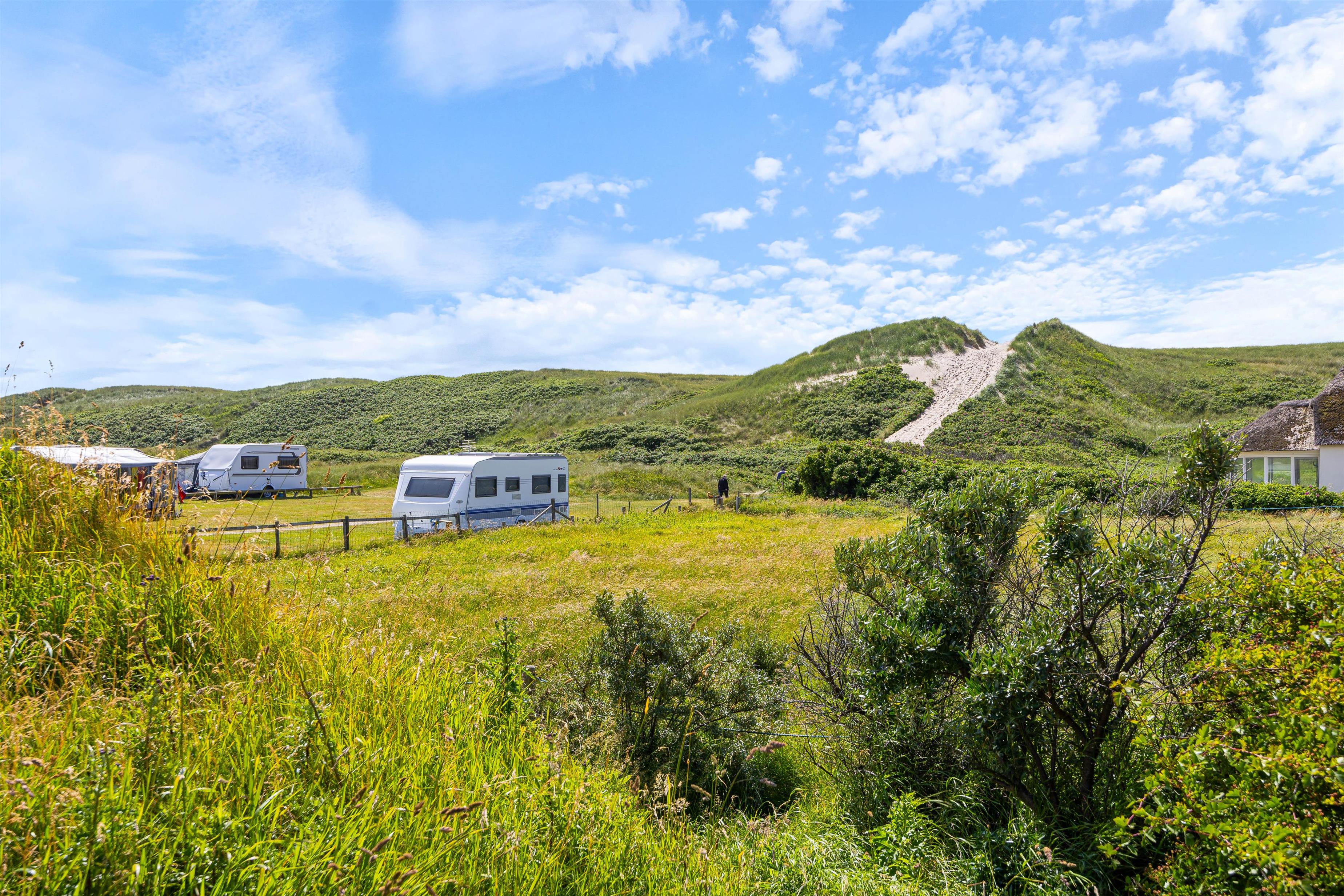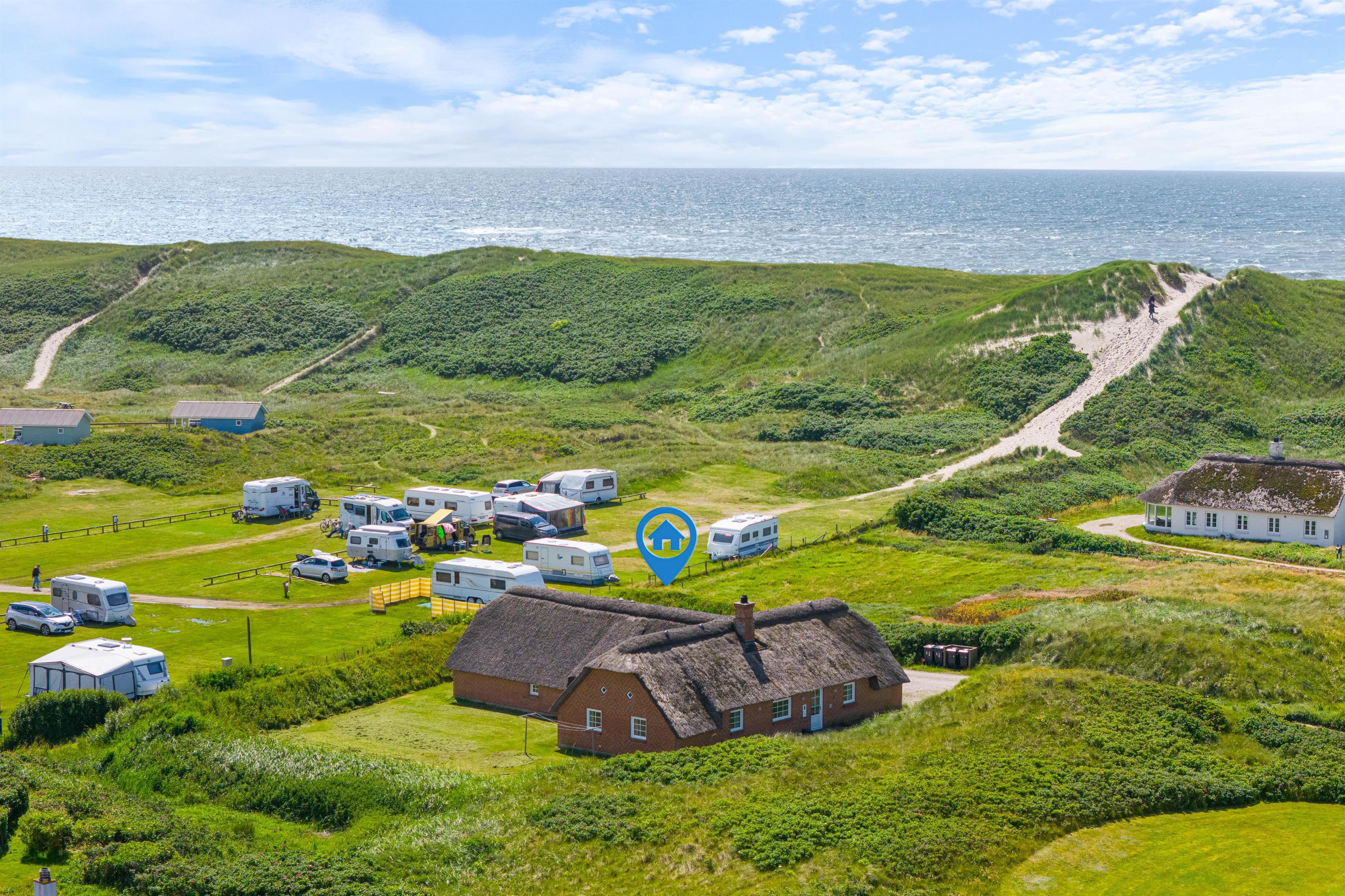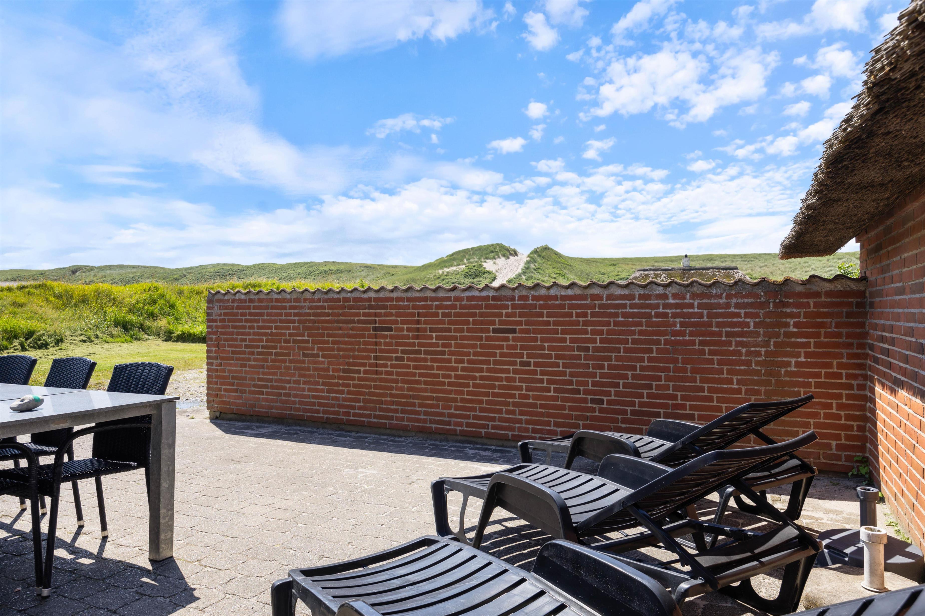 På sommerhusets terrasse kan I nyde det dejlige vejr, mens I griller på grillen og nyder måltiderne ved havemøblerne. Terrassen og den åbne naturgrund er perfekte til at nyde det danske sommervejr, og de klitbeklædte omgivelser giver en følelse af fred og ro. Der er masser af plads til, at børnene kan lege, og de voksne kan slappe af og nyde omgivelserne. De mindste gæster vil elske at tilbringe tid ved sandkassen og gyngen, der er opstillet på naturgrunden. Her er der også plads til at hundene kan løbe rundt og lege.