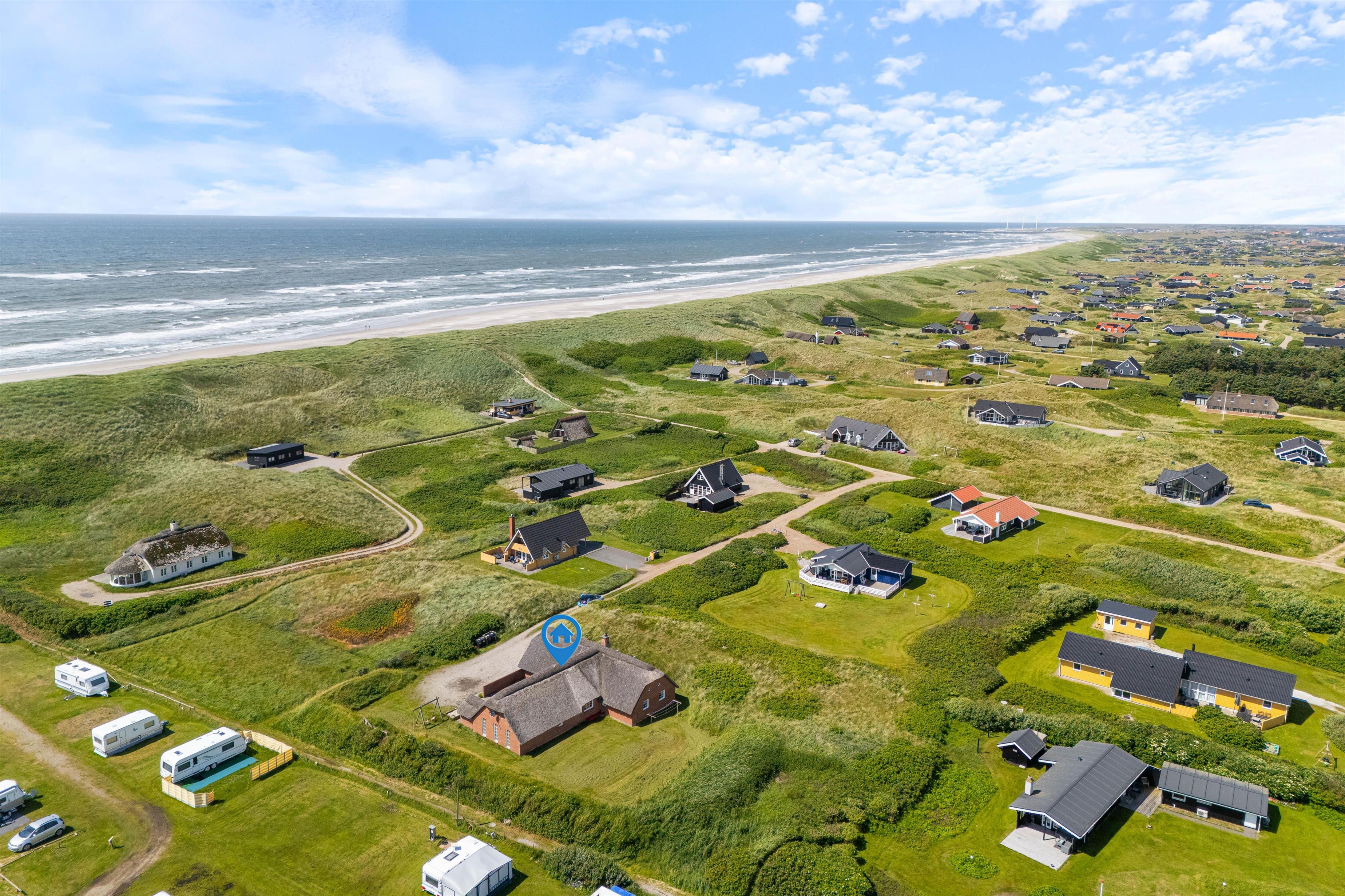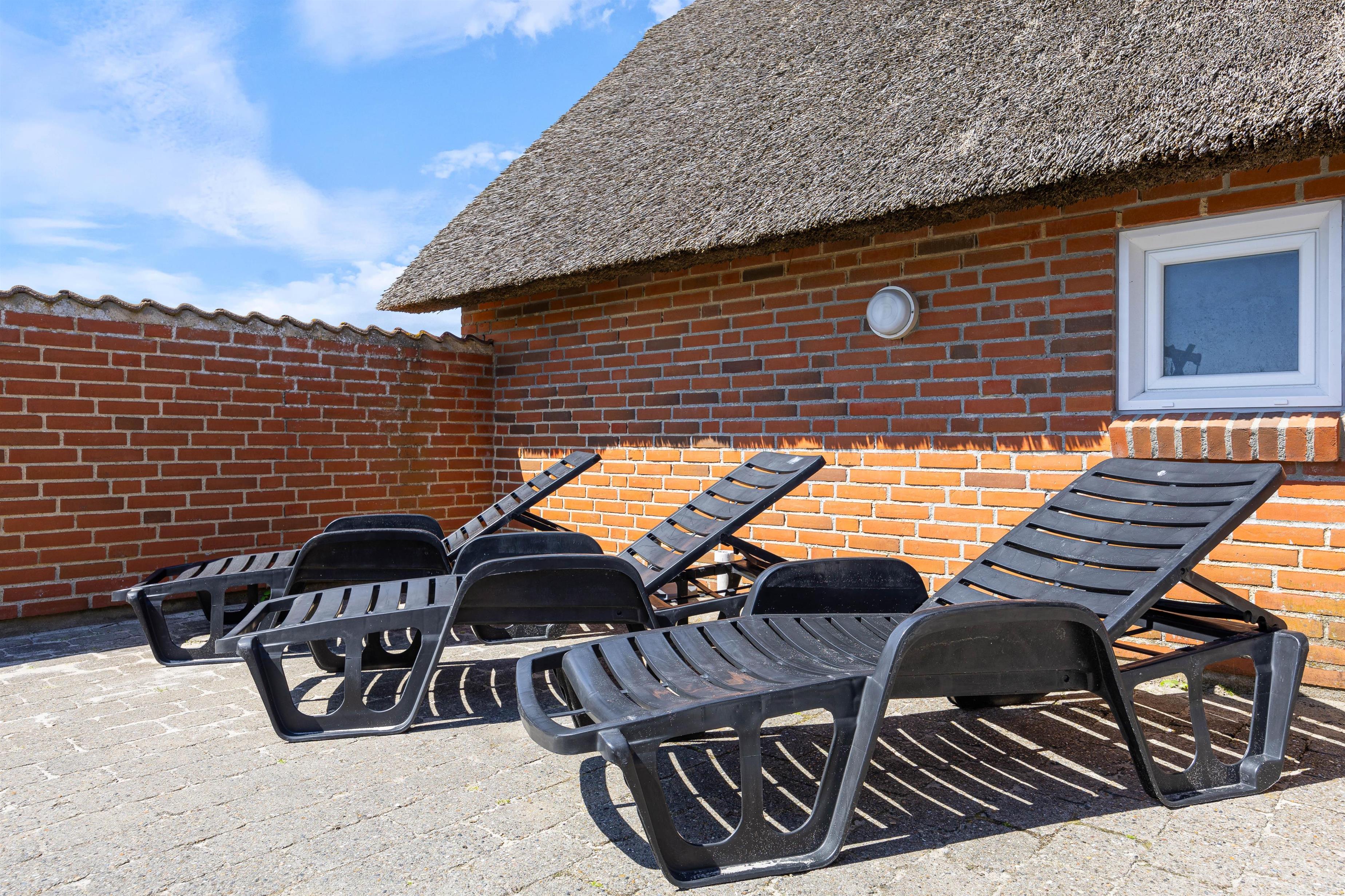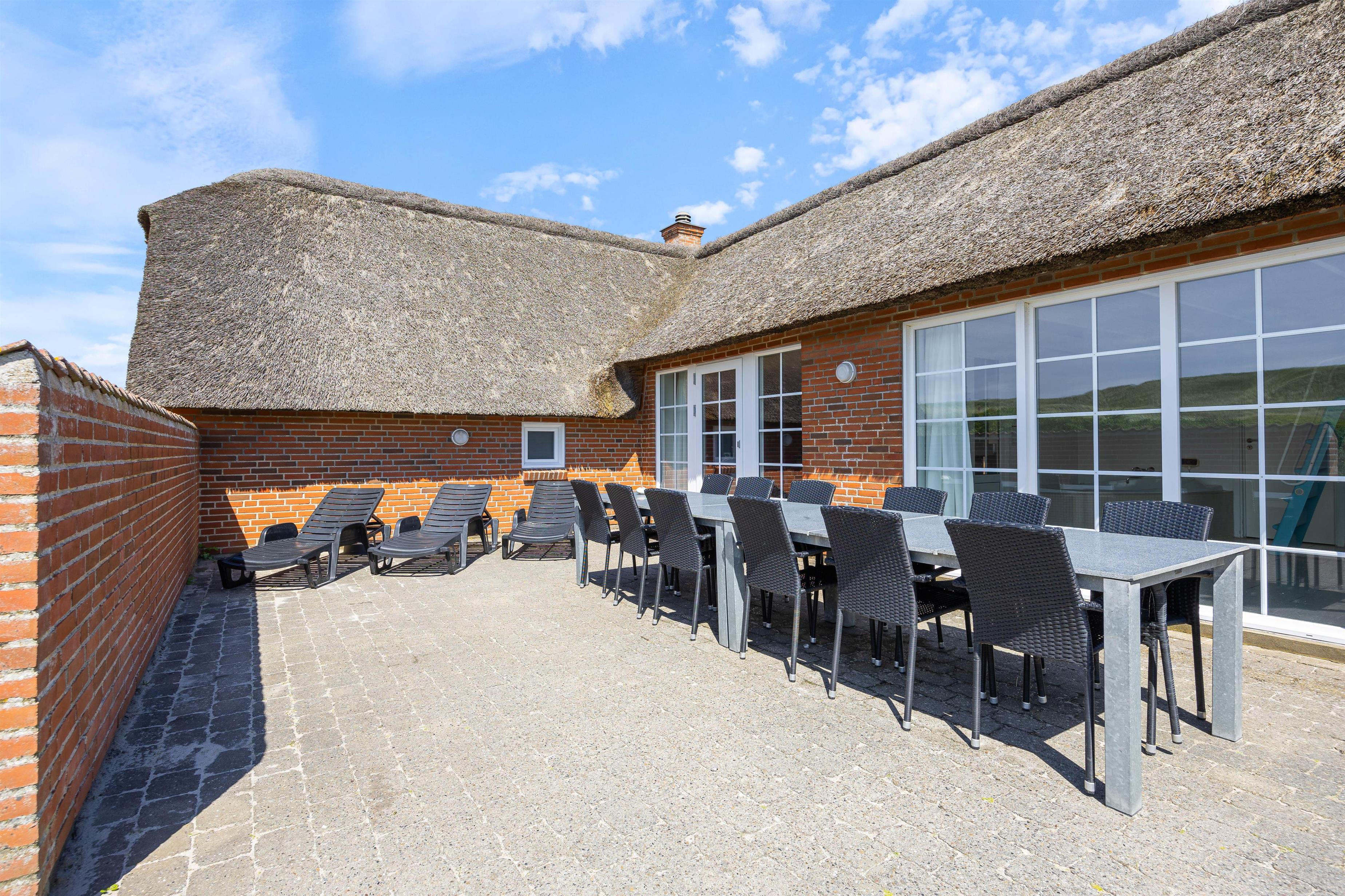 På sommerhusets terrasse kan I nyde det dejlige vejr, mens I griller på grillen og nyder måltiderne ved havemøblerne. Terrassen og den åbne naturgrund er perfekte til at nyde det danske sommervejr, og de klitbeklædte omgivelser giver en følelse af fred og ro. Der er masser af plads til, at børnene kan lege, og de voksne kan slappe af og nyde omgivelserne. De mindste gæster vil elske at tilbringe tid ved sandkassen og gyngen, der er opstillet på naturgrunden. Her er der også plads til at hundene kan løbe rundt og lege.