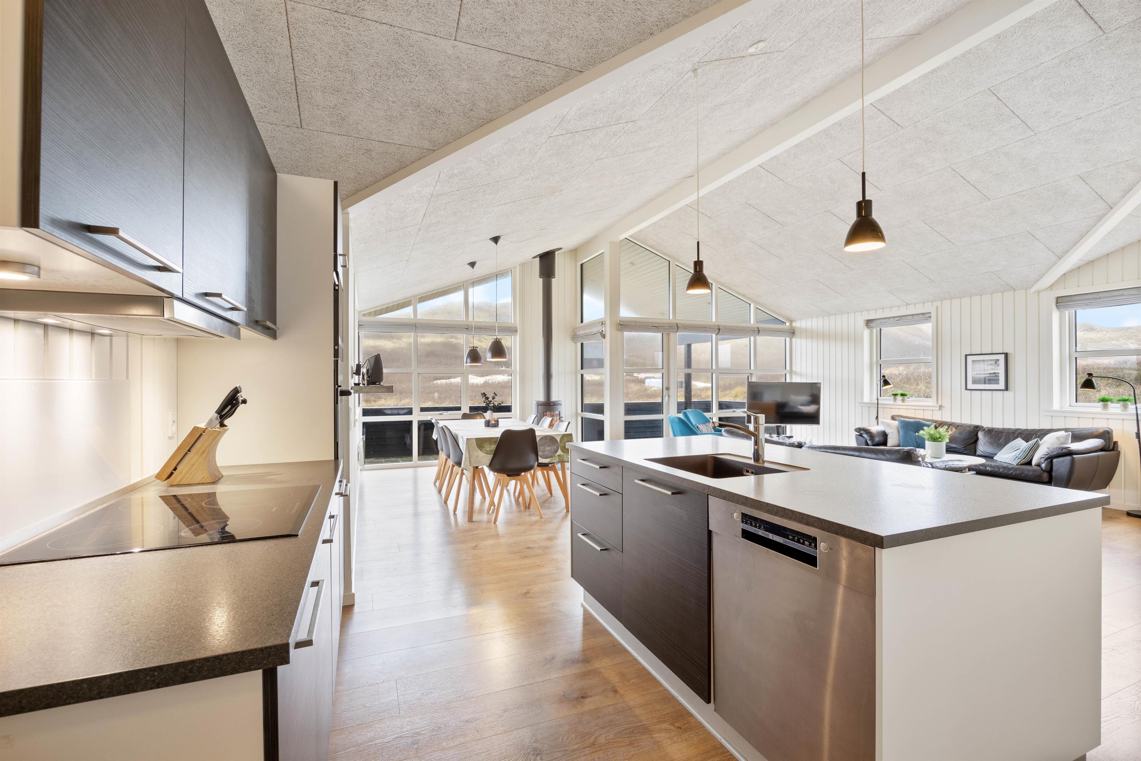 Især stuen med spiseafdelingen og det åbne køkken gør det muligt for familien at være samlet under ferien.